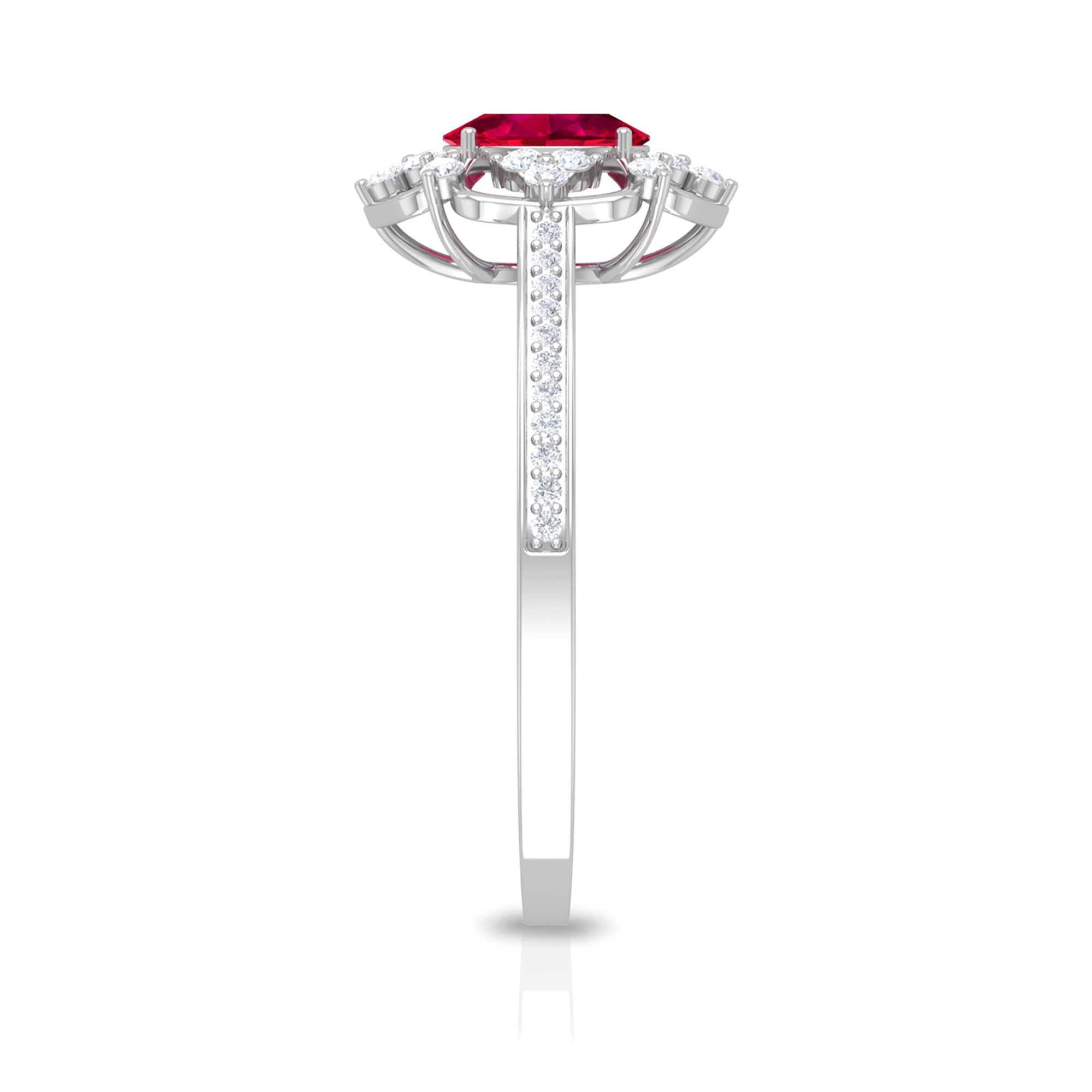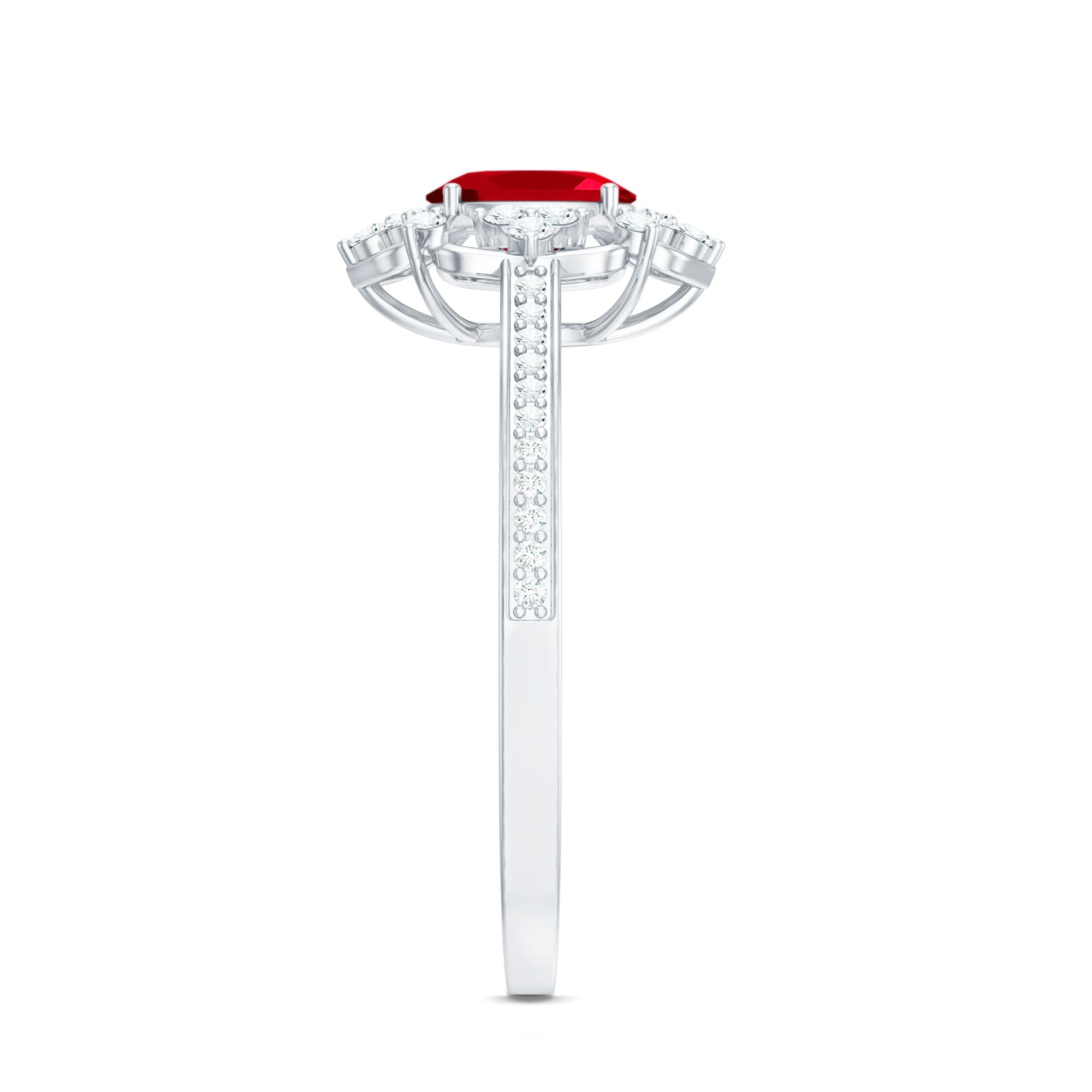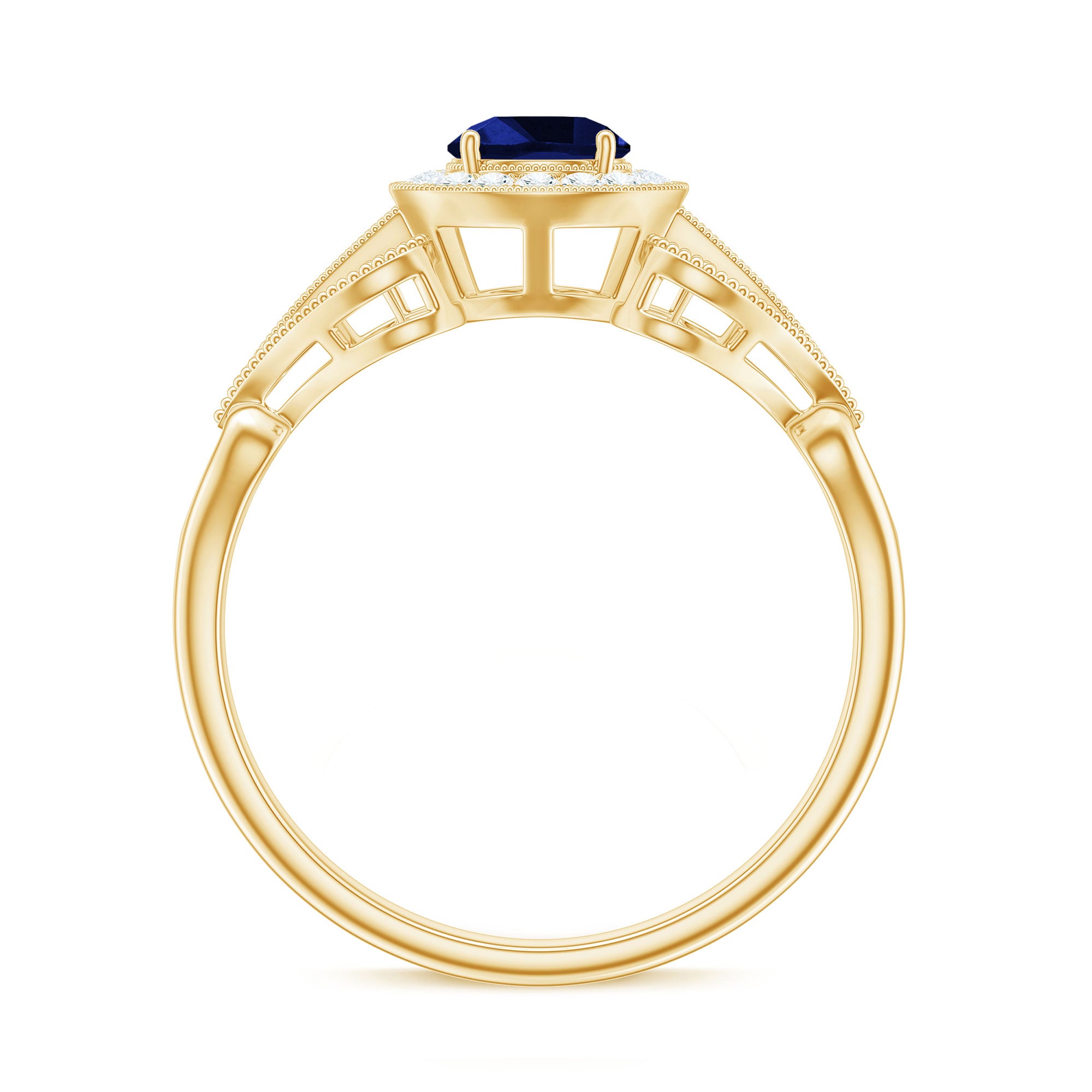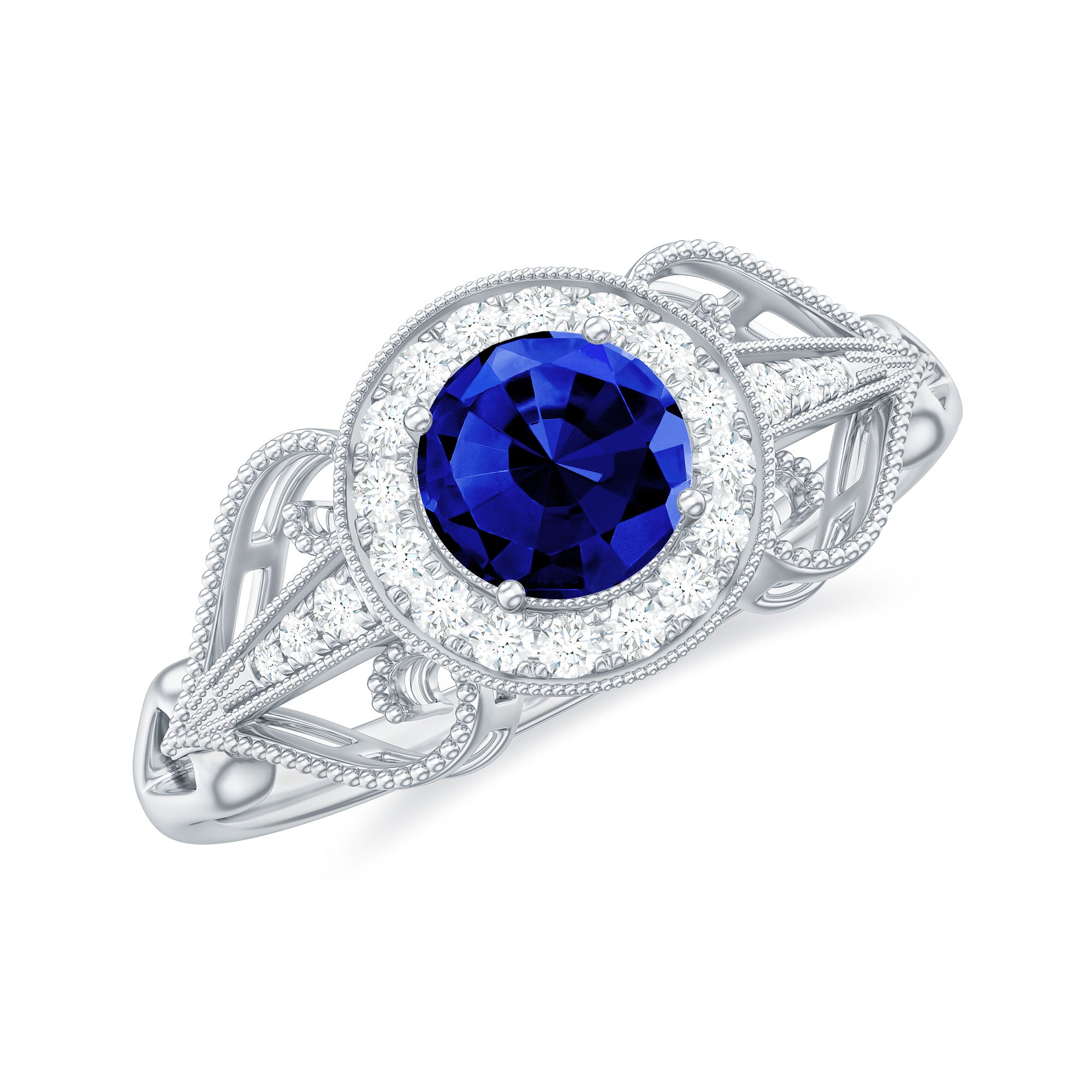 Halo Rings: Center lab made gemstone accented with shining or colored stones for a sparkling look.