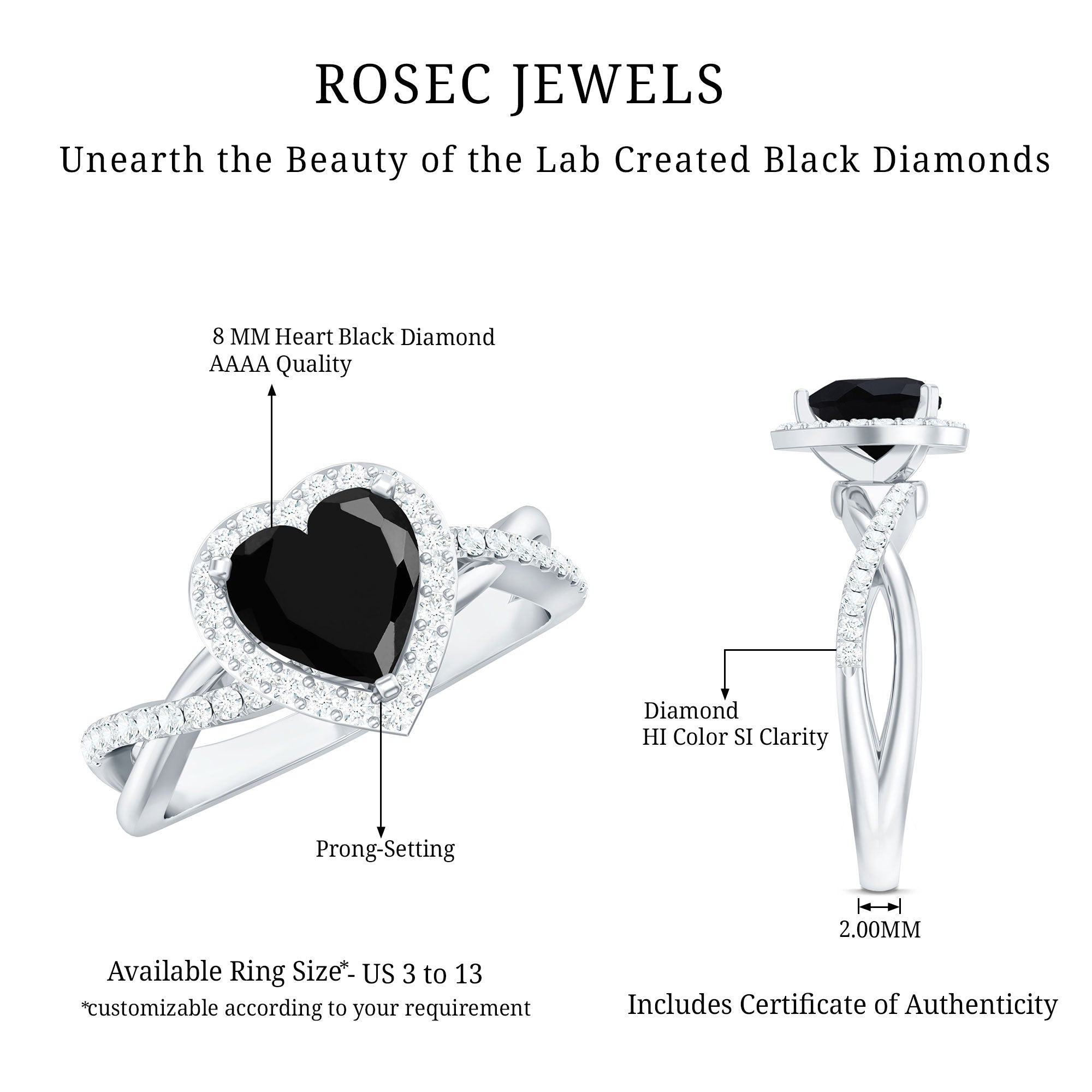 Heart Rings: A heart-shaped lab created gemstone or a heart frame with sparkling stones, made to express true love.