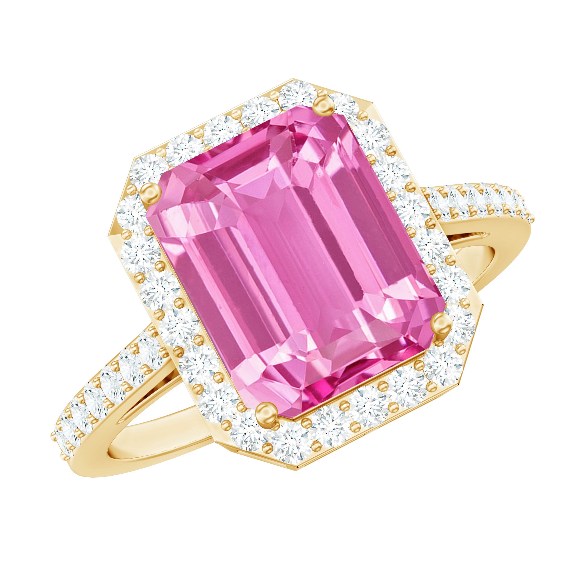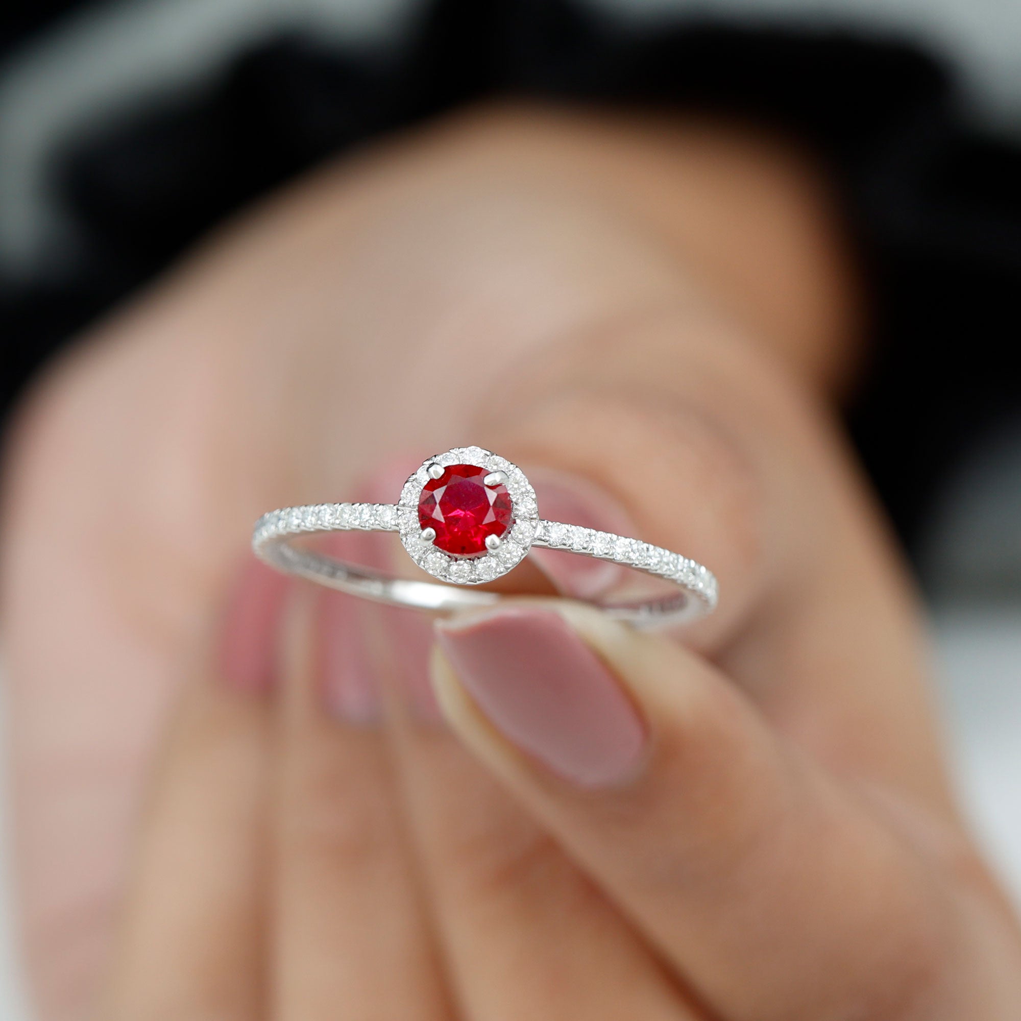 Halo Rings: Center lab made gemstone accented with shining or colored stones for a sparkling look.