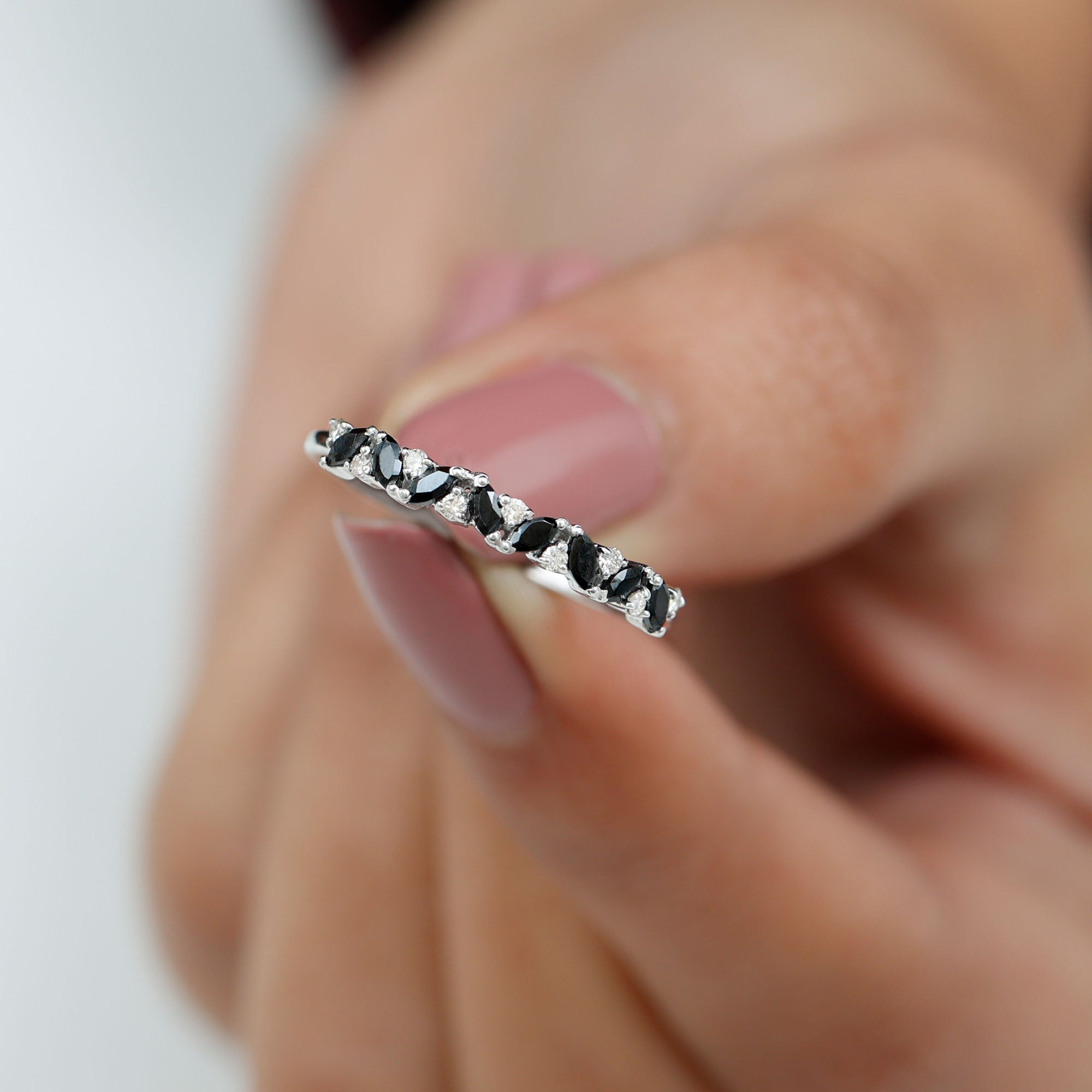 Half Eternity Rings: Entire top of the band adorned with laboratory created gemstones for a graceful sparkle.