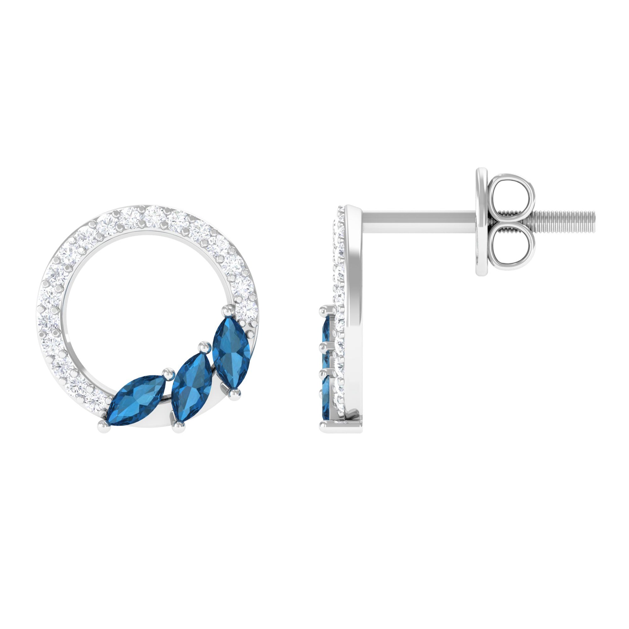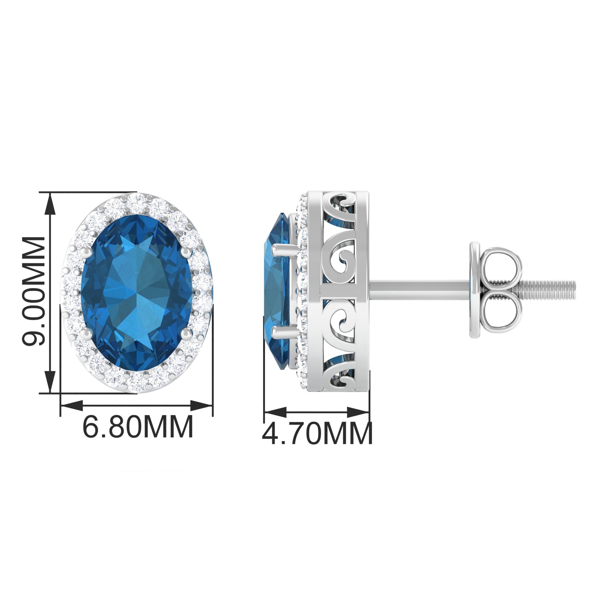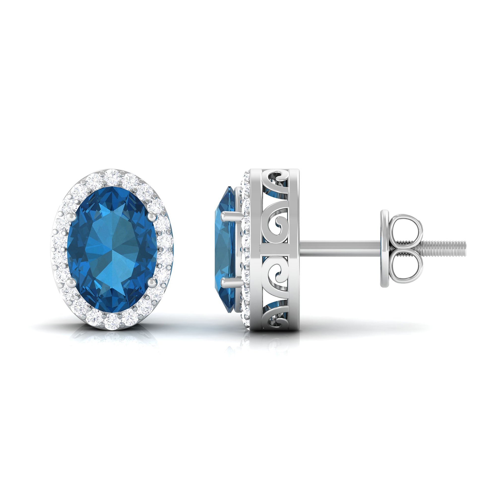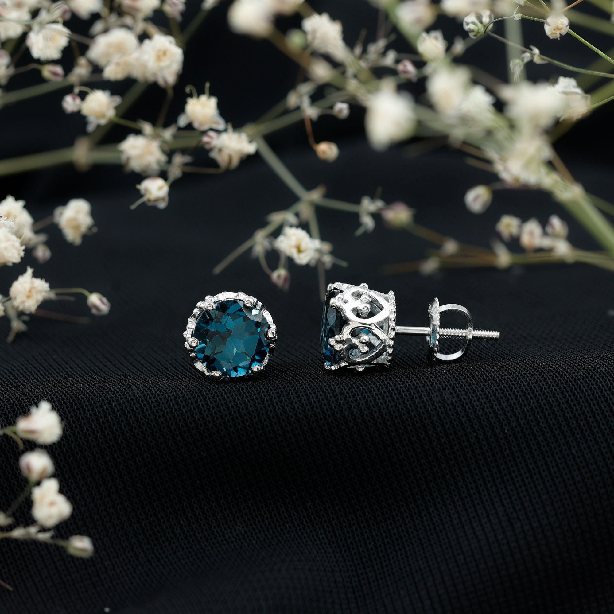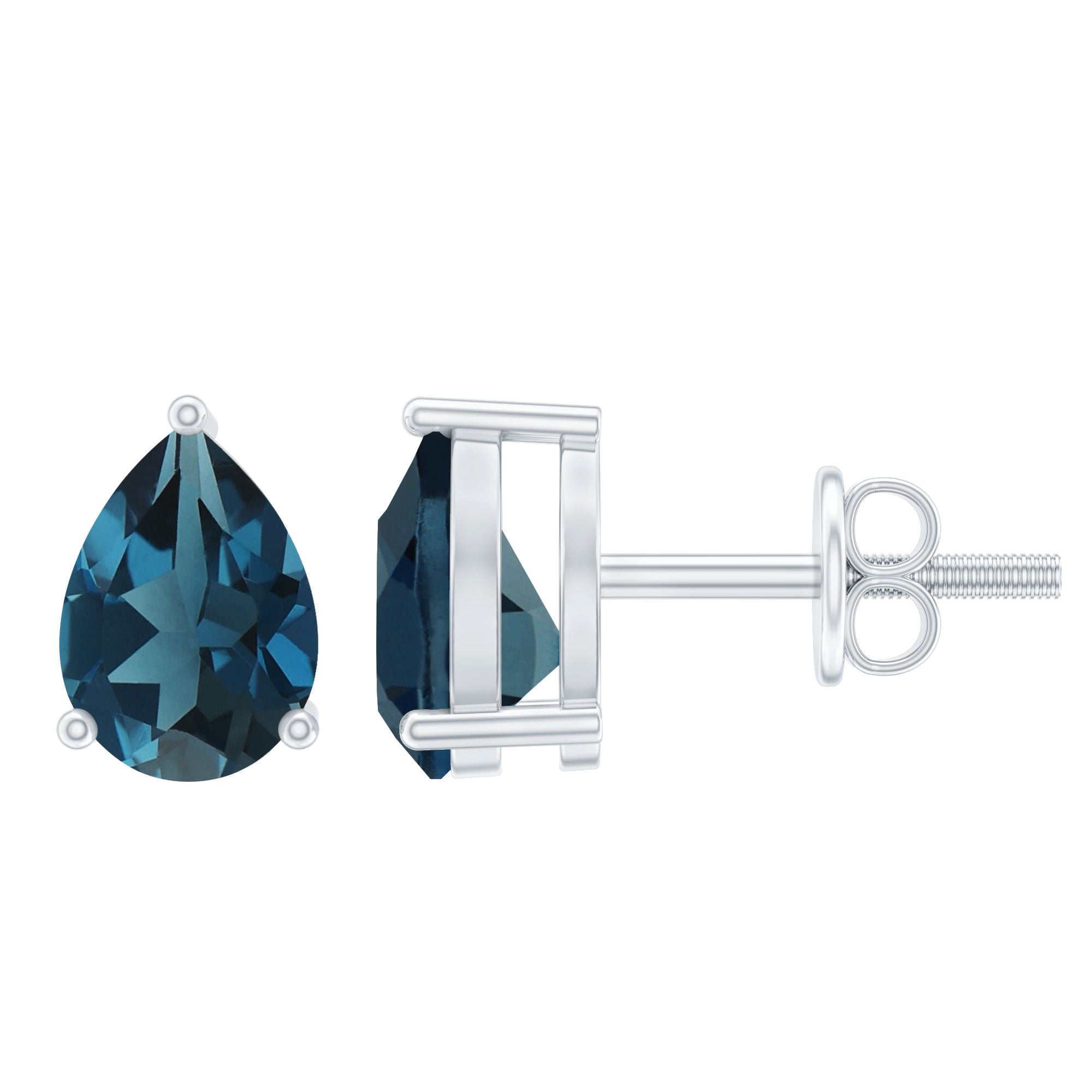 White Gold:- A popular pick for gemstone jewelry. White Gold metal complement any design and cool color tones of London blue topaz earrings, creating a mesmerizing charm to your personality.