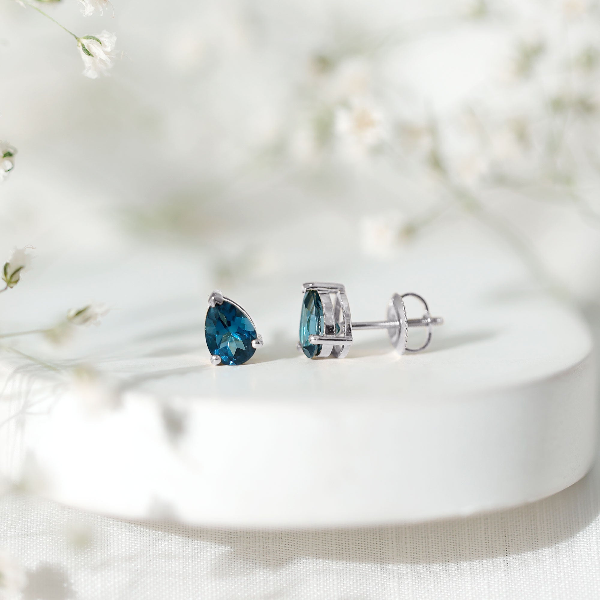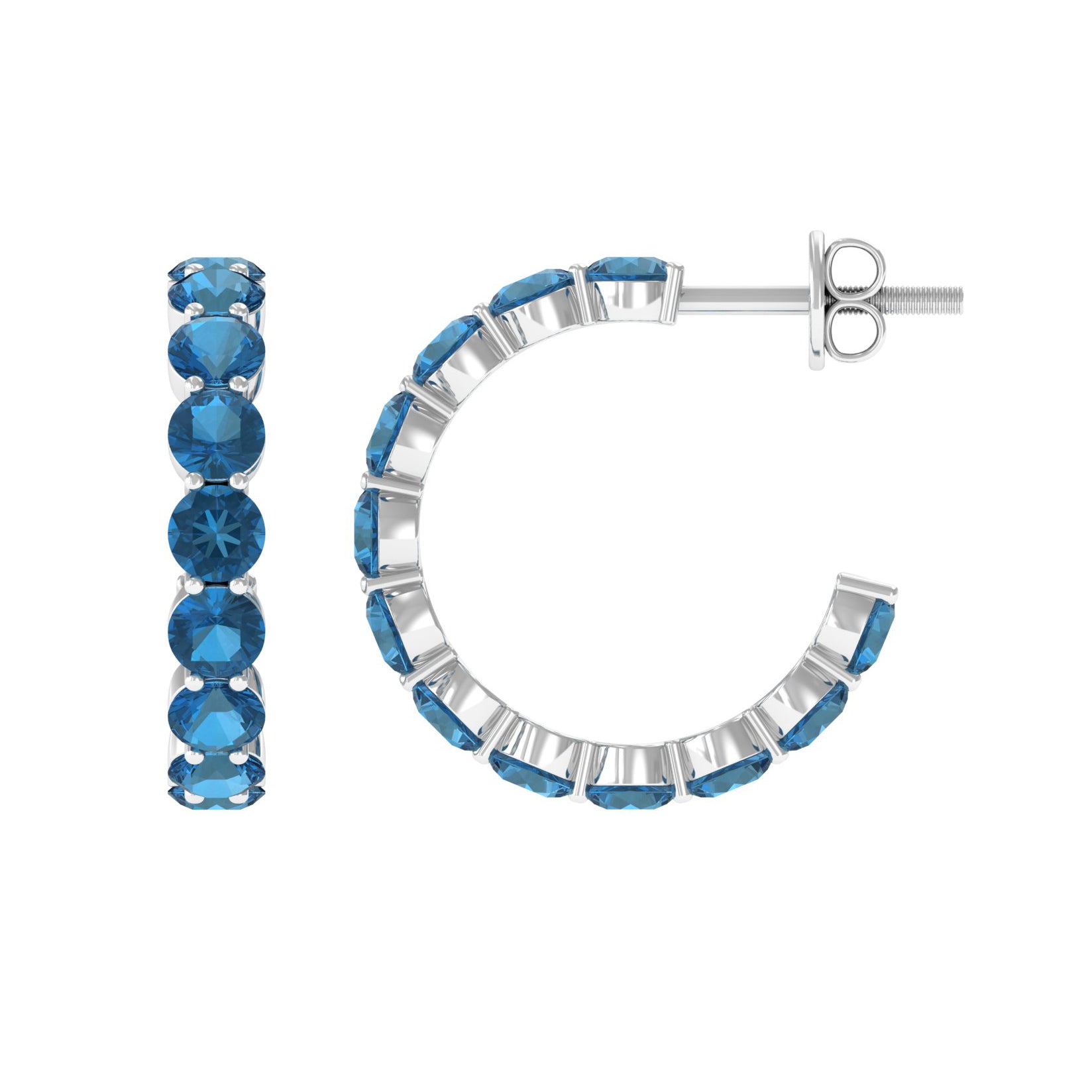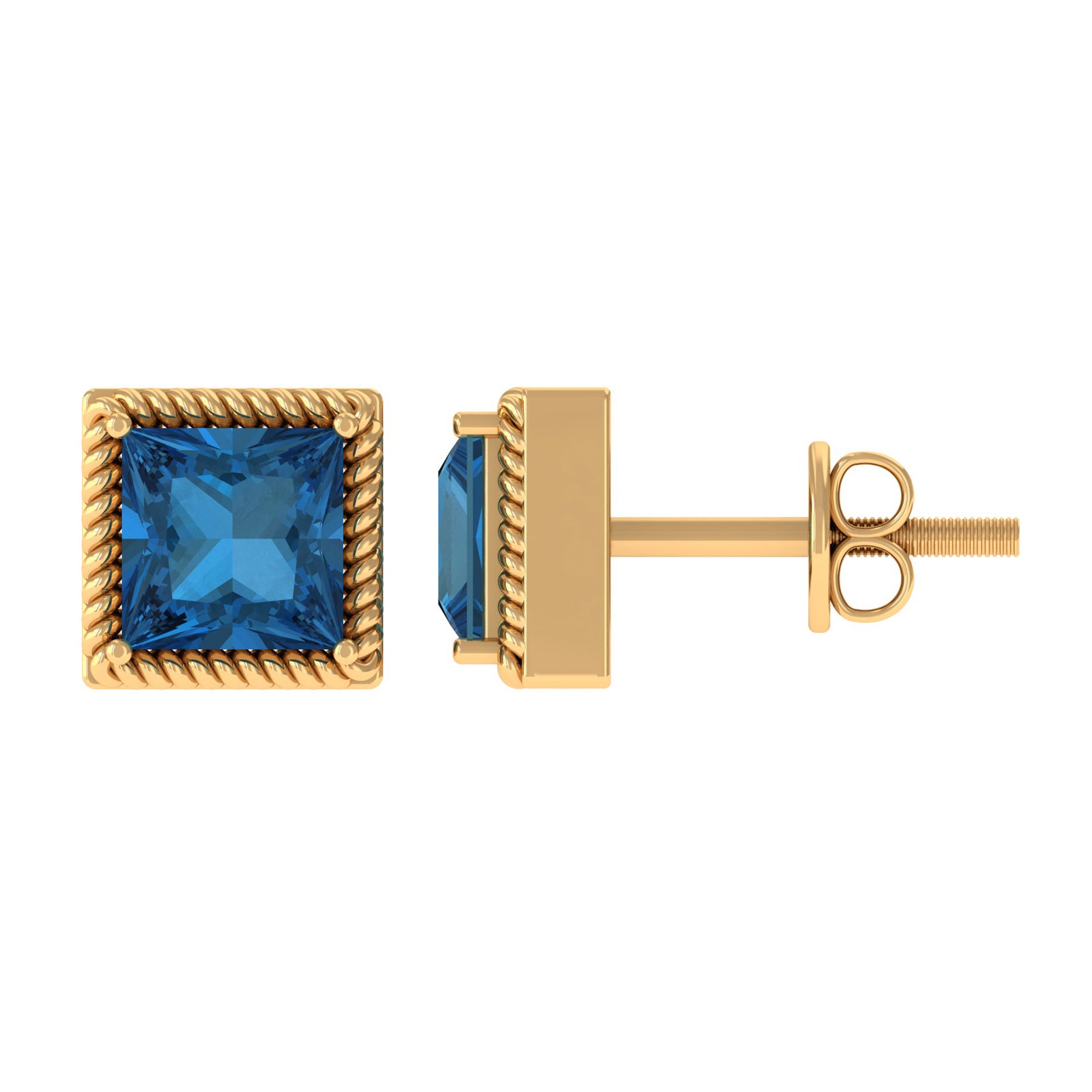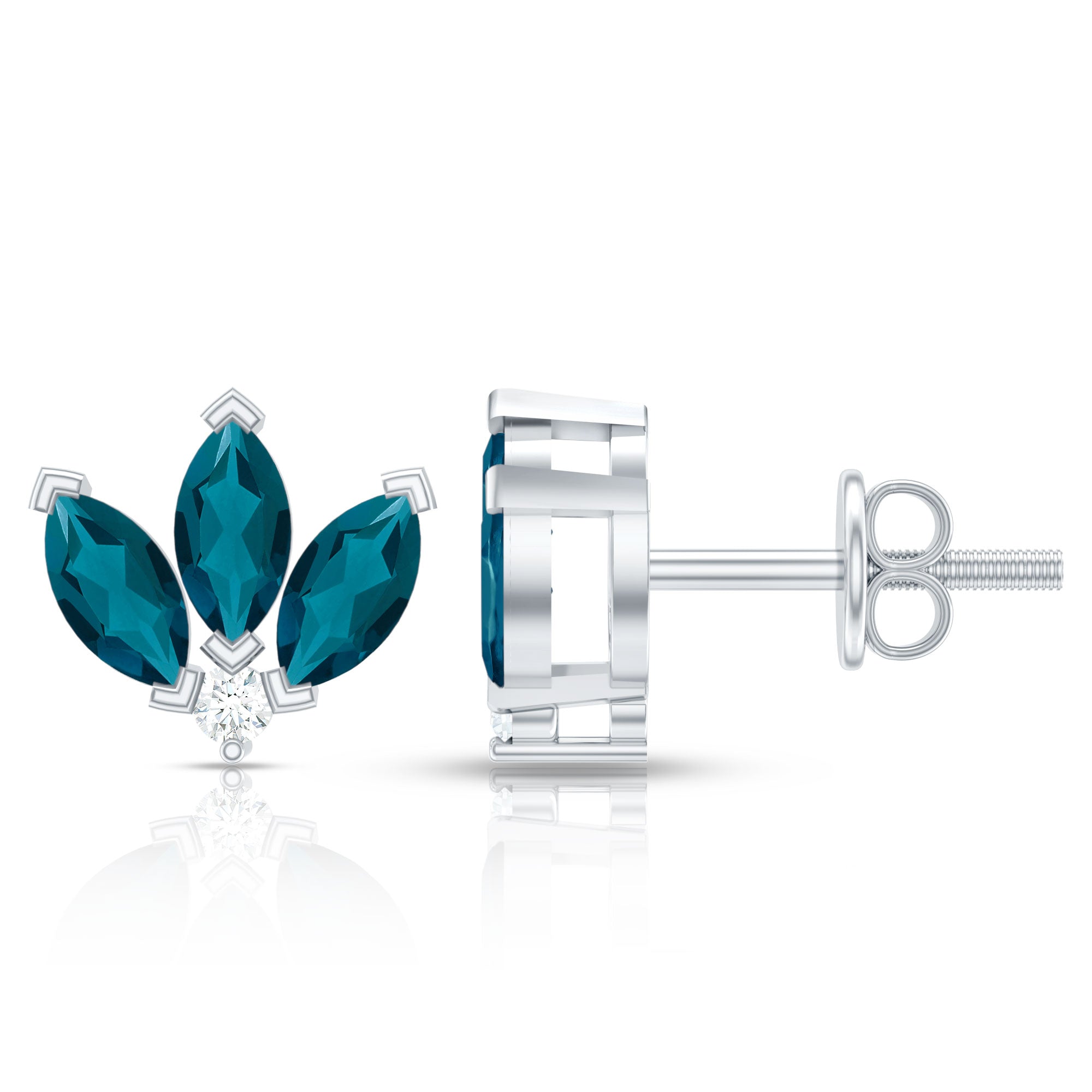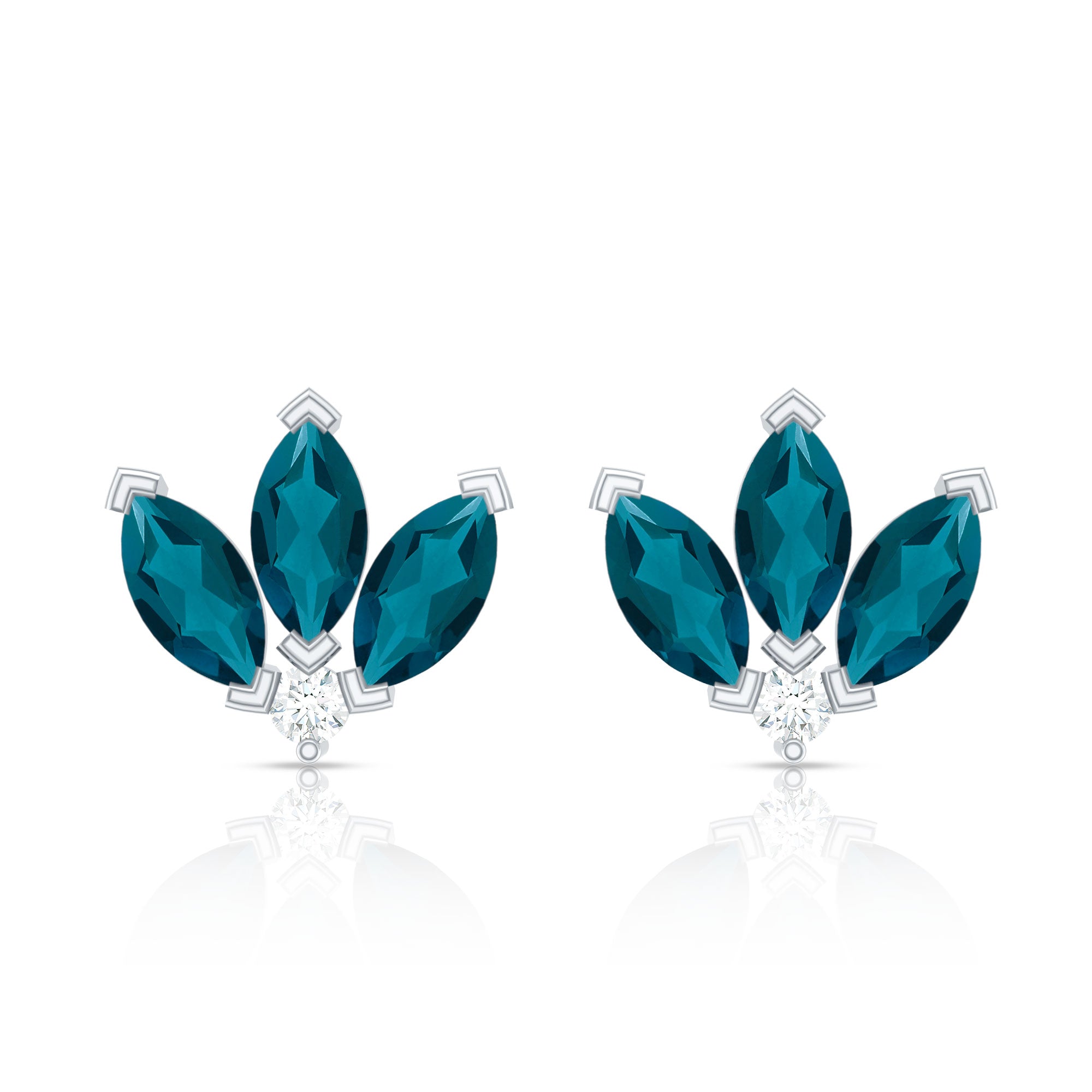 White Gold:- A popular pick for gemstone jewelry. White Gold metal complement any design and cool color tones of London blue topaz earrings, creating a mesmerizing charm to your personality.