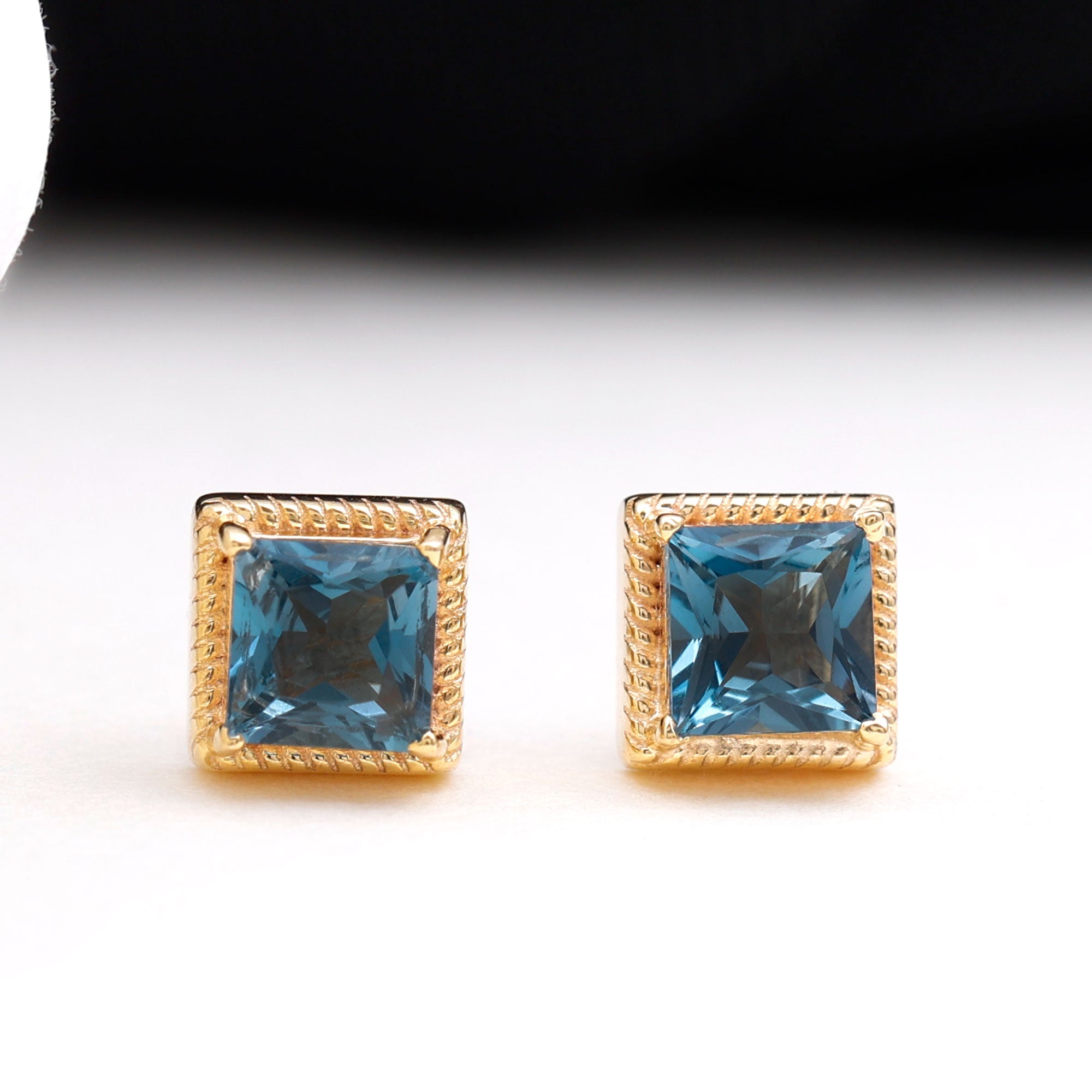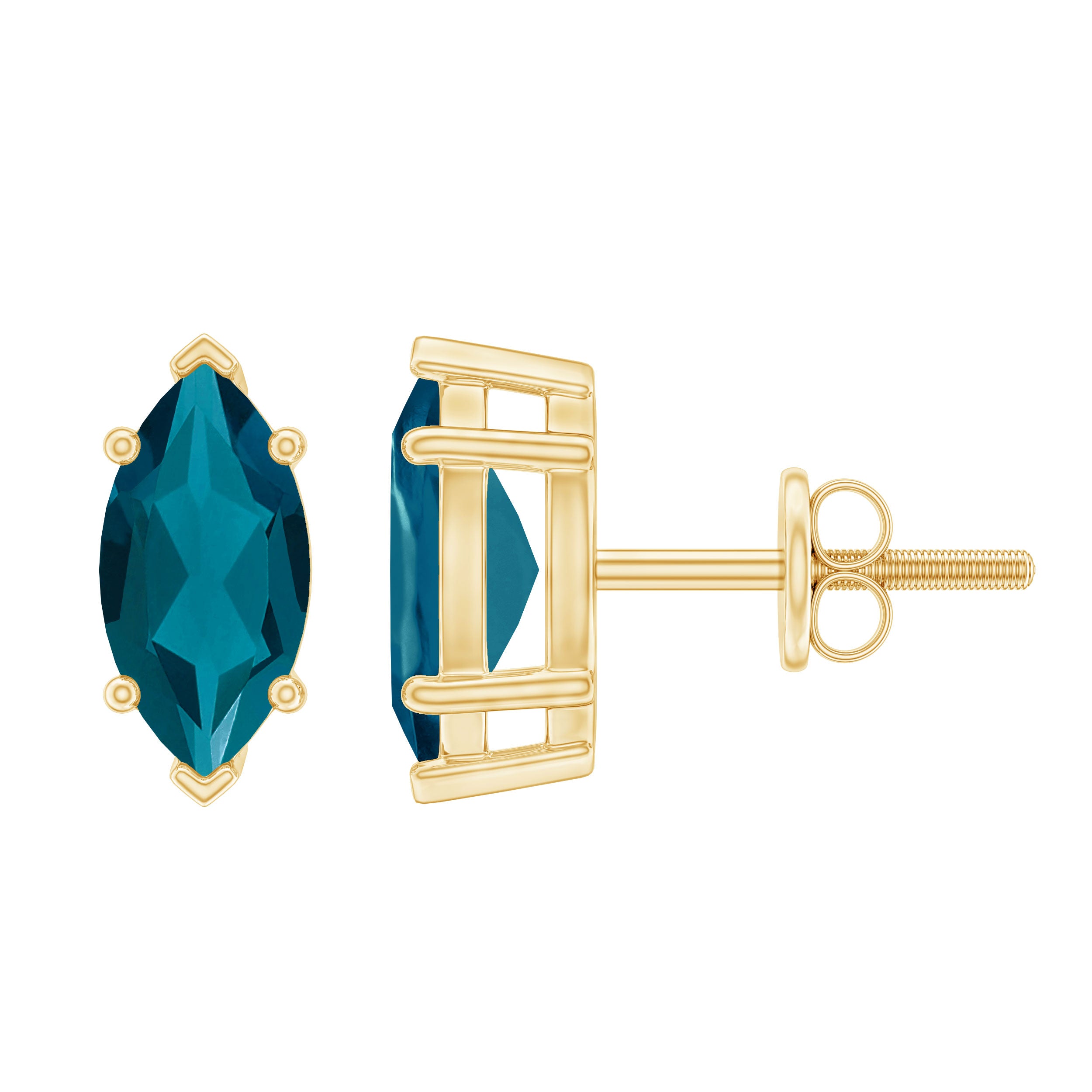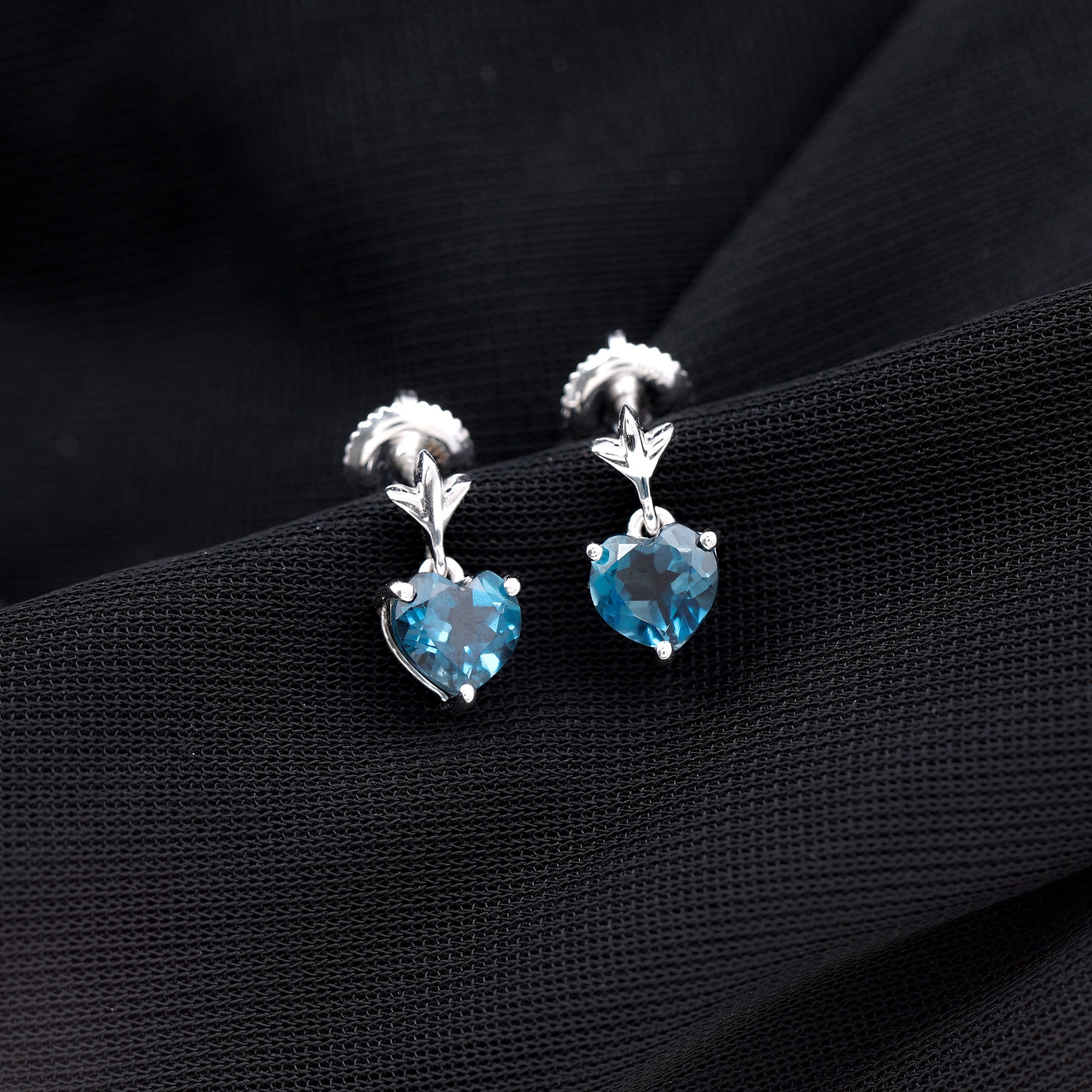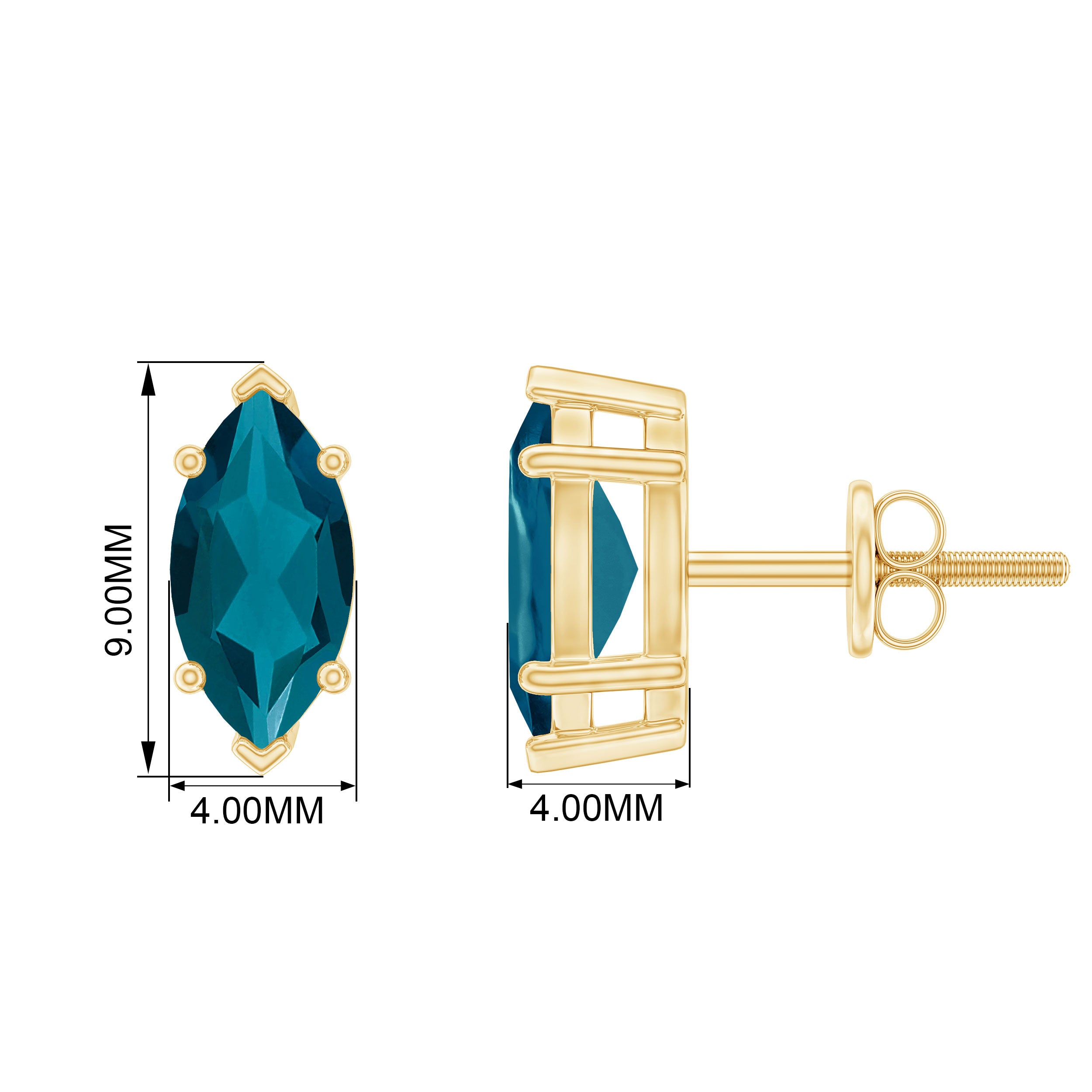 White Gold:- A popular pick for gemstone jewelry. White Gold metal complement any design and cool color tones of London blue topaz earrings, creating a mesmerizing charm to your personality.