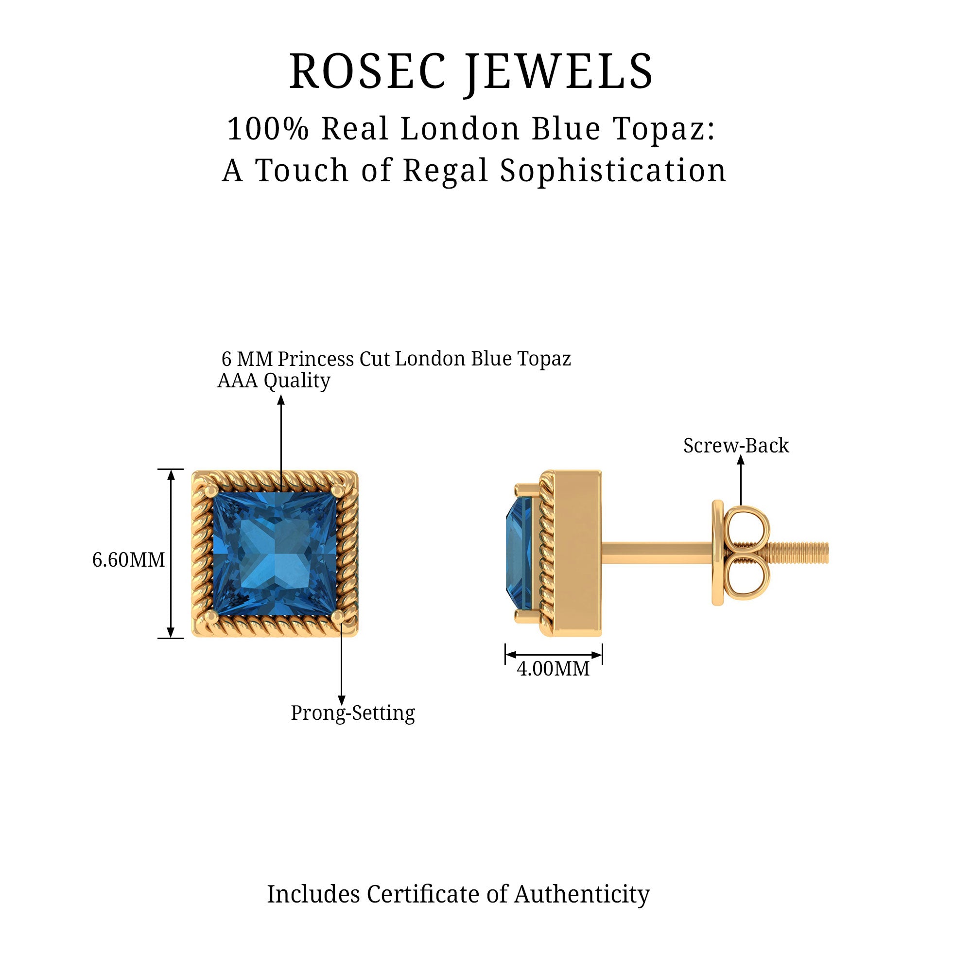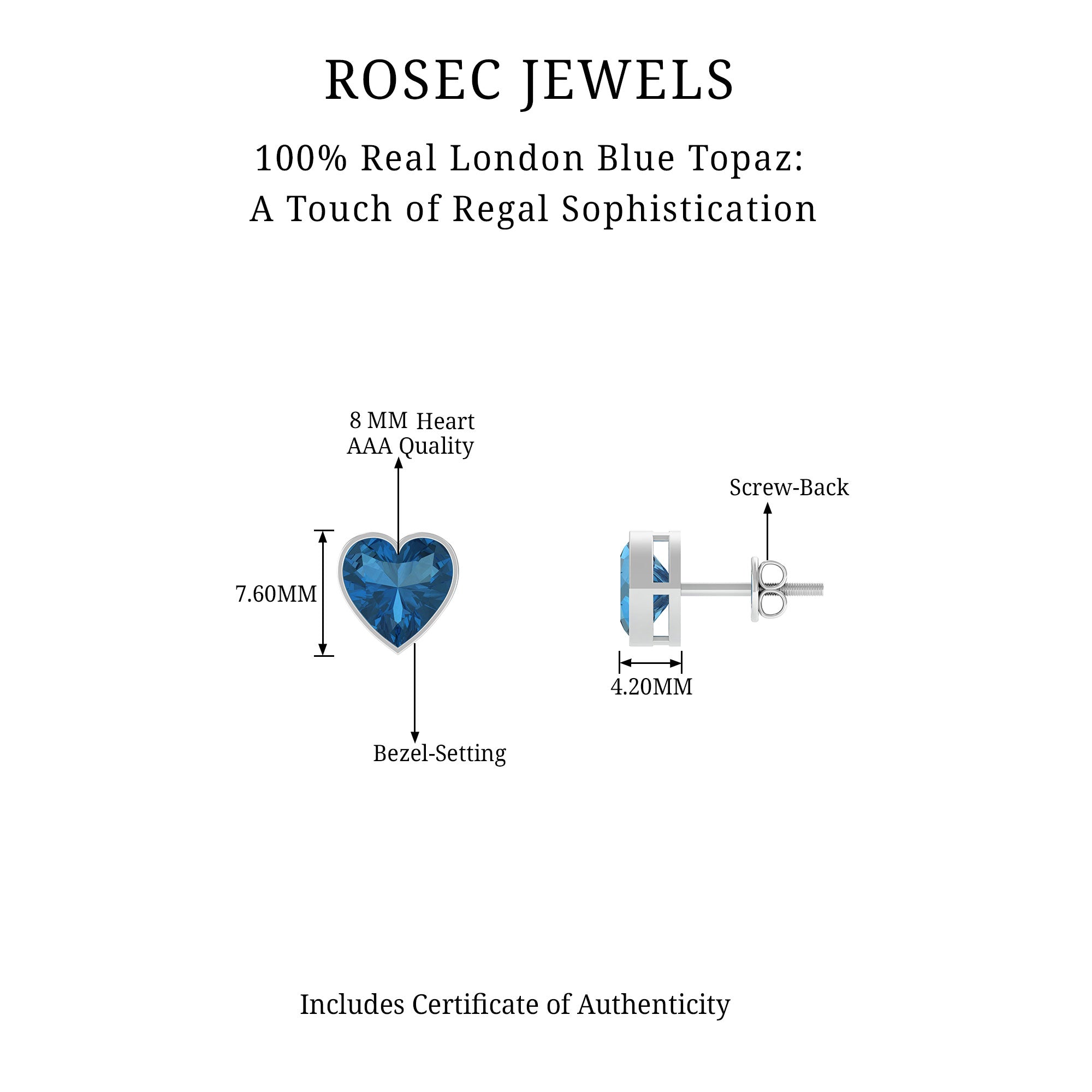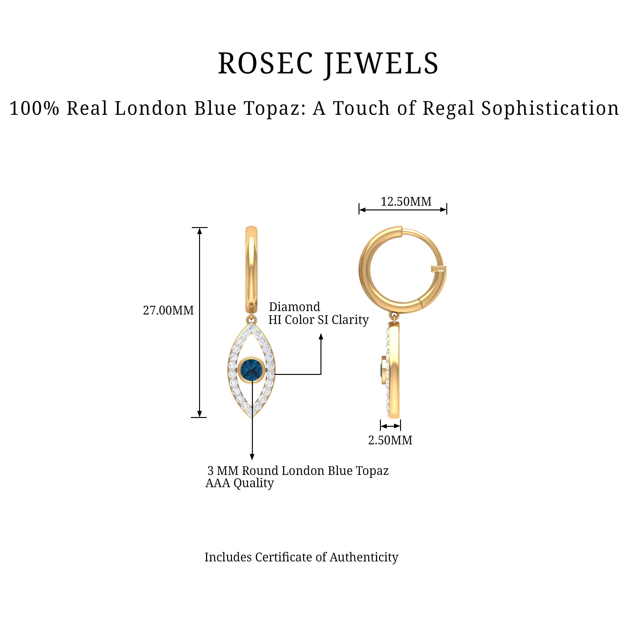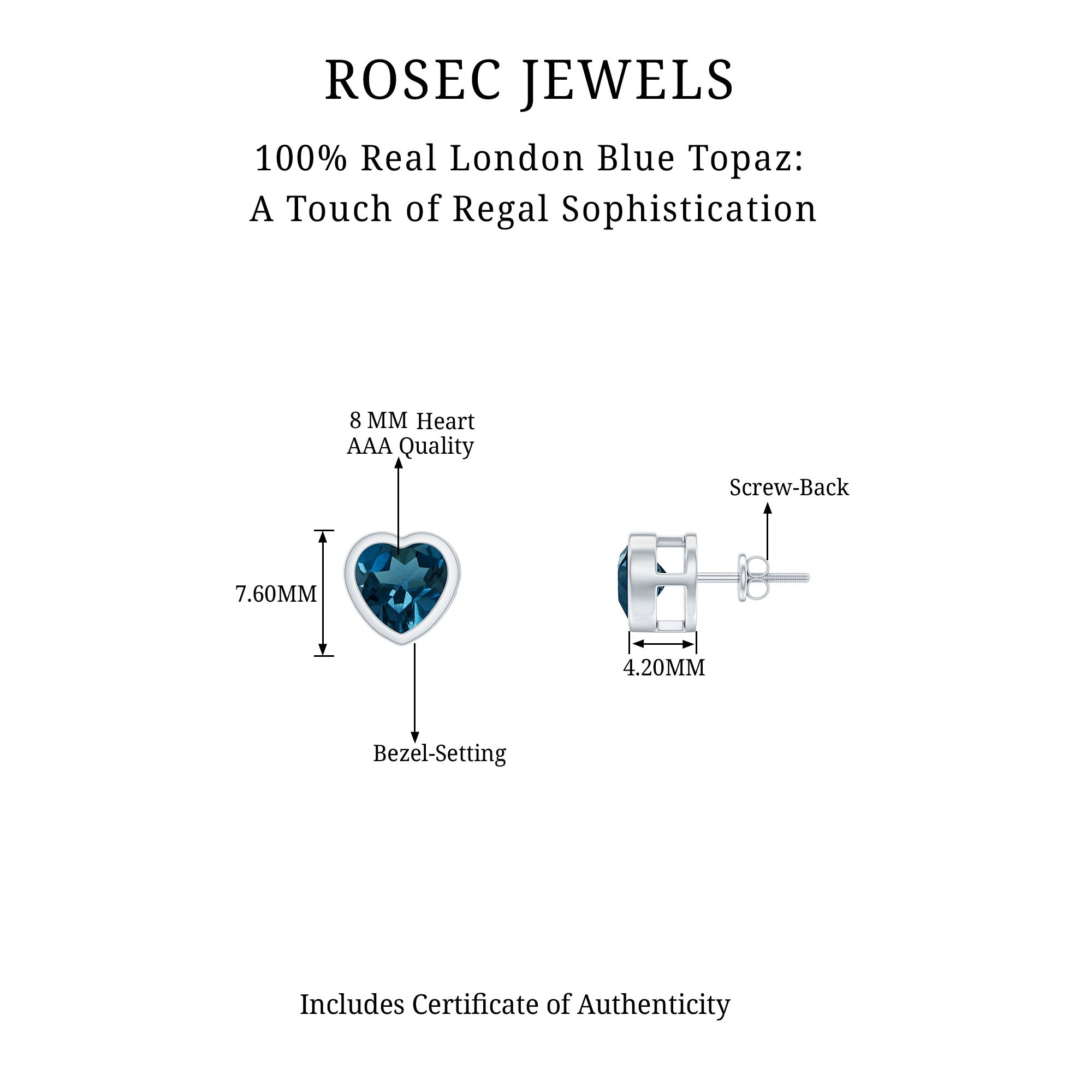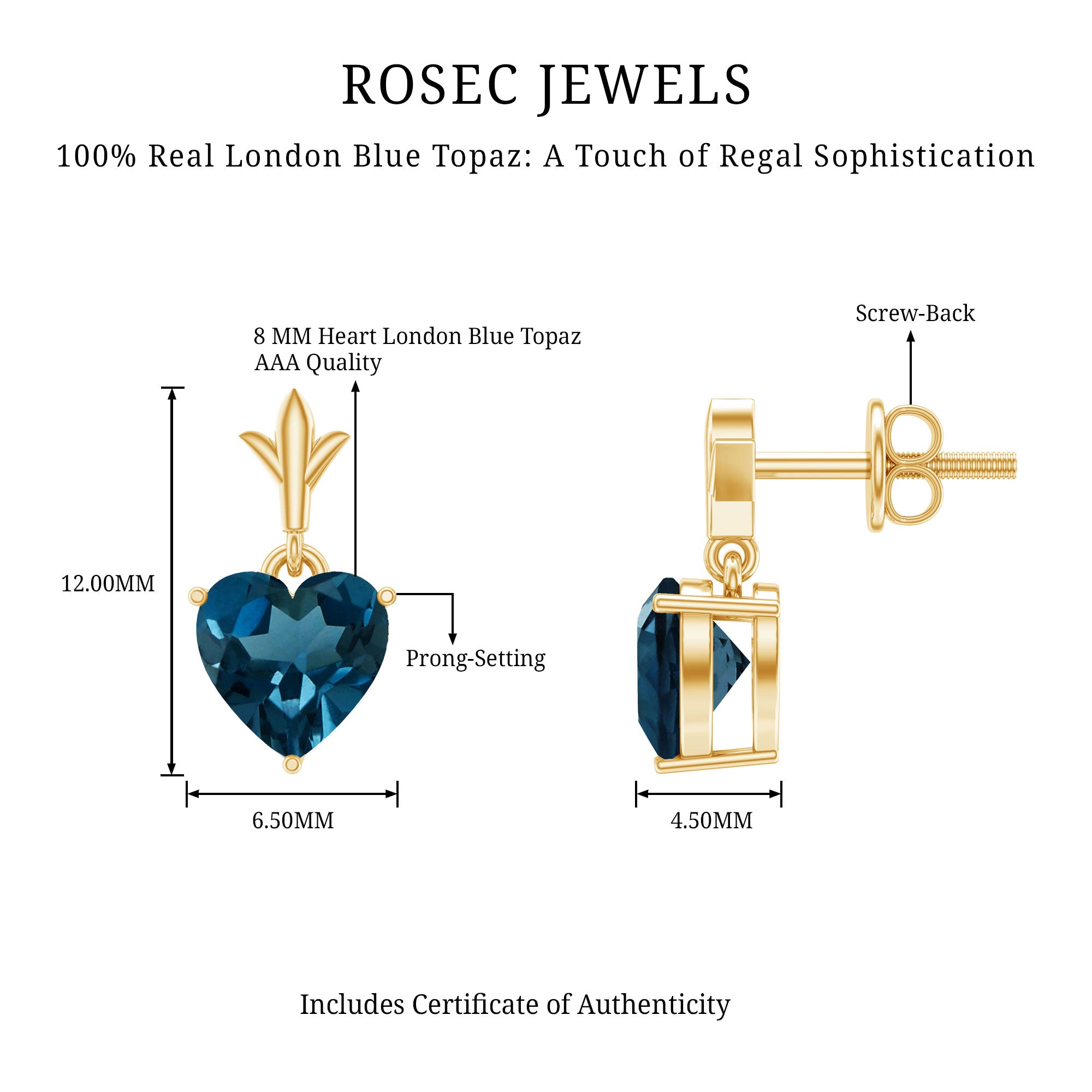 White Gold:- A popular pick for gemstone jewelry. White Gold metal complement any design and cool color tones of London blue topaz earrings, creating a mesmerizing charm to your personality.