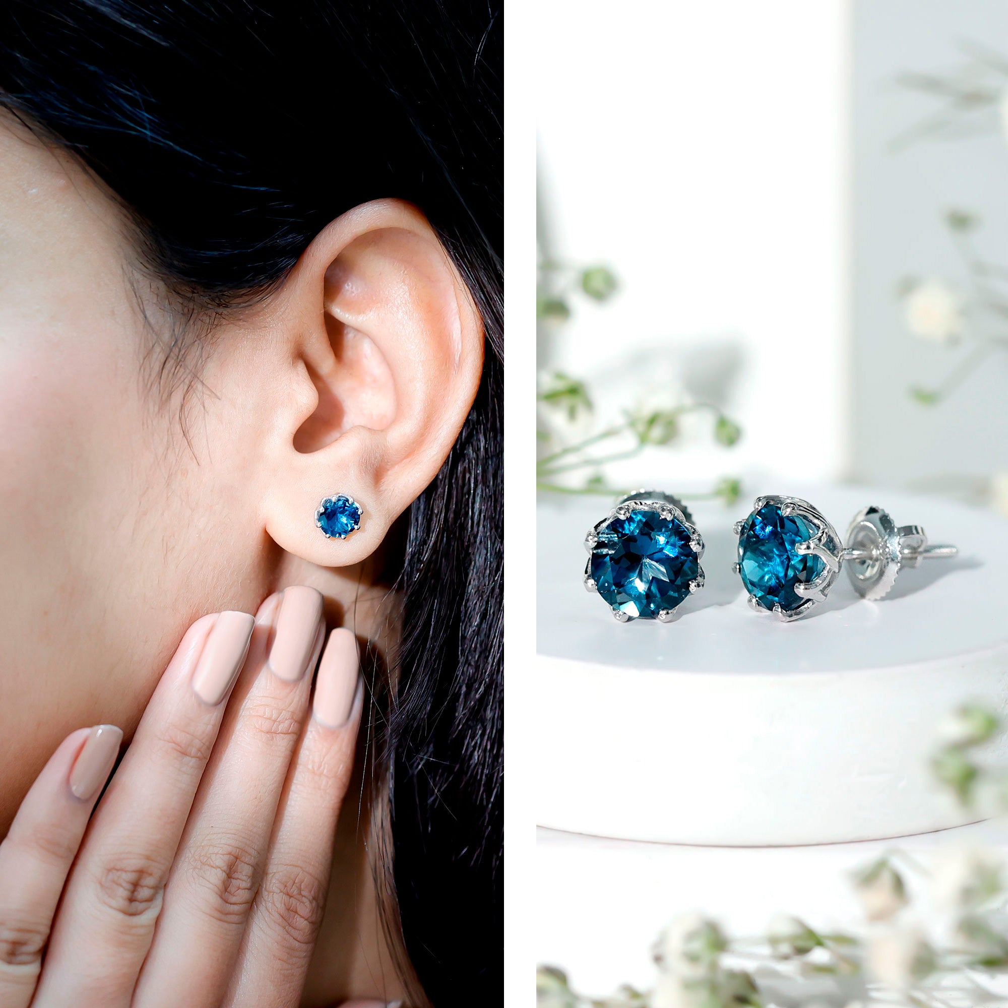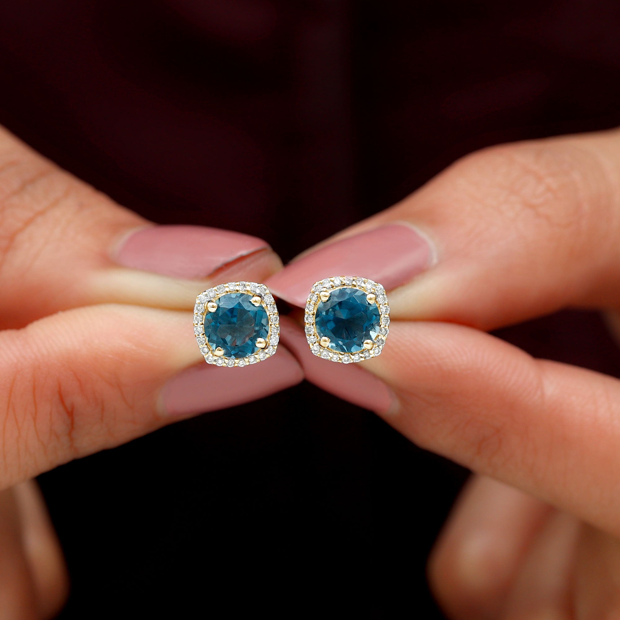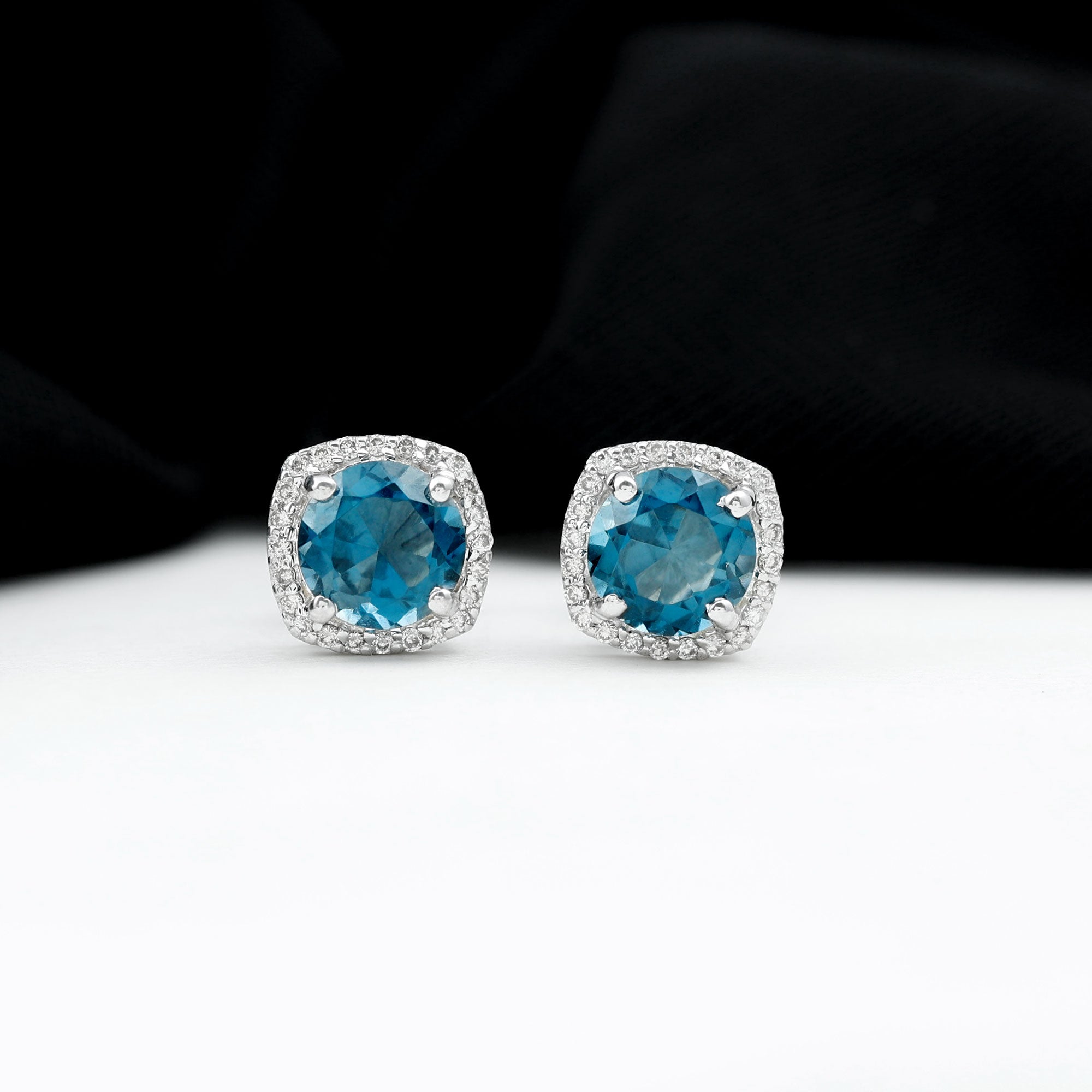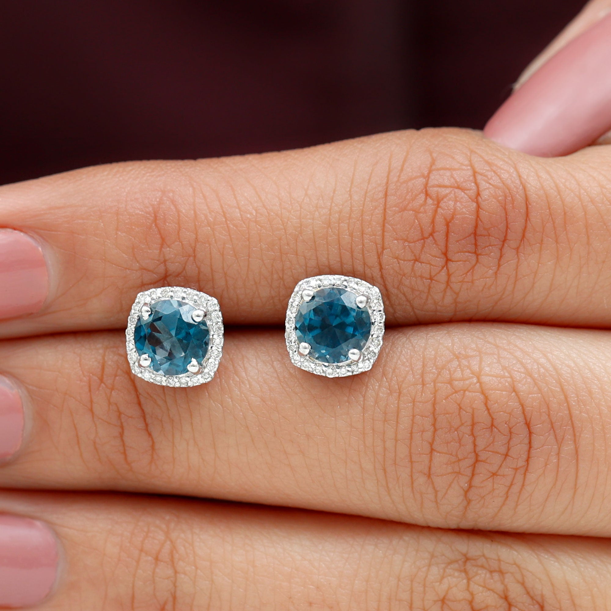 London Blue Topaz Studs: - Every London blue topaz stud earring, from round shape to cushion cut, gleams and displays sparkle from every angle. The simple and sophisticated appearance of earrings makes them an ideal piece of earrings for those who seek versatility in their accessories. Being durable studs, they are cherished for years, and the stud's sparkle will endure undiminished.