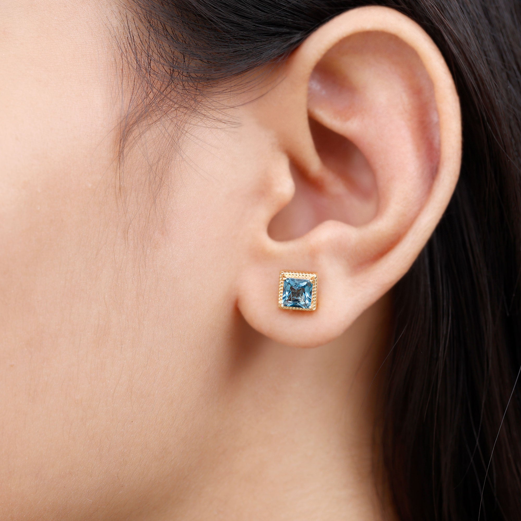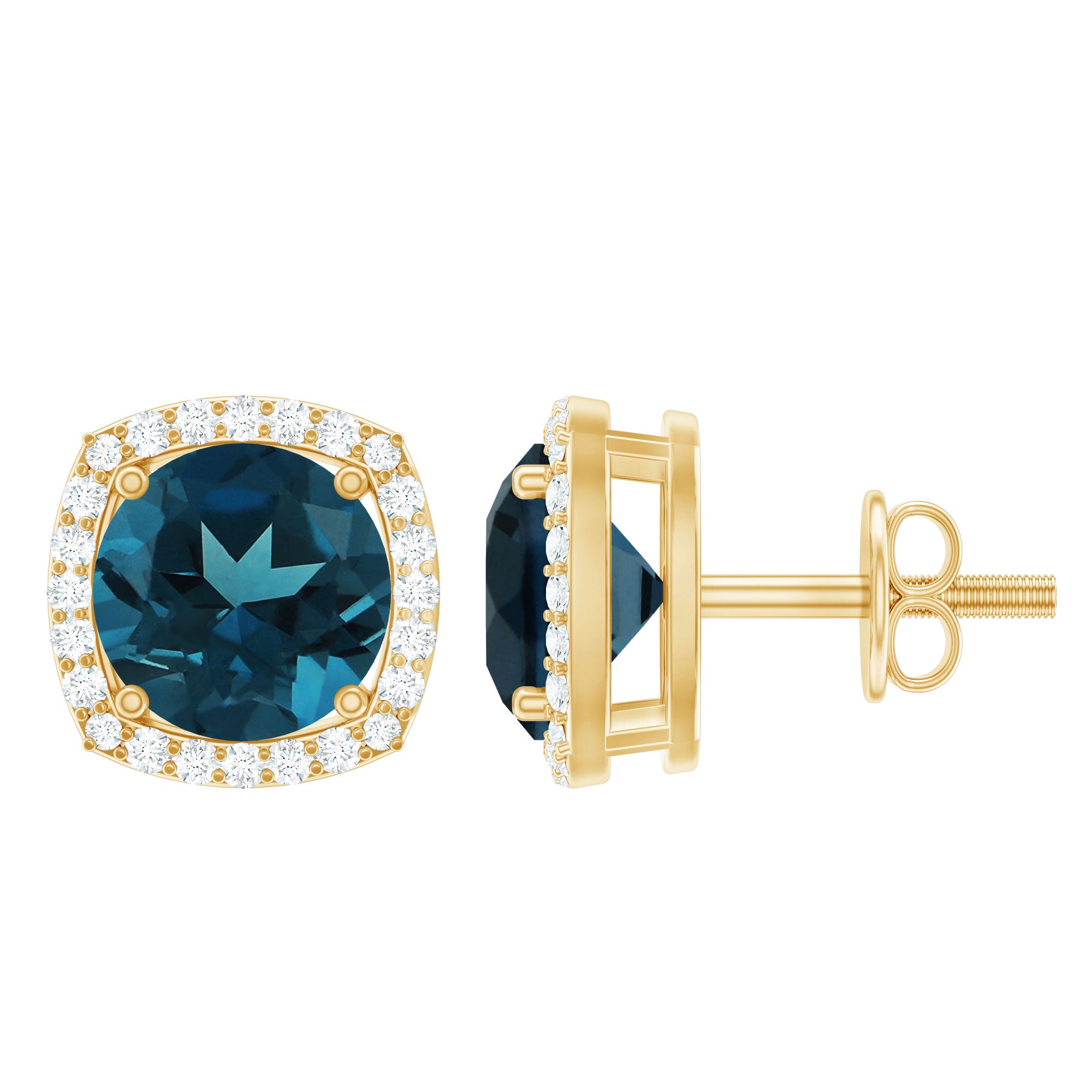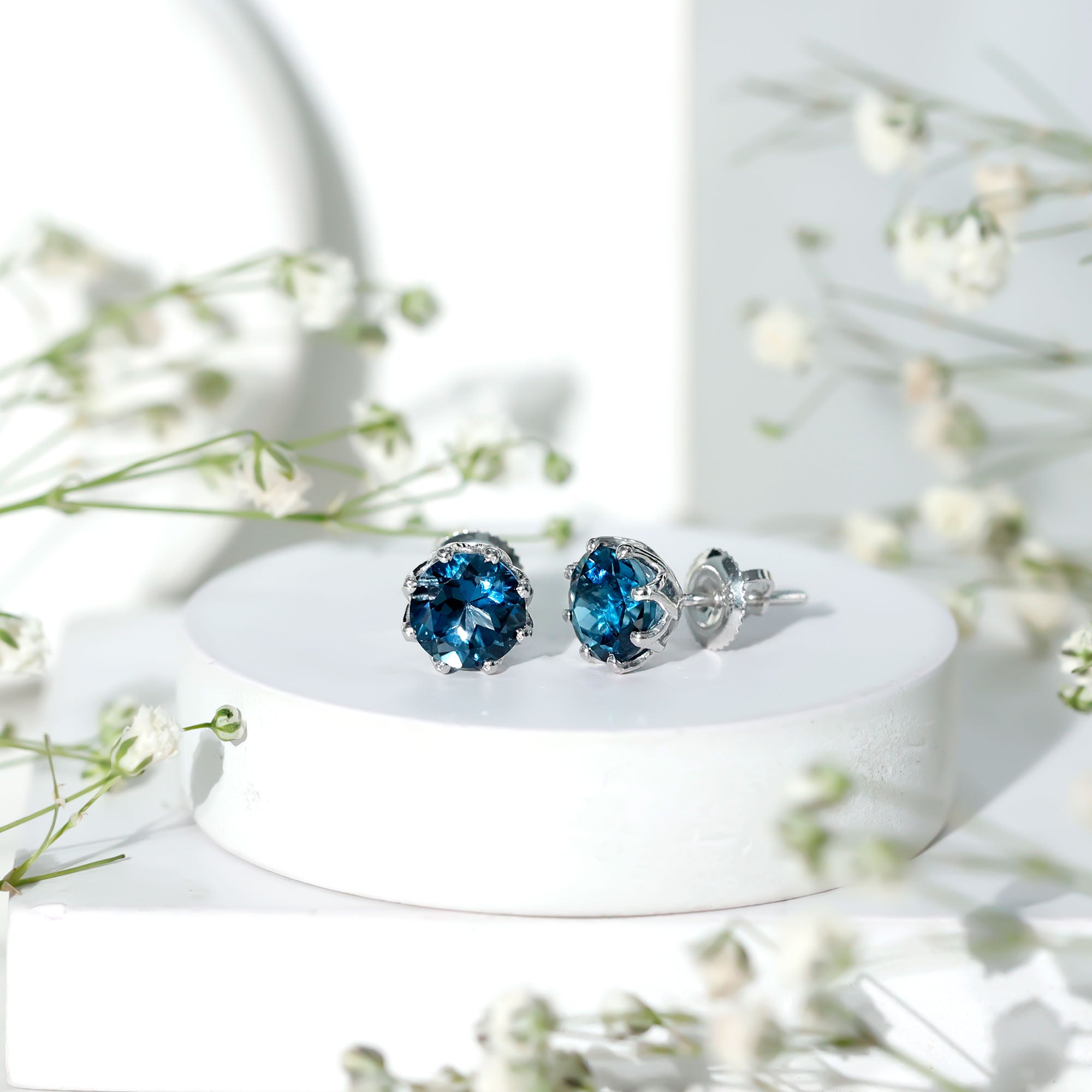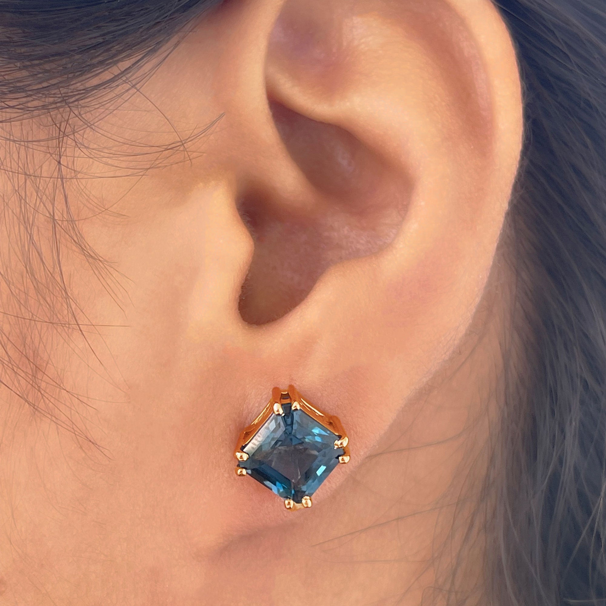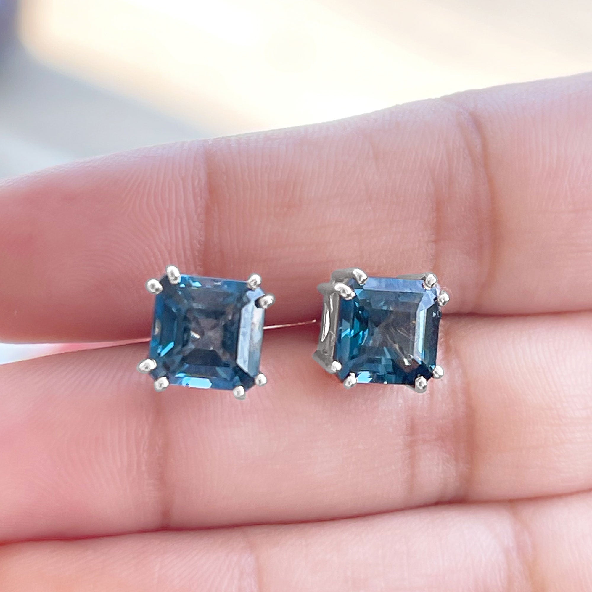 London Blue Topaz Studs: - Every London blue topaz stud earring, from round shape to cushion cut, gleams and displays sparkle from every angle. The simple and sophisticated appearance of earrings makes them an ideal piece of earrings for those who seek versatility in their accessories. Being durable studs, they are cherished for years, and the stud's sparkle will endure undiminished.