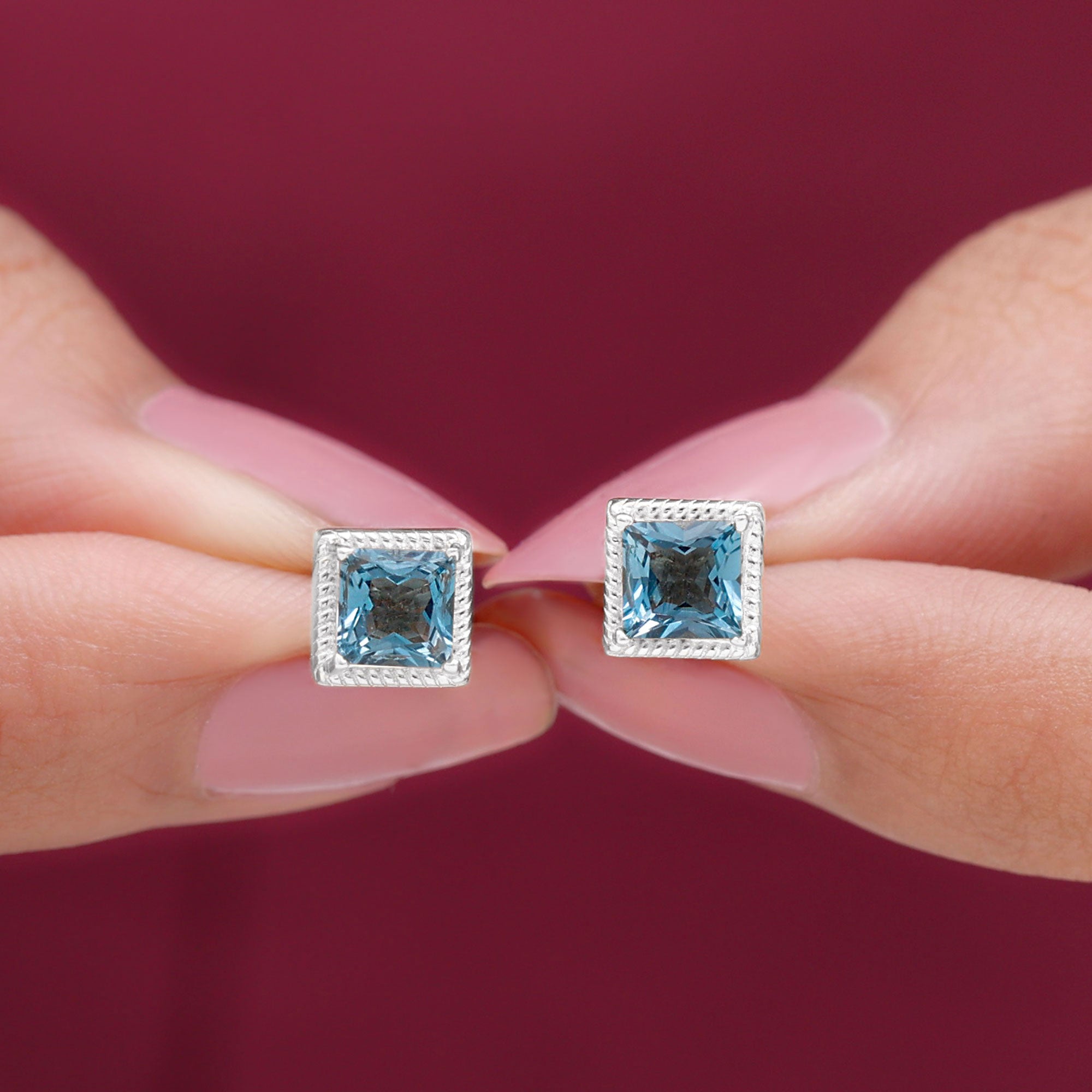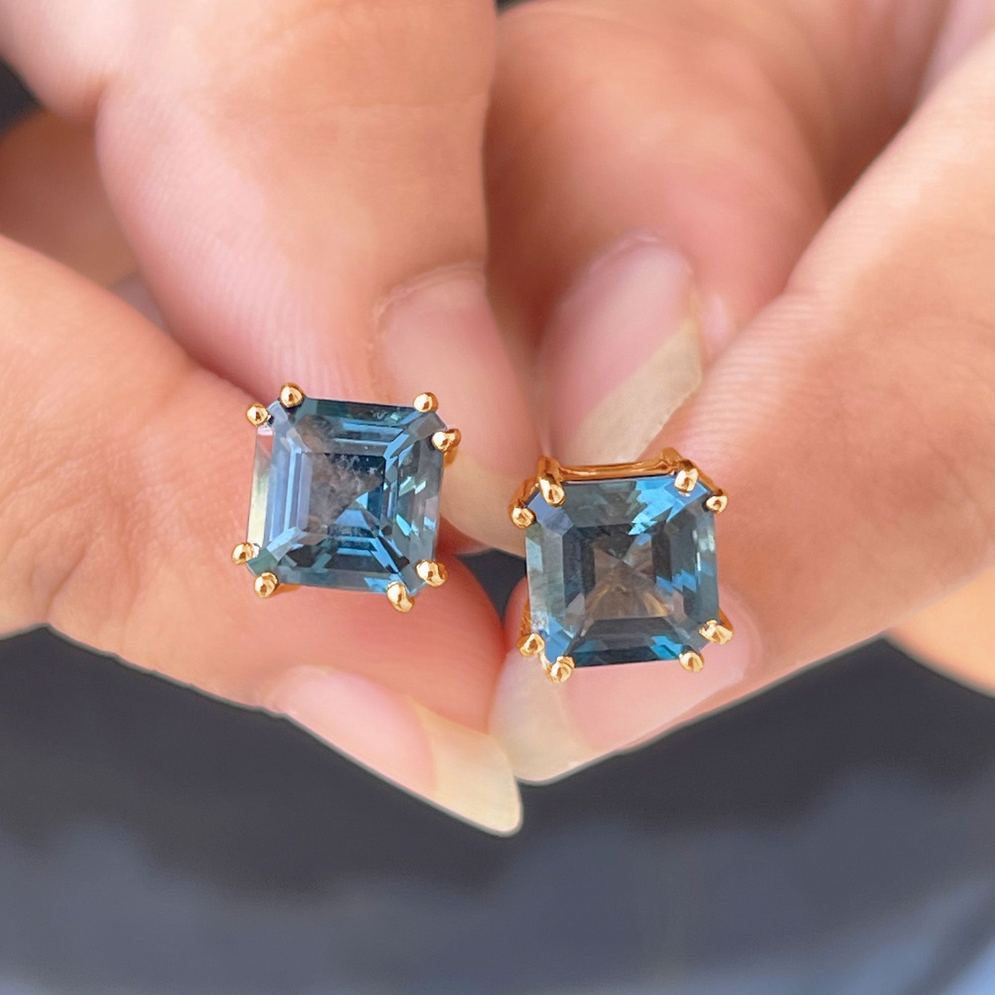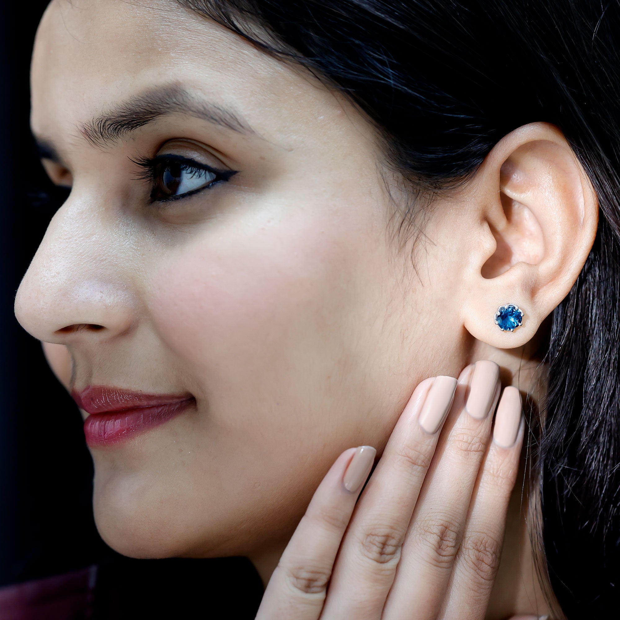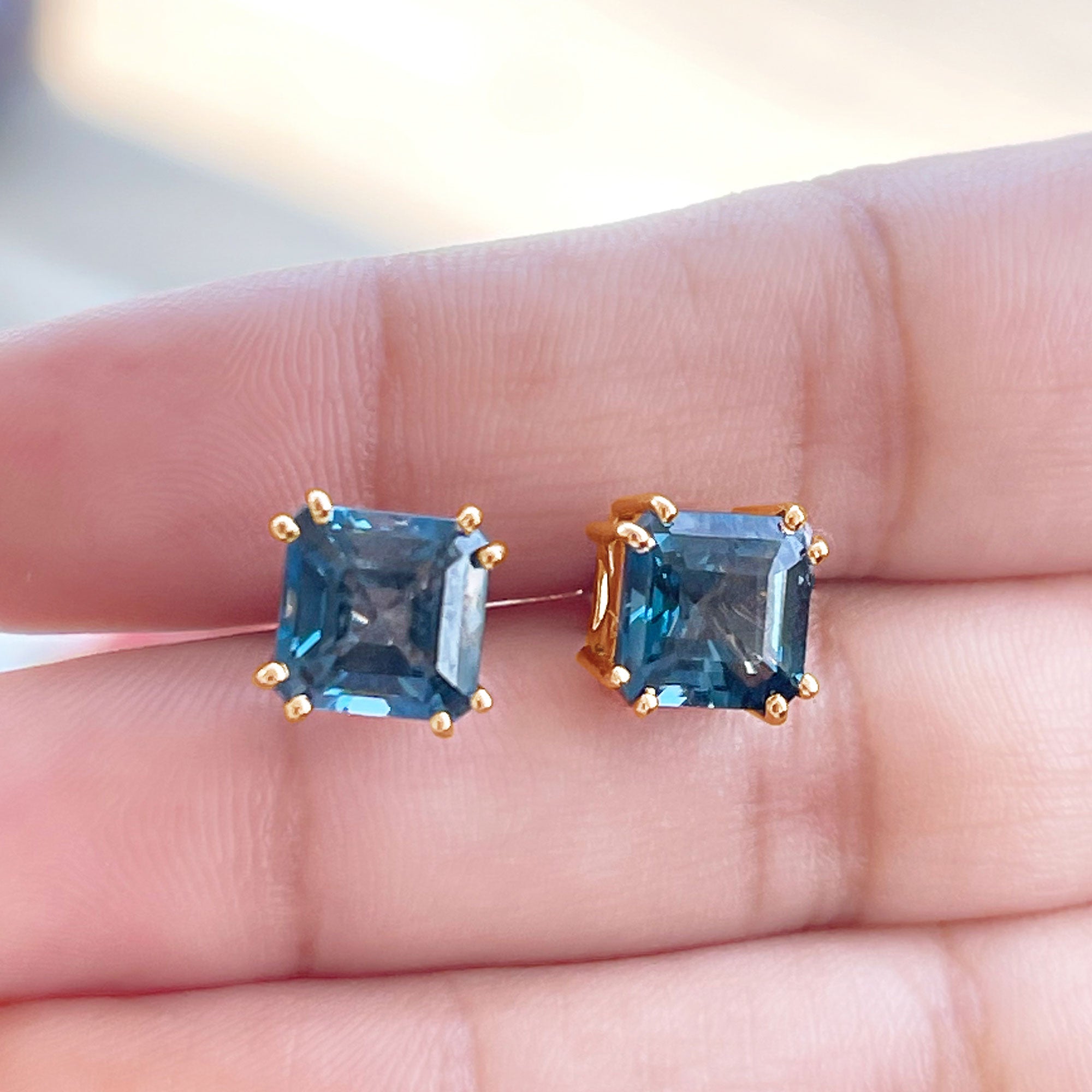 London Blue Topaz Studs: - Every London blue topaz stud earring, from round shape to cushion cut, gleams and displays sparkle from every angle. The simple and sophisticated appearance of earrings makes them an ideal piece of earrings for those who seek versatility in their accessories. Being durable studs, they are cherished for years, and the stud's sparkle will endure undiminished.