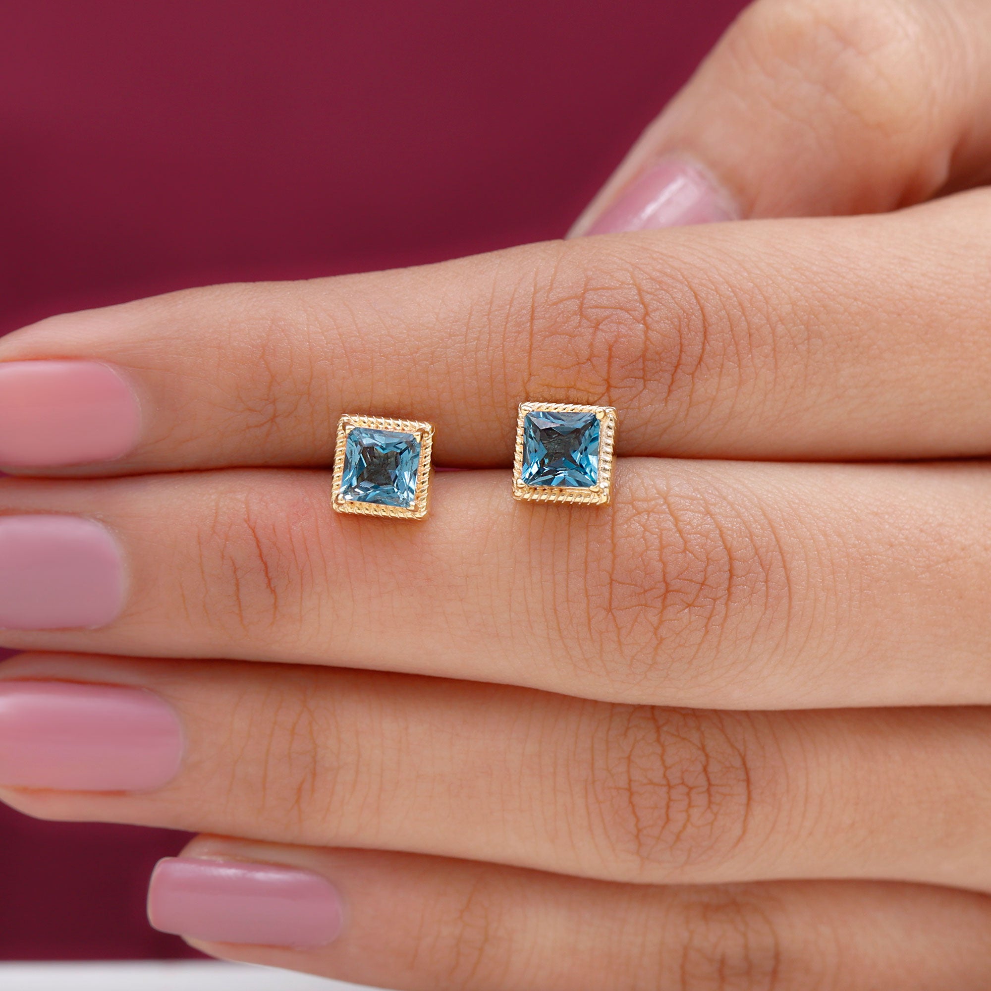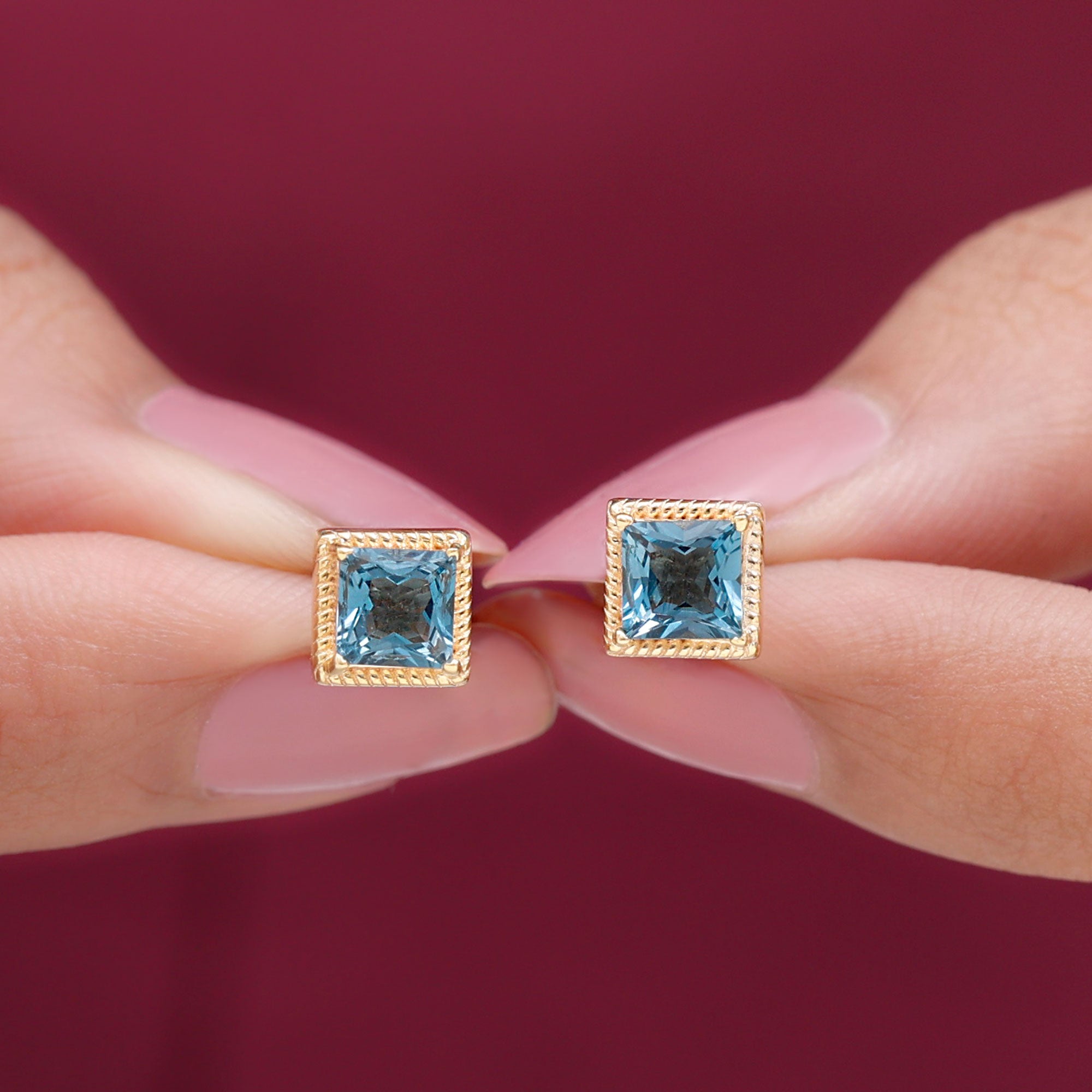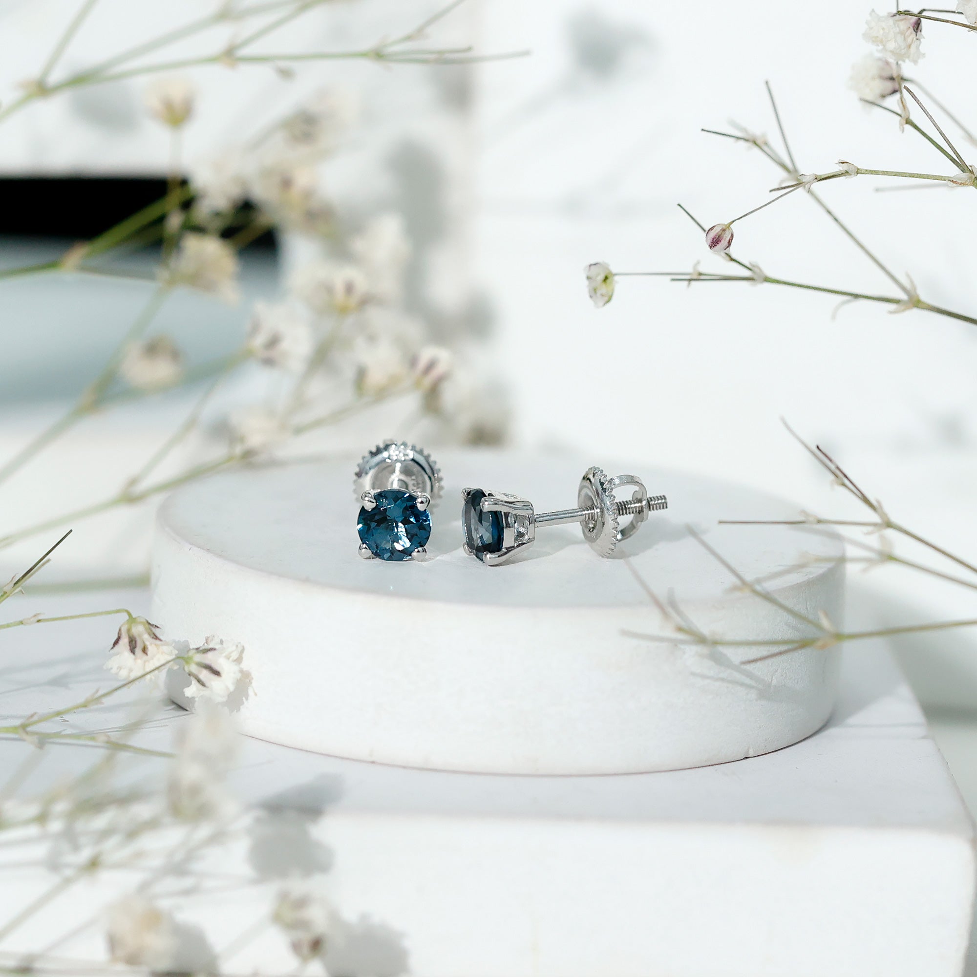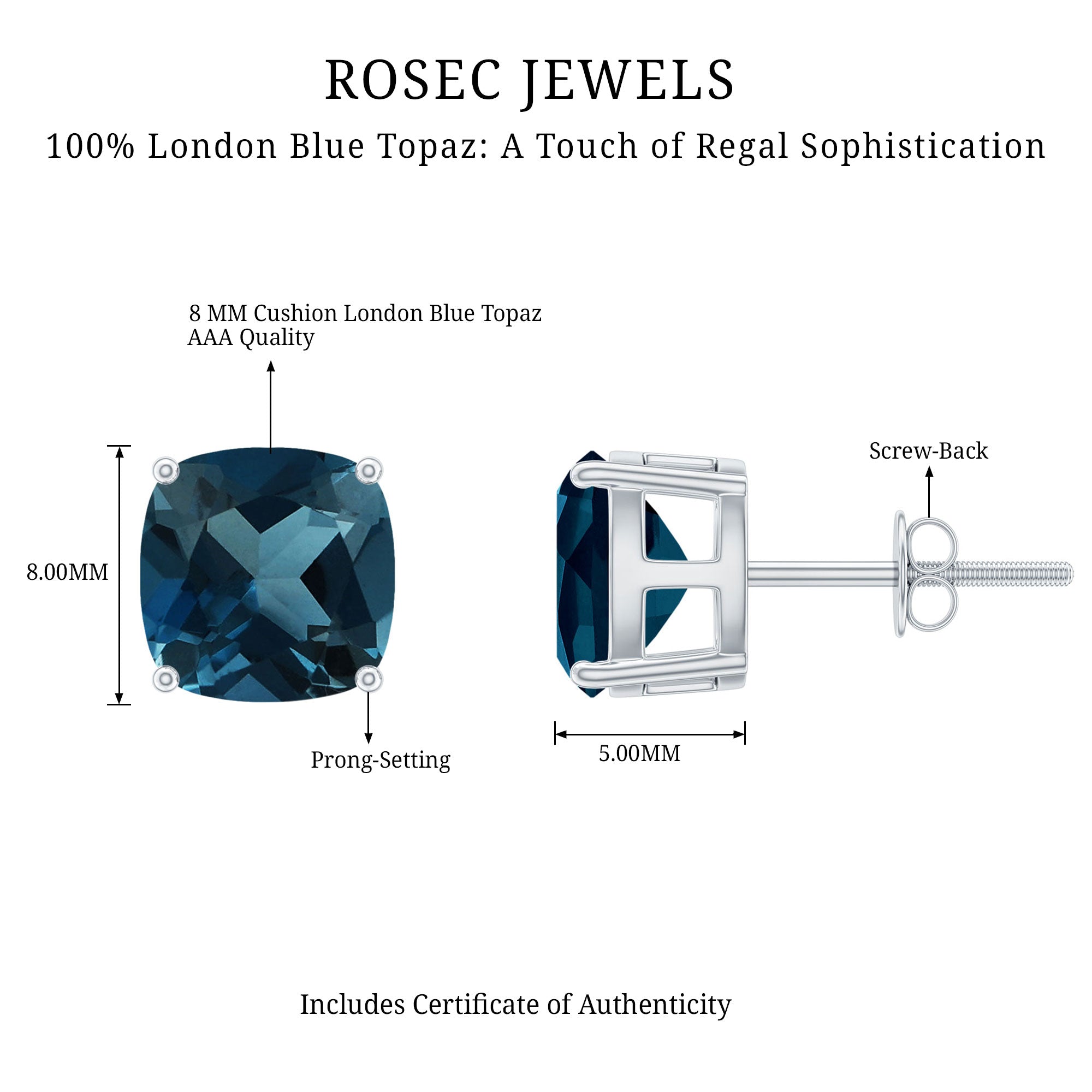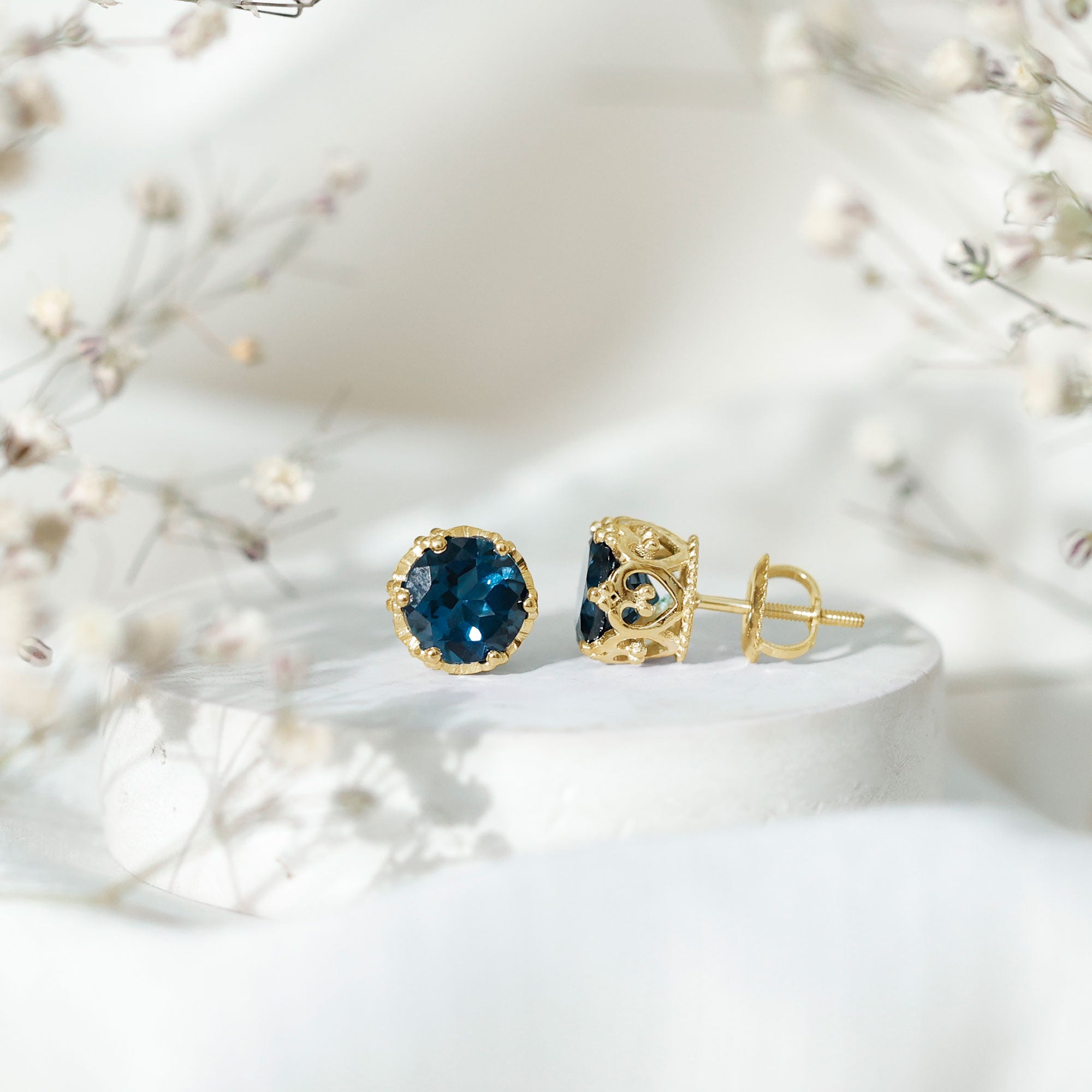London Blue Topaz Studs: - Every London blue topaz stud earring, from round shape to cushion cut, gleams and displays sparkle from every angle. The simple and sophisticated appearance of earrings makes them an ideal piece of earrings for those who seek versatility in their accessories. Being durable studs, they are cherished for years, and the stud's sparkle will endure undiminished.