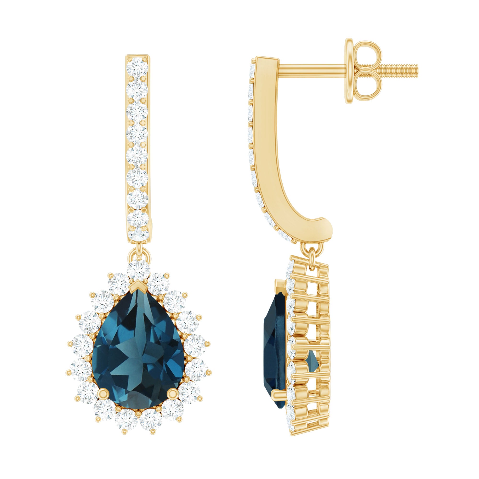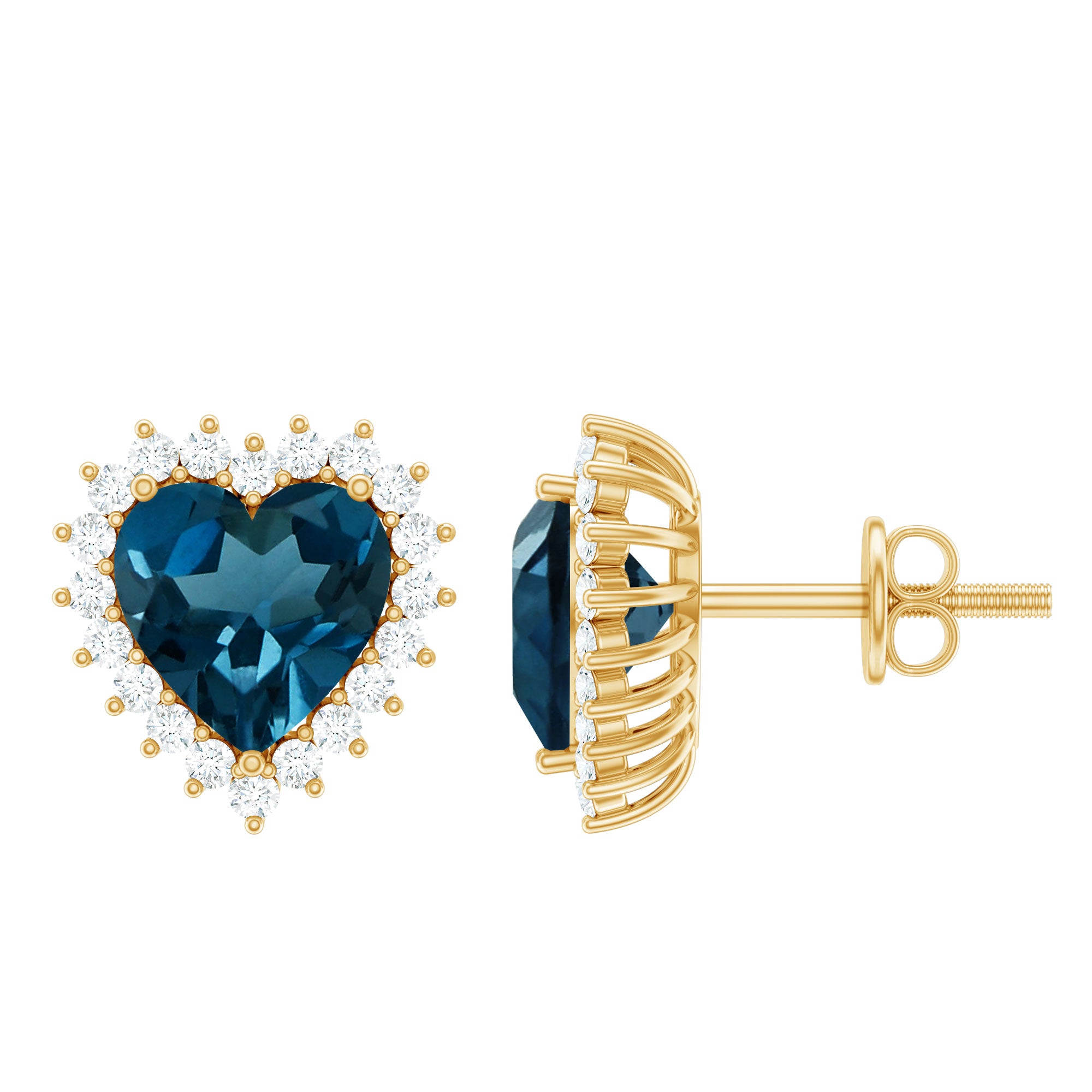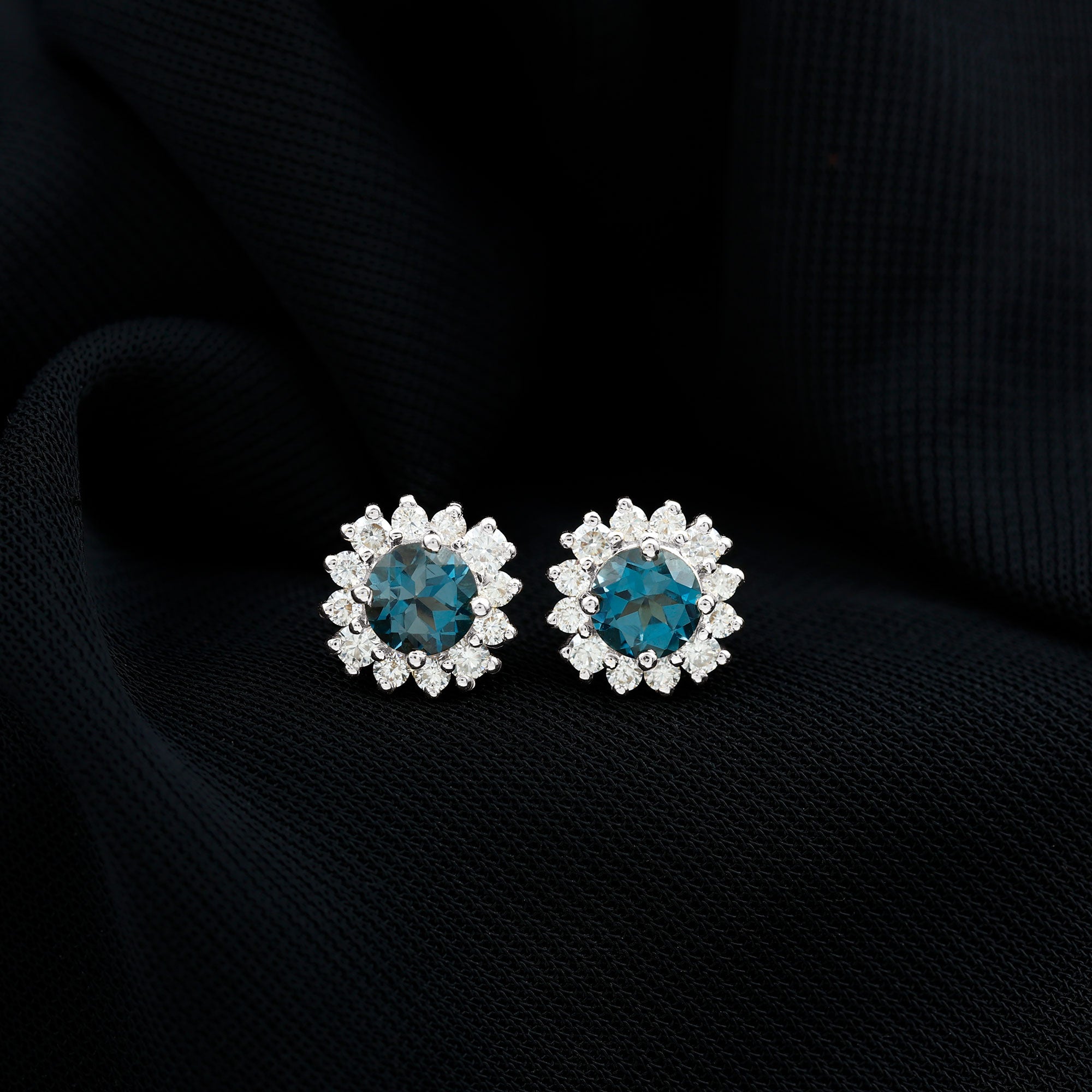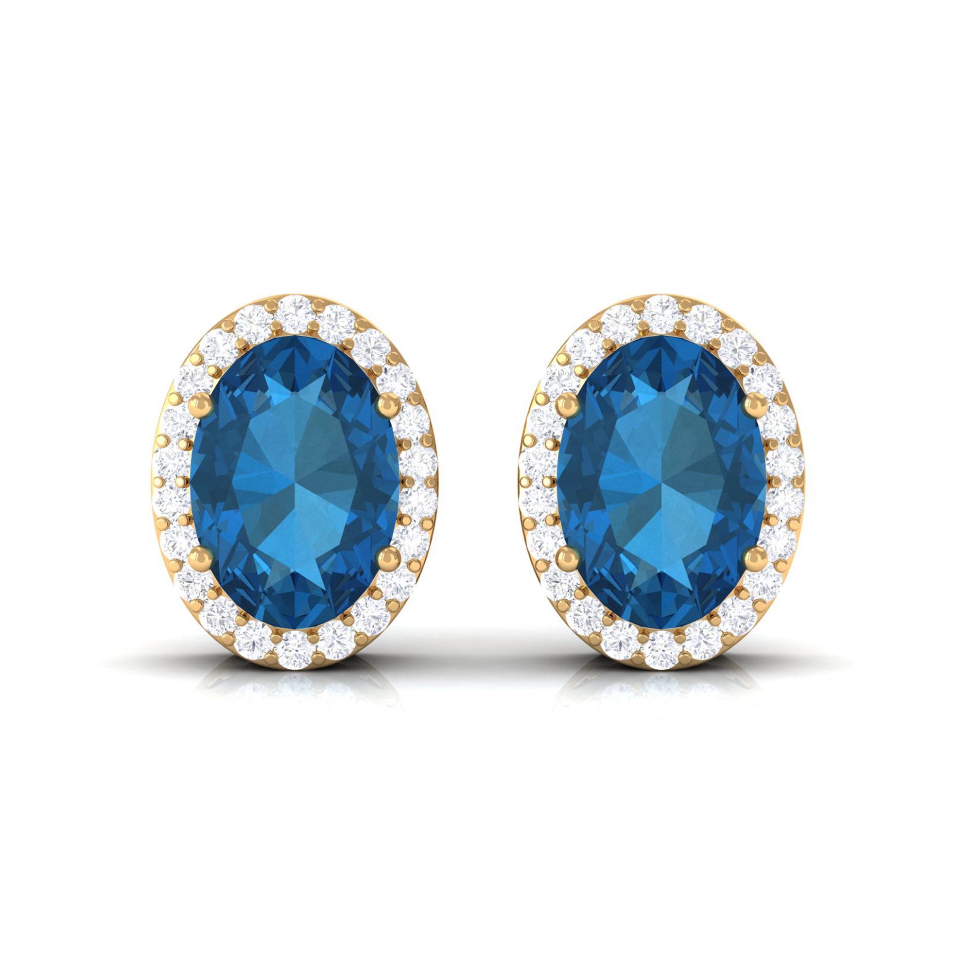 London Blue Topaz Halo Earrings: - The center gems of the blue Topaz halo earrings are embellished with distinct cuts like oval cut, heart cut, pear cut, and brilliant cut that is crafted in solid gold. The brilliant cuts of London blue topaz create a centerpiece attraction that stole everyone's attention.
