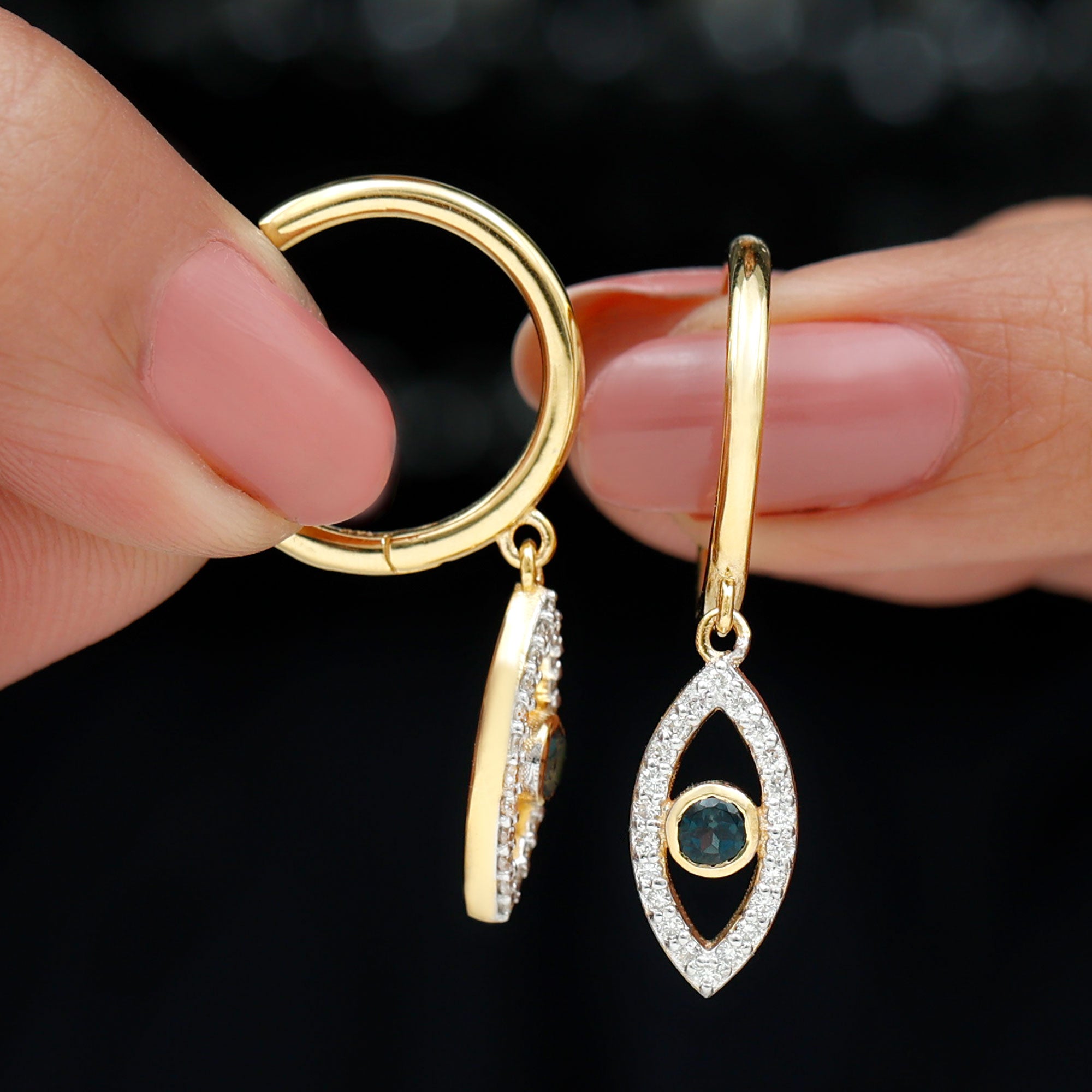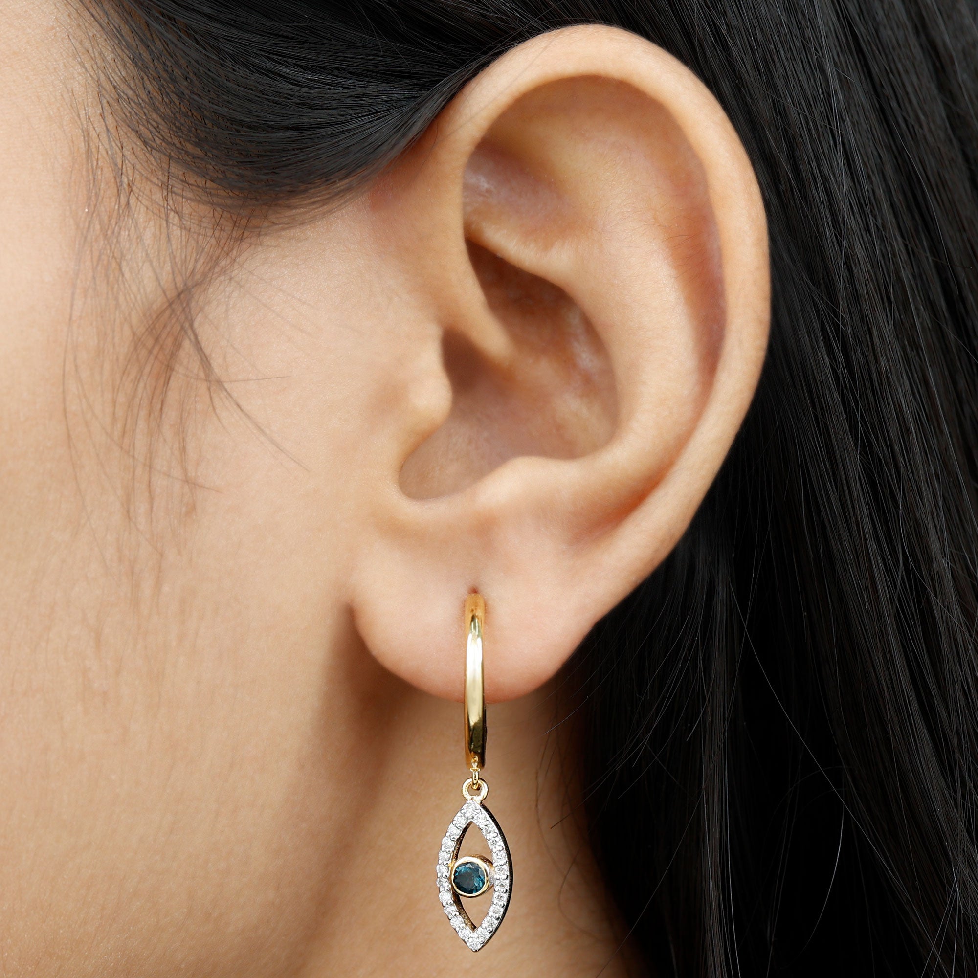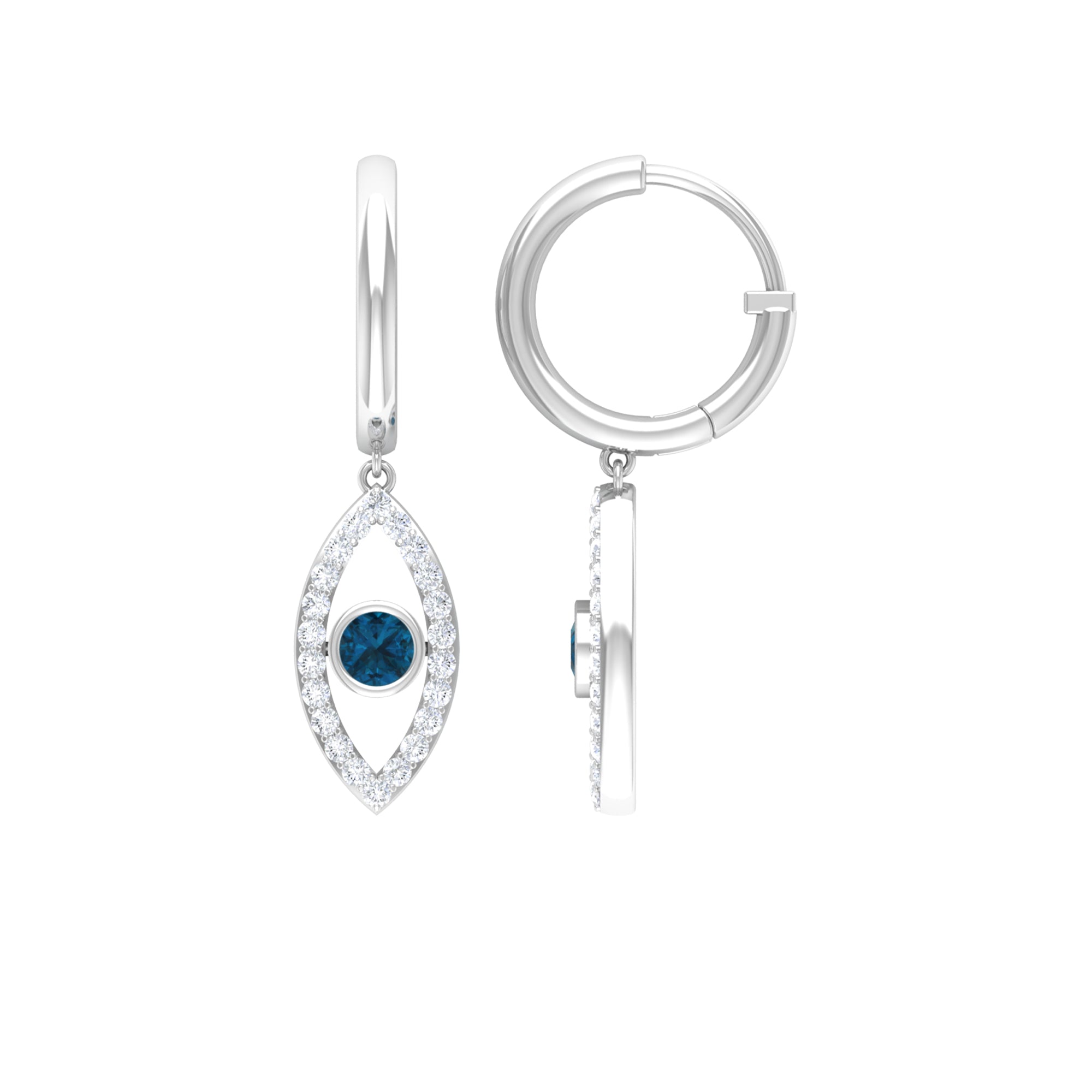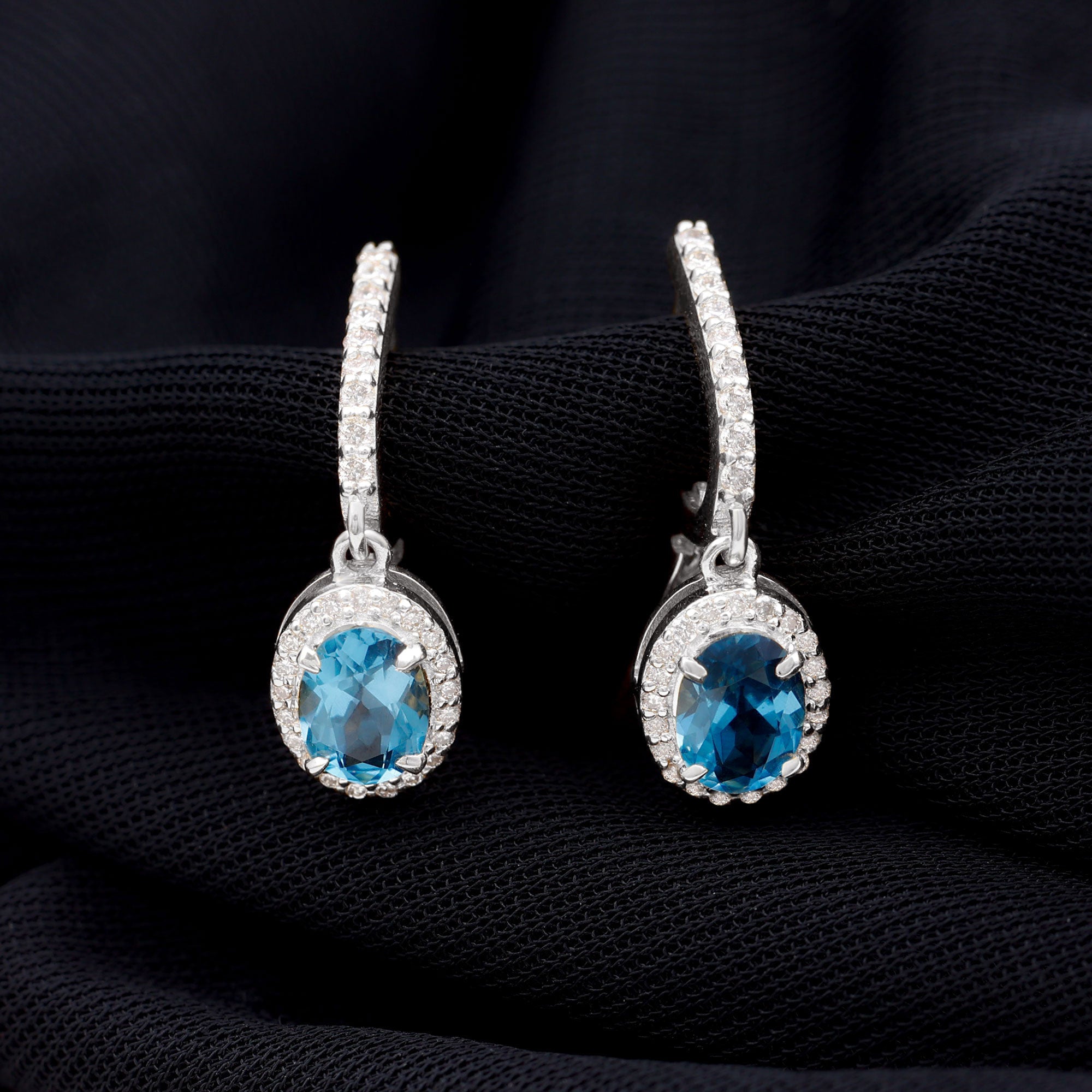 London Blue Topaz Vintage Inspired Earrings: - with each unique design of blue topaz vintage inspired earrings contributes to your charm and allure. Our vintage-styled blue topaz hoop drop earrings with diamond accents are a harmonious combination of modernism and classic elegance. They are lightweight and also comfortable to wear, adding a slight touch of vintage charm to your attires.