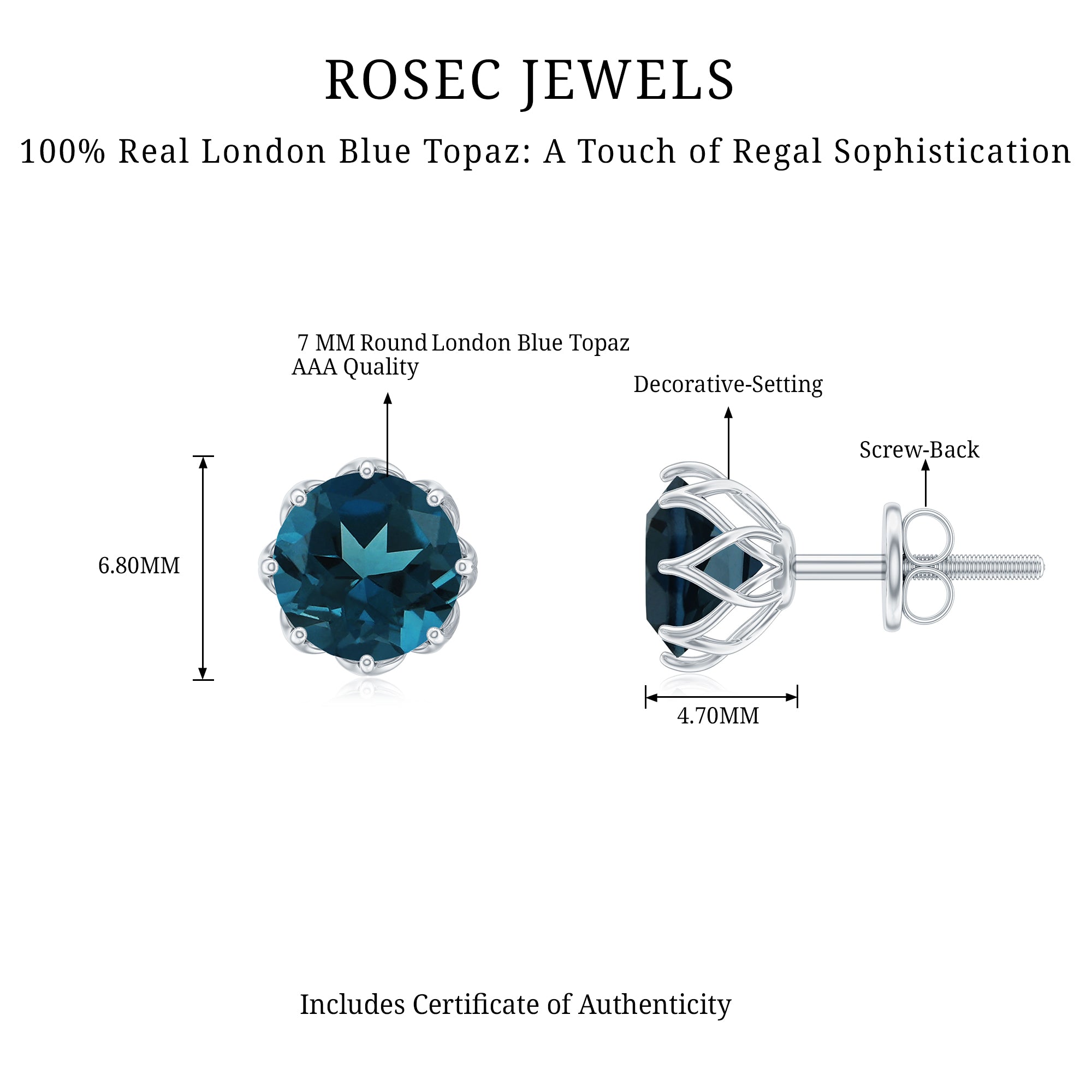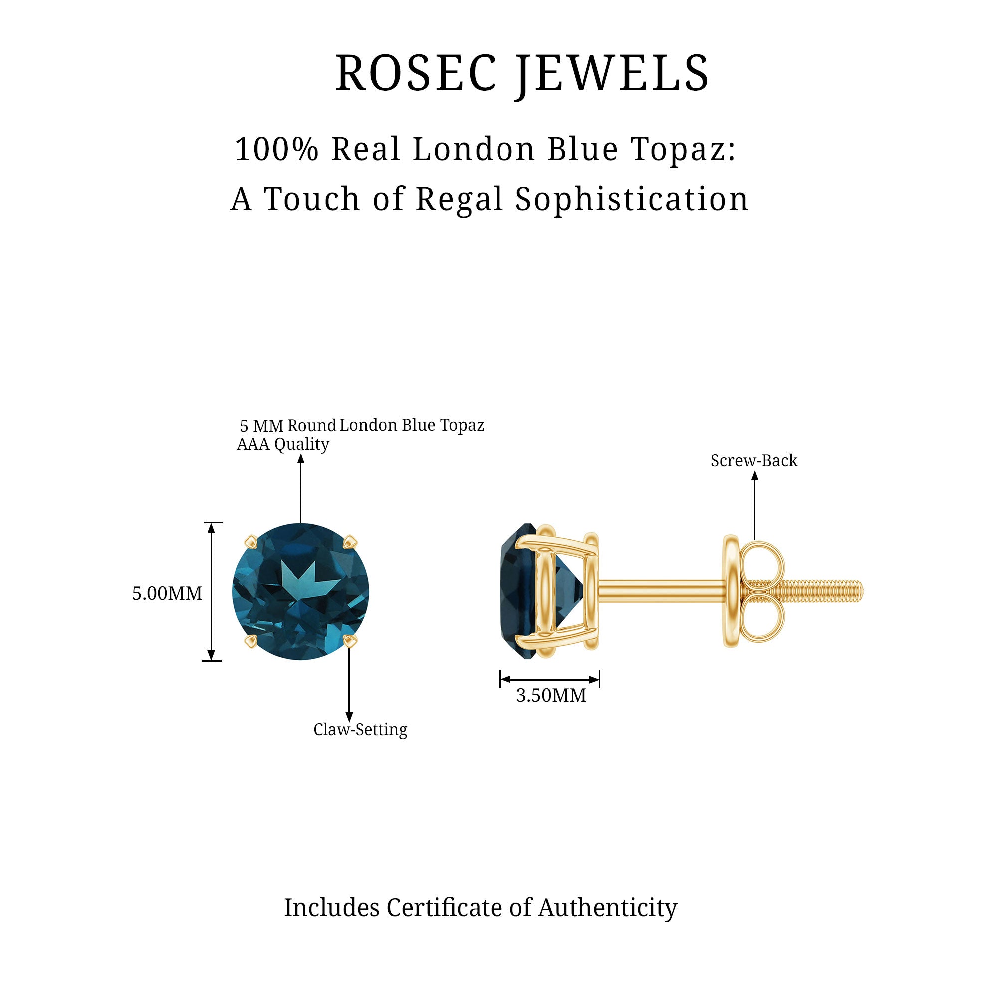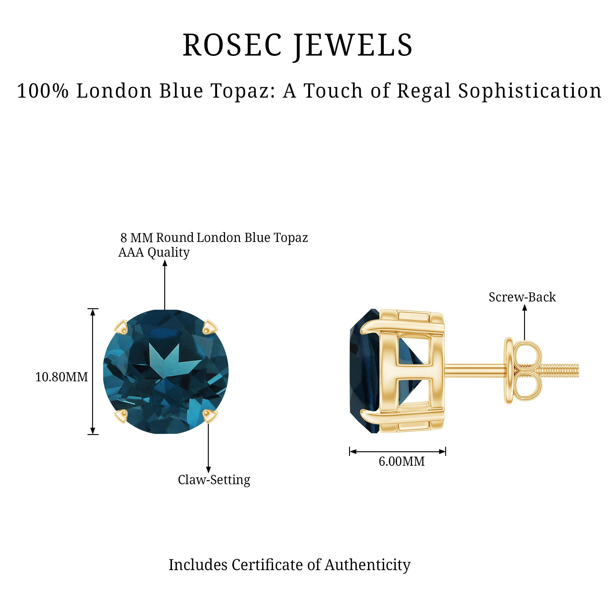 London Blue Topaz Solitaire Earrings: - Various solitaire earrings highlight the intense color of topaz and its rich texture. They are adorned with classic and elegant solitaire design, elevating a timeless charm and making it a perfect pair of earrings to your jewelry box.