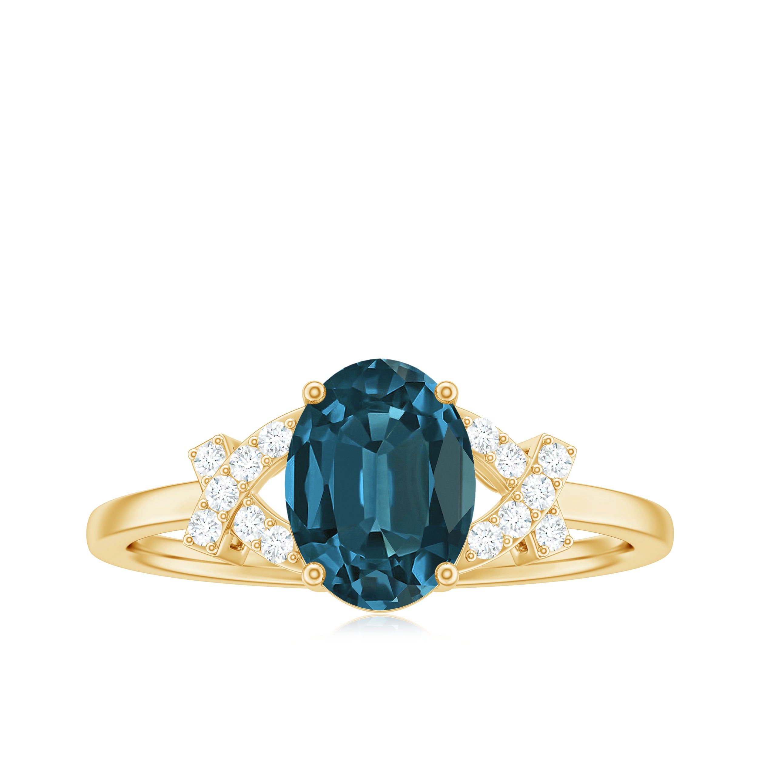For bride who adore a touch of sparkle, our stylish halo engagement ring elegantly highlights the center London blue topaz and makes them appear a bit larger. Encircled by small diamonds or moissanite stone, the shimmery halo not only accentuates the brilliance but also maximizes the regal blue hues, making them a foremost option for wedding or engagement rings. Our classic yet mesmerizing London blue topaz with a diamond accent is perfect for couples who appreciate the timeless charm with a hint of glamour.