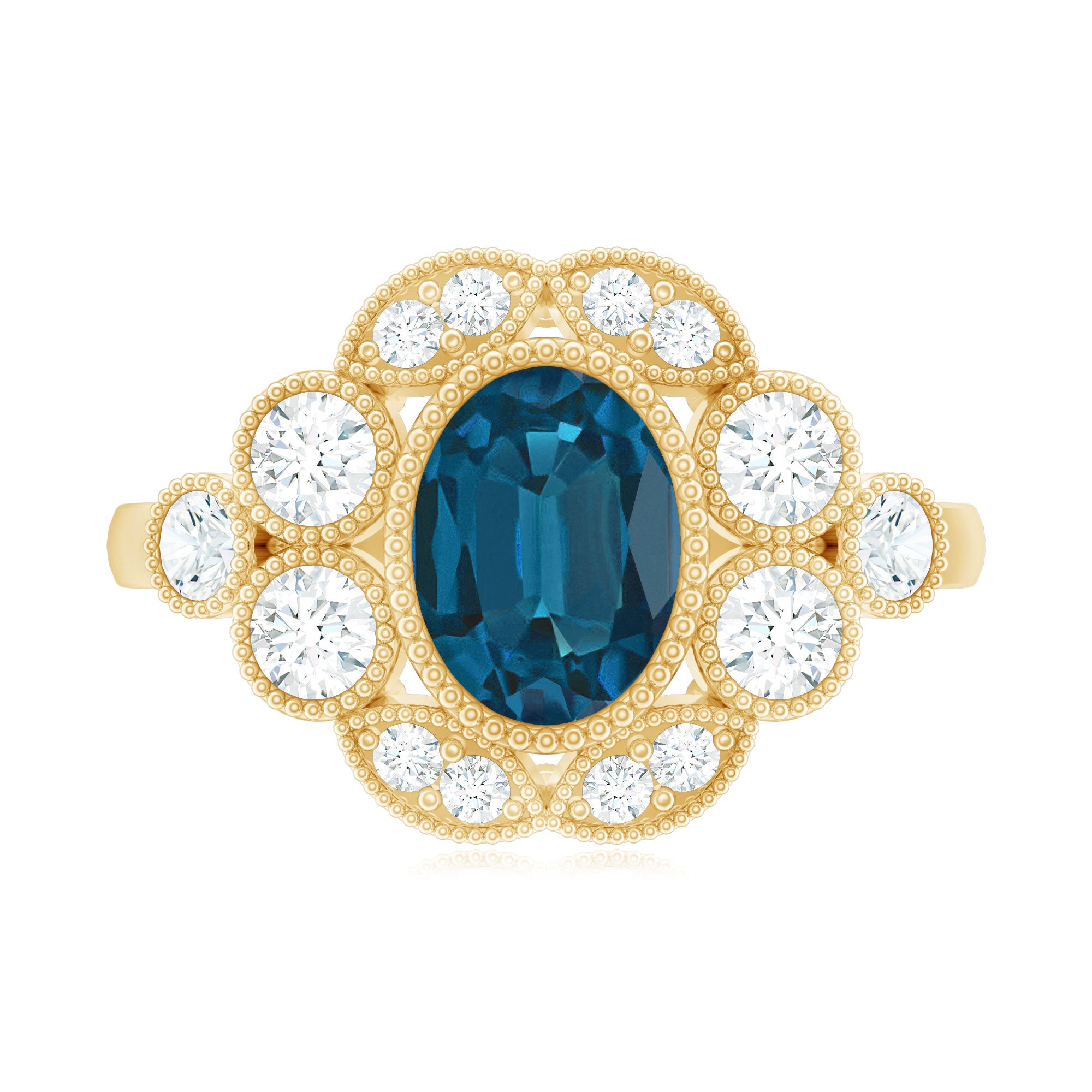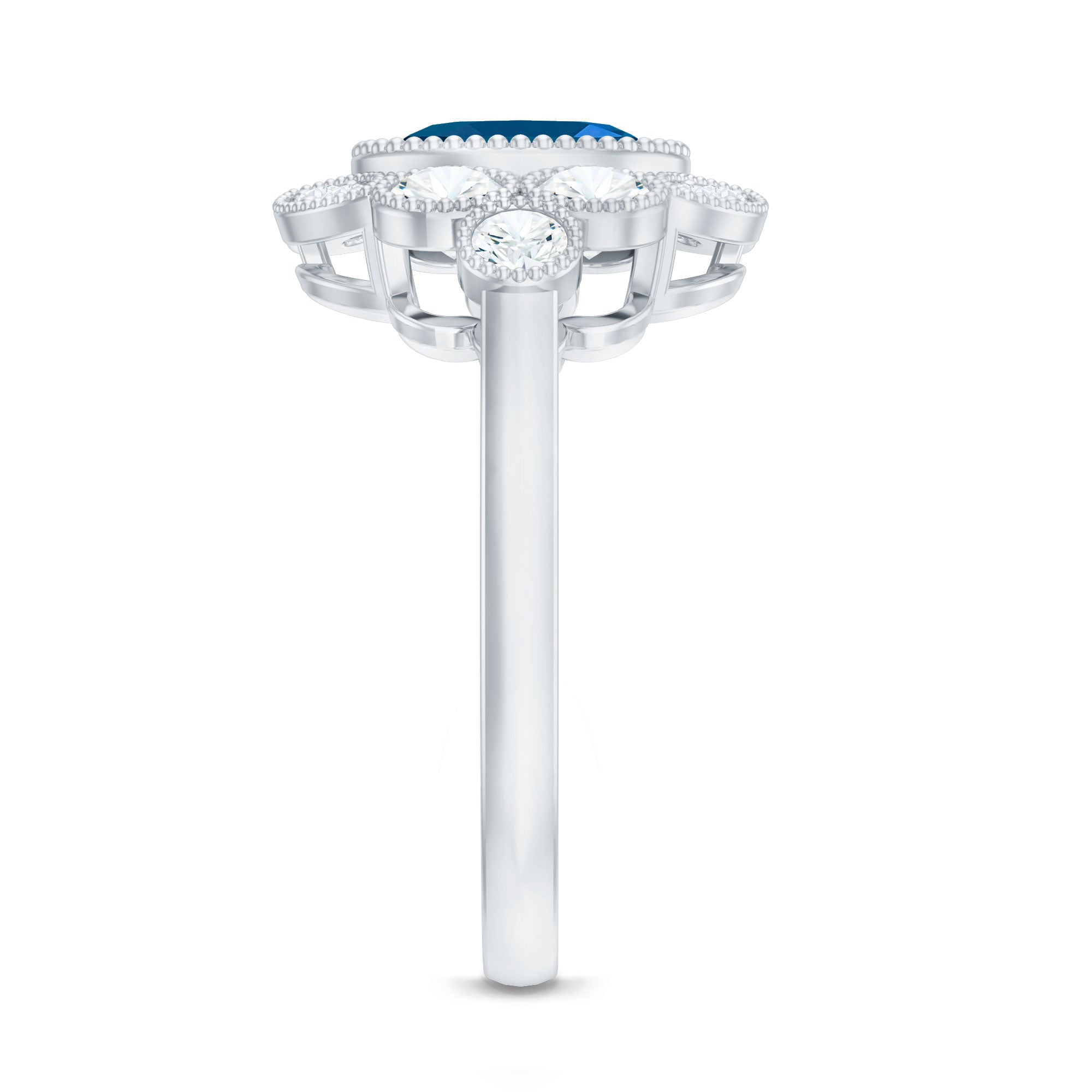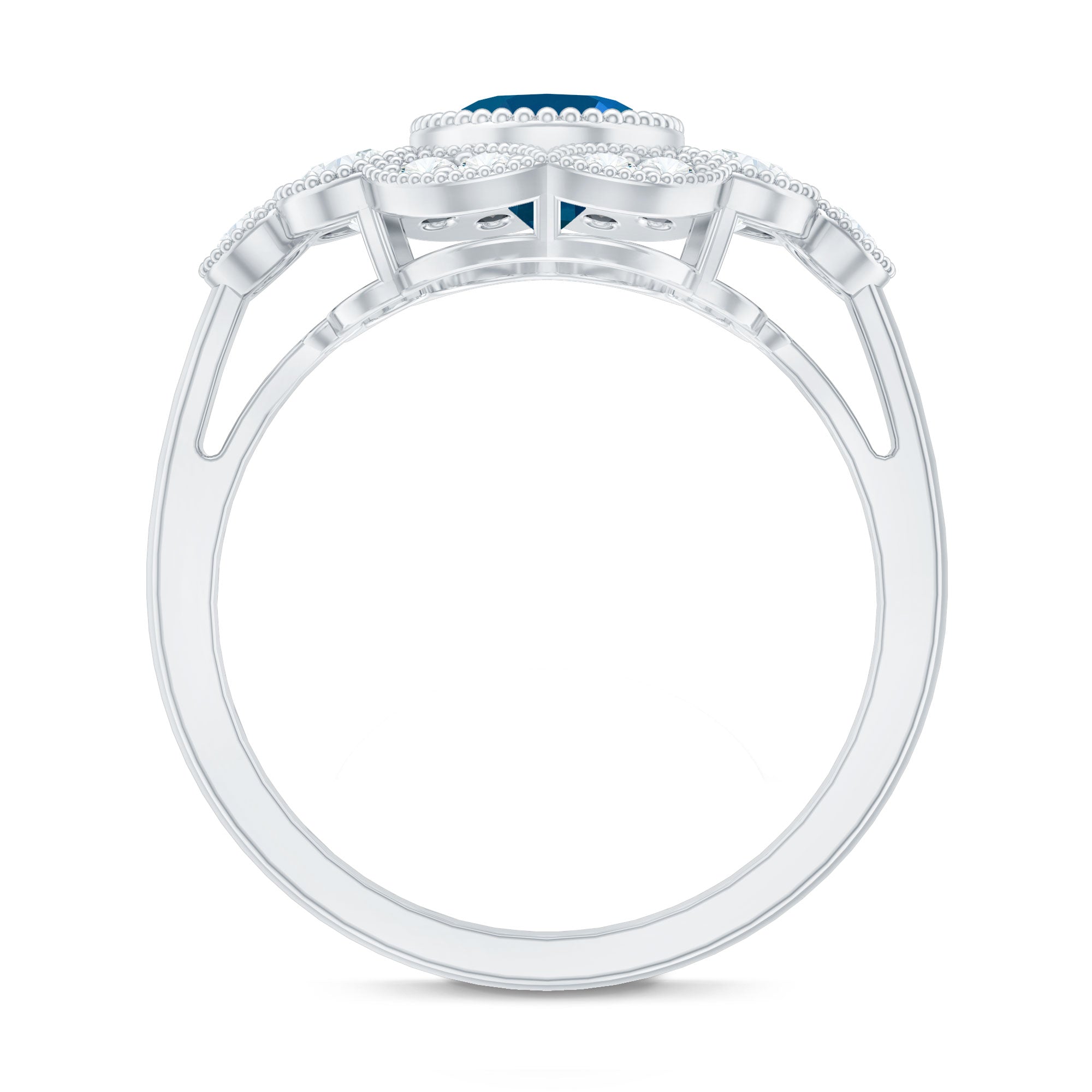 This style of engagement ring stands out unique due to its artistic elegance and nostalgic vibe, drawing inspiration from the classic Art Deco Victorian Eras and Edwardian eras. Our London blue topaz vintage-inspired rings highlight intricate details such as milgran and filigree along with abstract geometric patterns and historic engravings, making the best timeless charming accessory that offers an antique feel. The London Blue Topaz is graced by vintage design, making it a perfect ring for those couples who are inspired by old-school romance.
