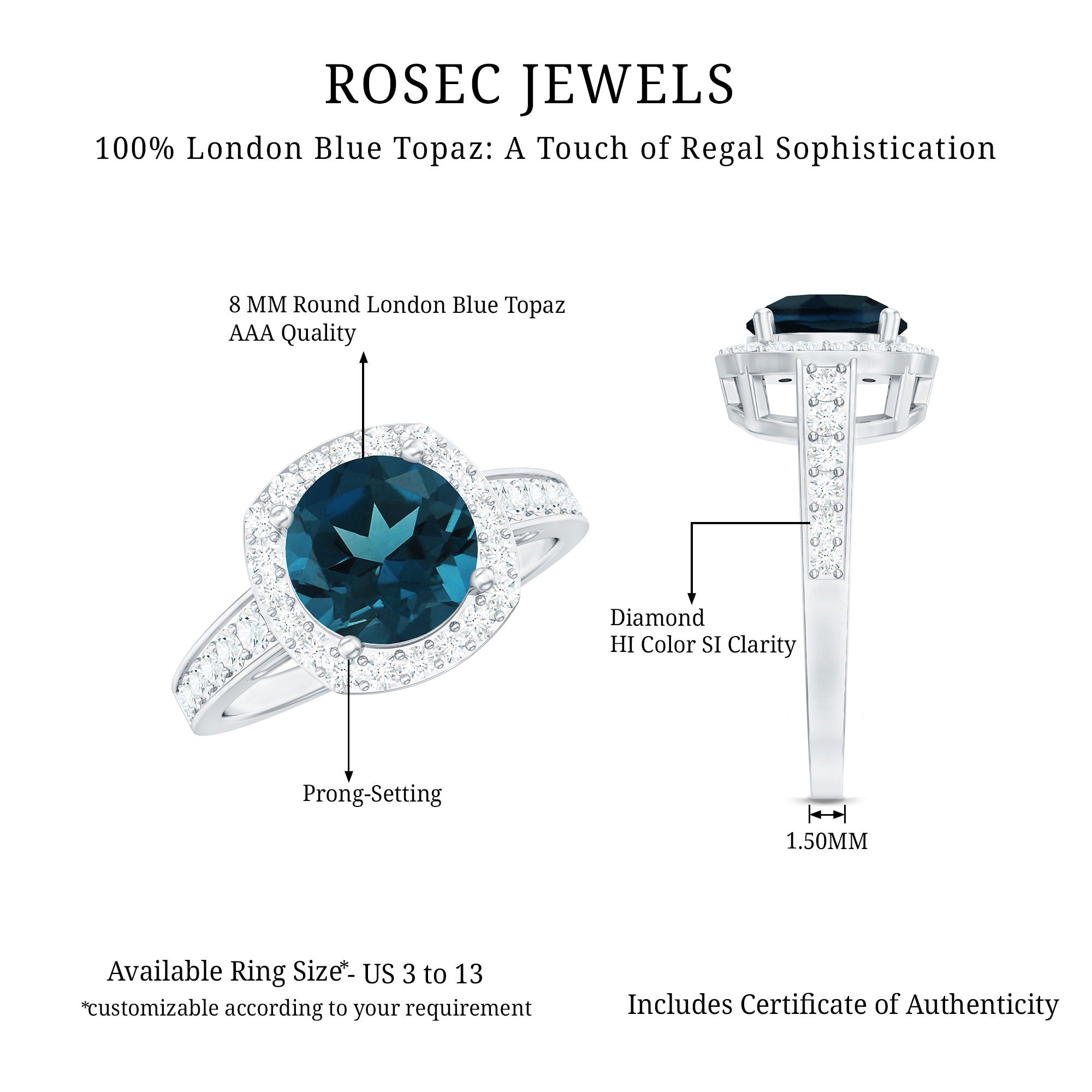 London blue topaz rings are loved for their rich, inky-blue color and elegant glow—making them a standout choice for December birthstone rings and everyday statement jewelry. This collection is built for shopping: use filters to narrow by style (solitaire, halo, vintage), gemstone shape (oval, princess, emerald), and metal to find the perfect ring fast.