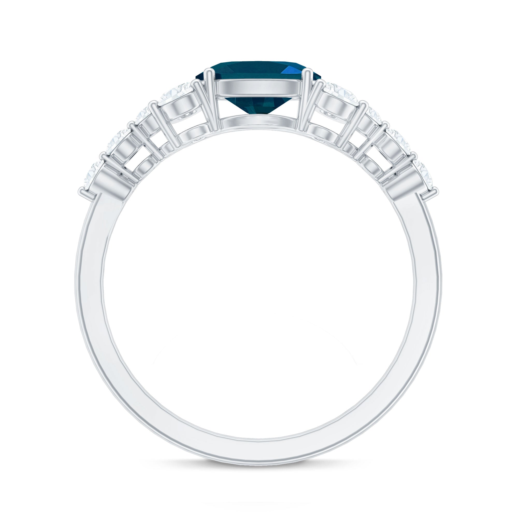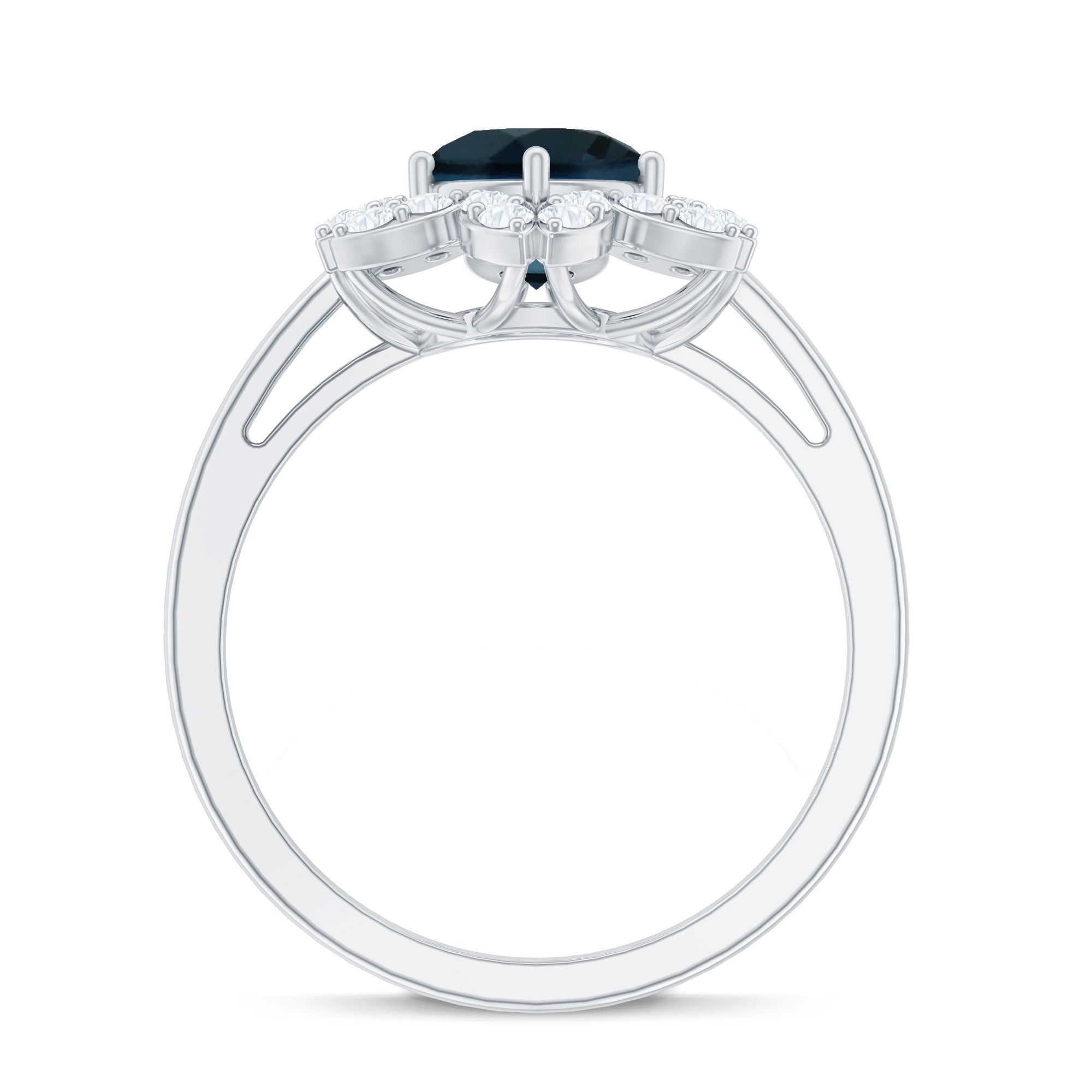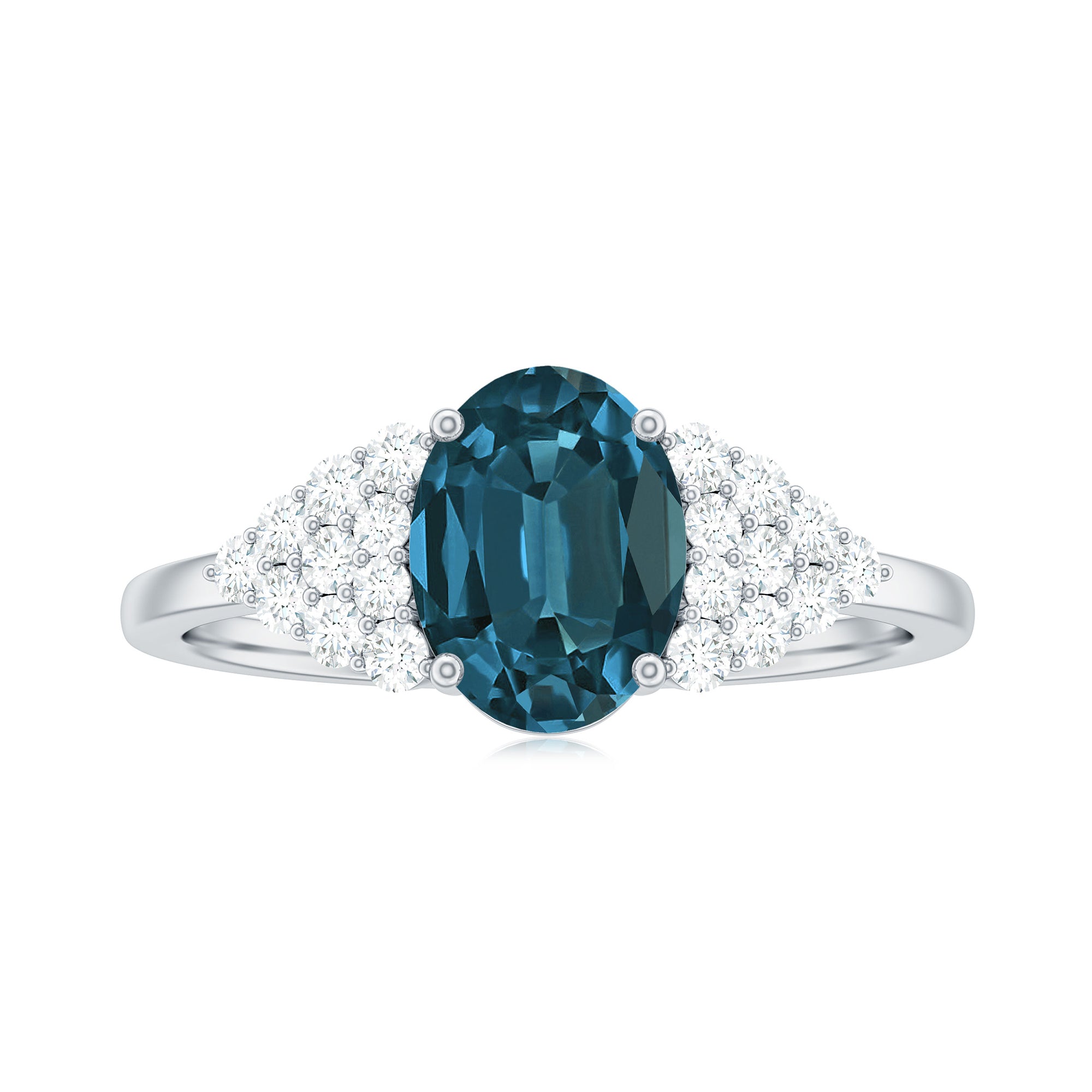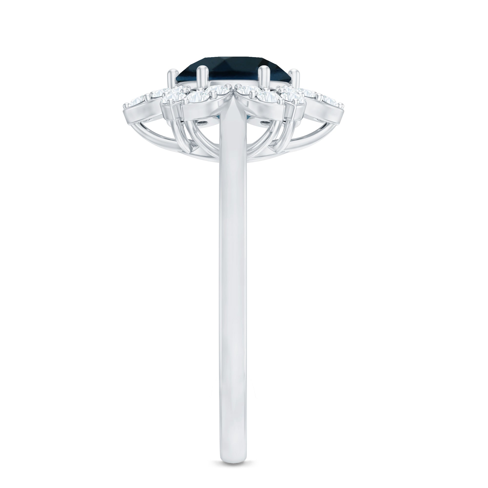 Popularized as the most flashy, flamboyant, and bold ring out there, this Cocktail Ring is adorned with an enormous Center-Stone of London Blue Topaz. It is further accentuated with eye-striking patterns of diamond/moissanite around or as side stones. A London Blue Topaz Cocktail Ring is meant to make a statement with floral and other attention-catching motifs.