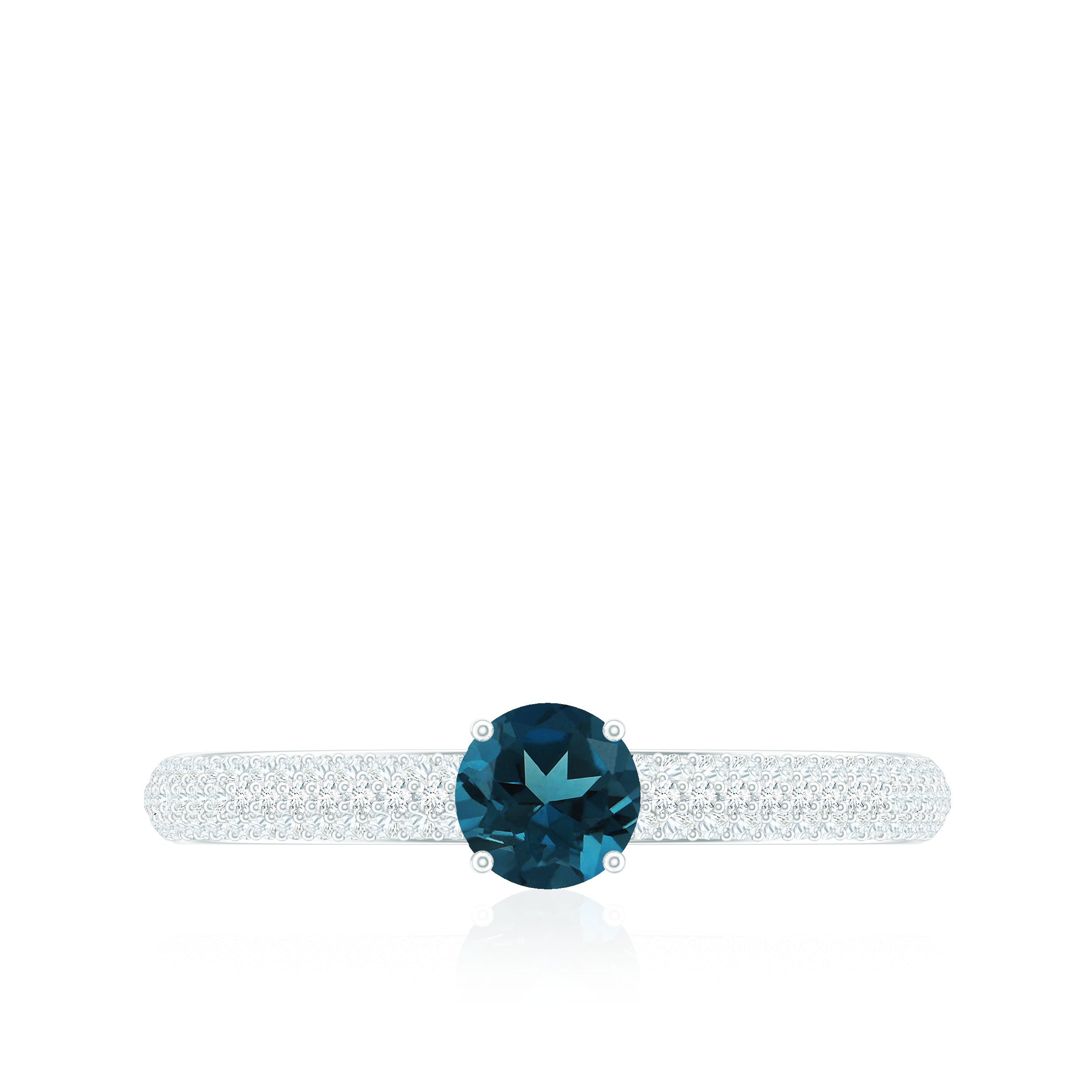 A unique and edgy take to the classic Solitaire style, the Center Stone of London Blue Topaz here is adorned by a shimmering row of Diamond/Moissanite all around. The Halo doesn’t just lend more character to the Blue Topaz Ring, but also deceives your eyes by making your Topaz appear slightly bigger in size. It is the go-to style for those who fancy a London Blue Topaz and Diamond Ring.