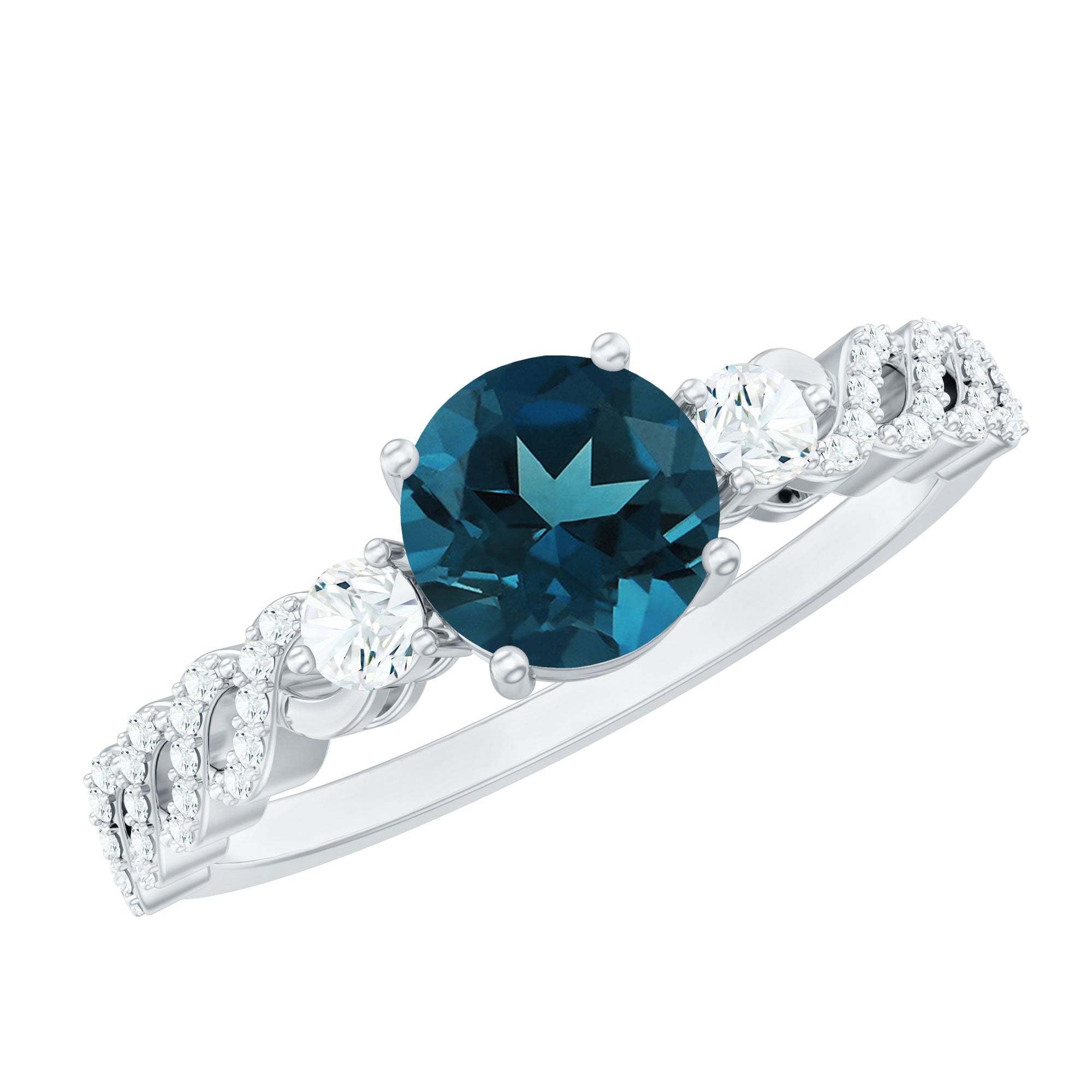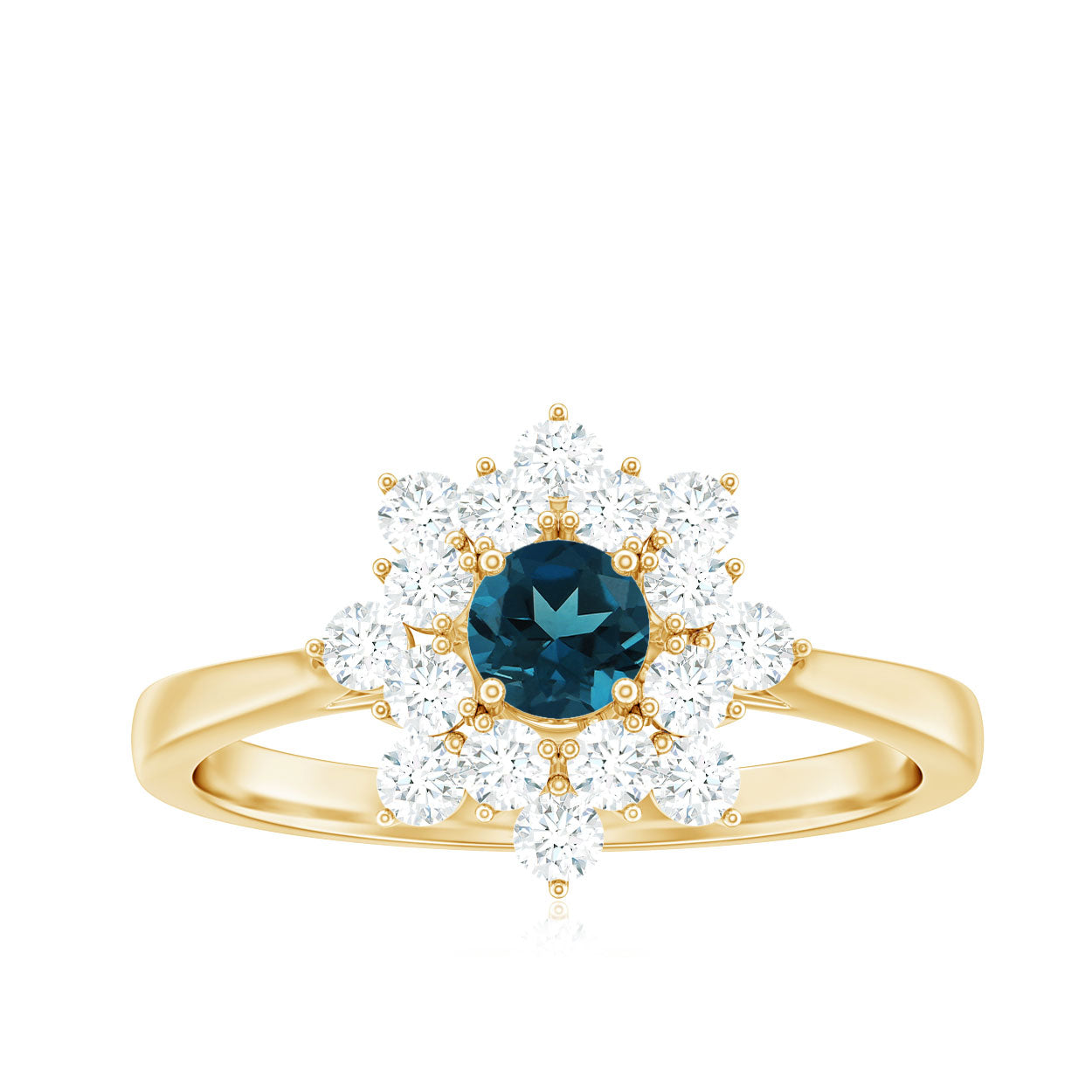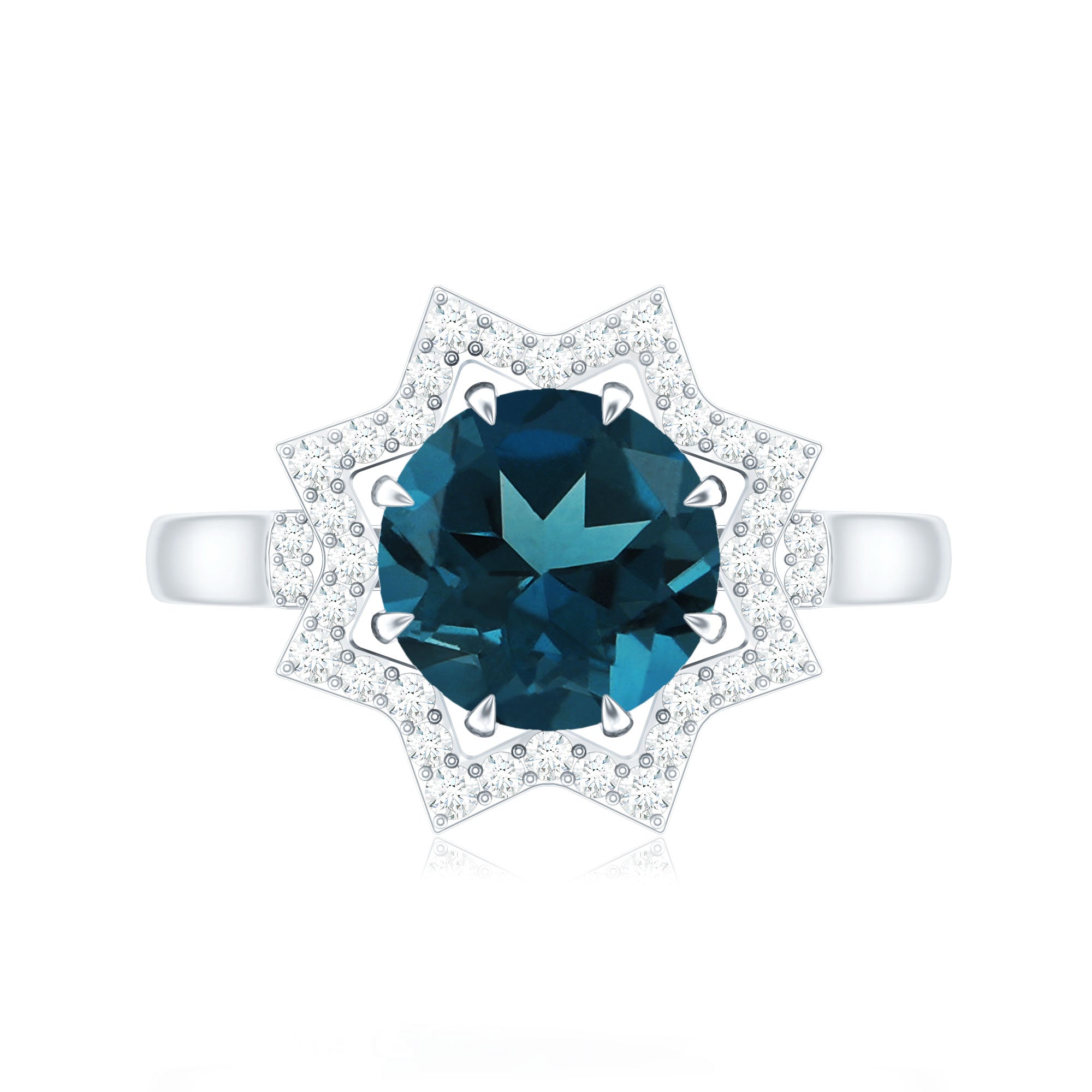 Popularized as the most flashy, flamboyant, and bold ring out there, this Cocktail Ring is adorned with an enormous Center-Stone of London Blue Topaz. It is further accentuated with eye-striking patterns of diamond/moissanite around or as side stones. A London Blue Topaz Cocktail Ring is meant to make a statement with floral and other attention-catching motifs.