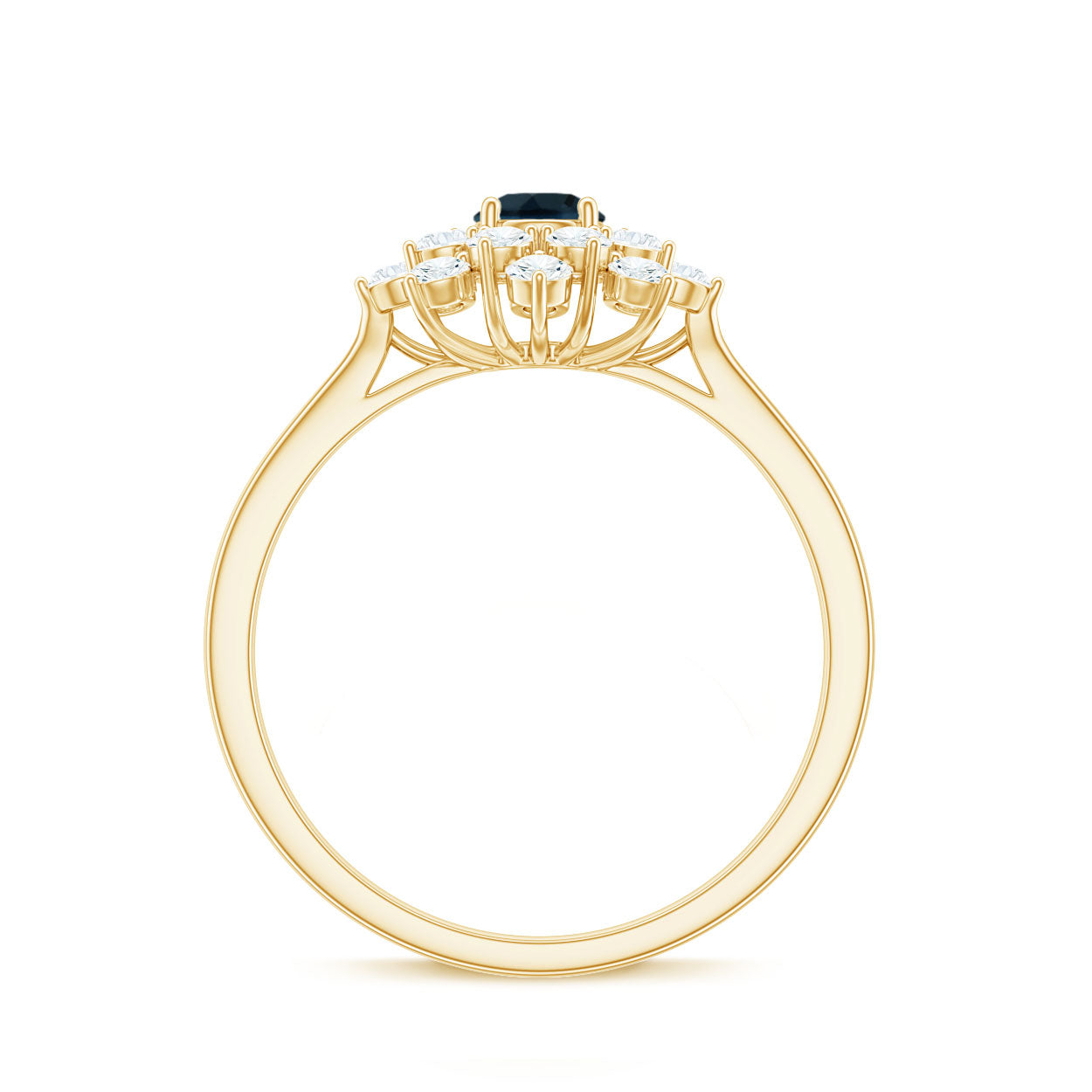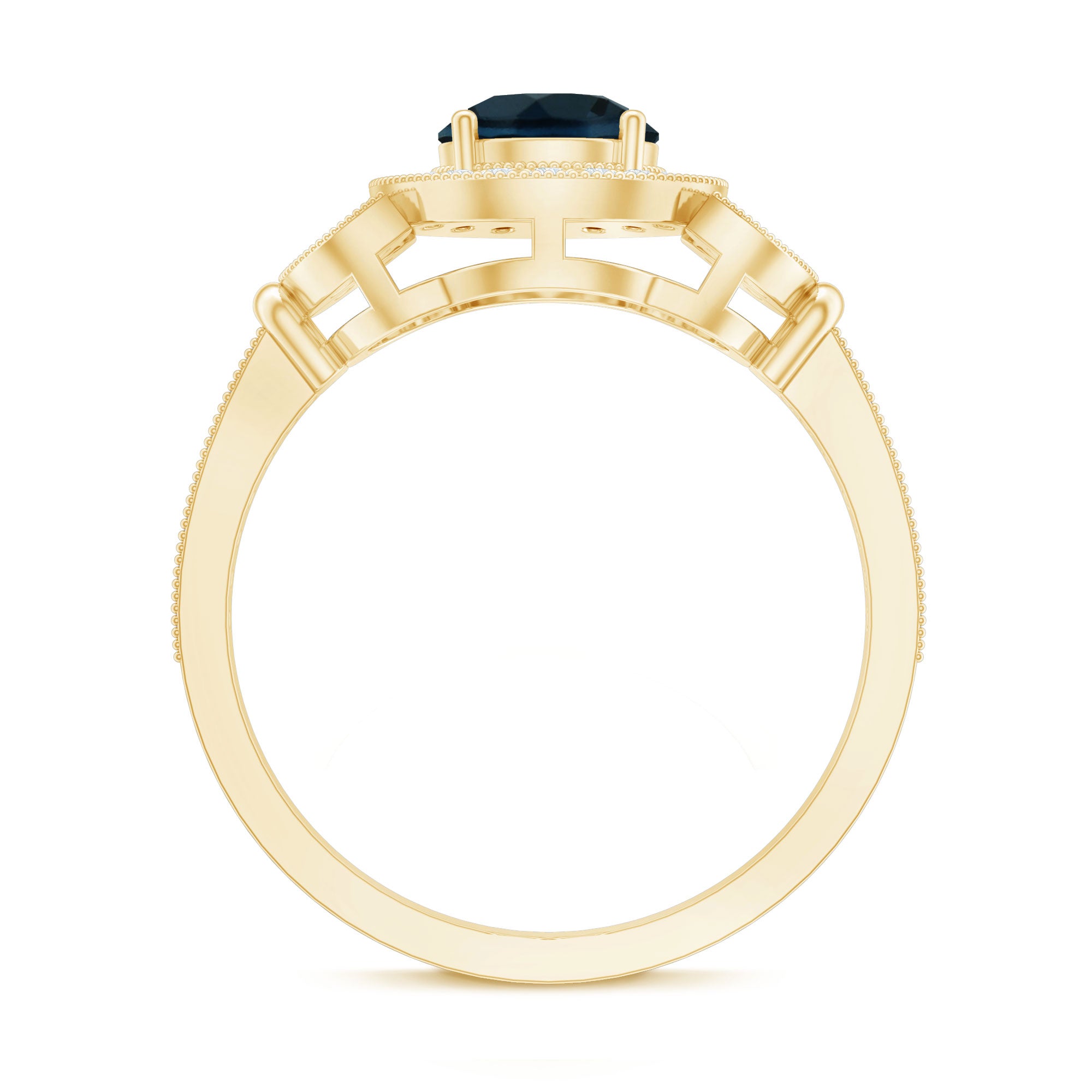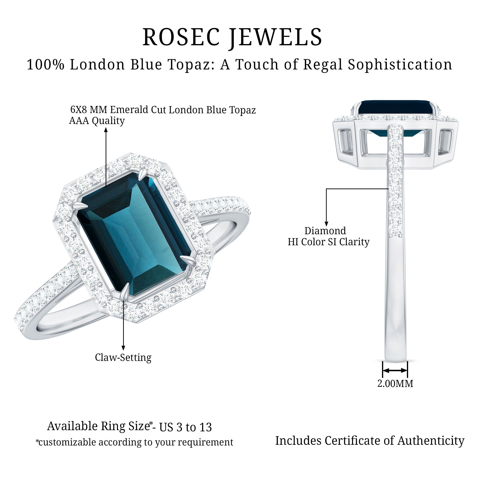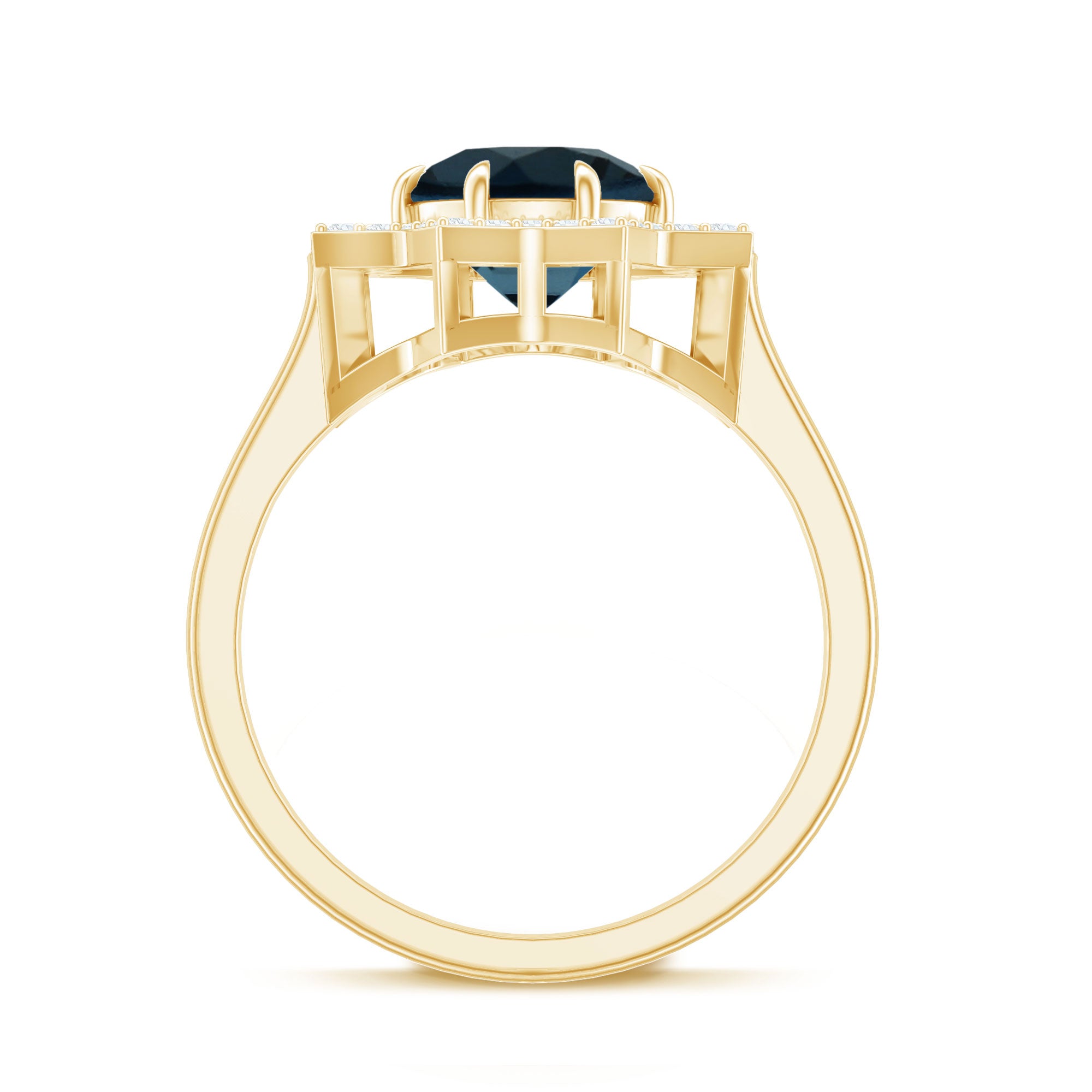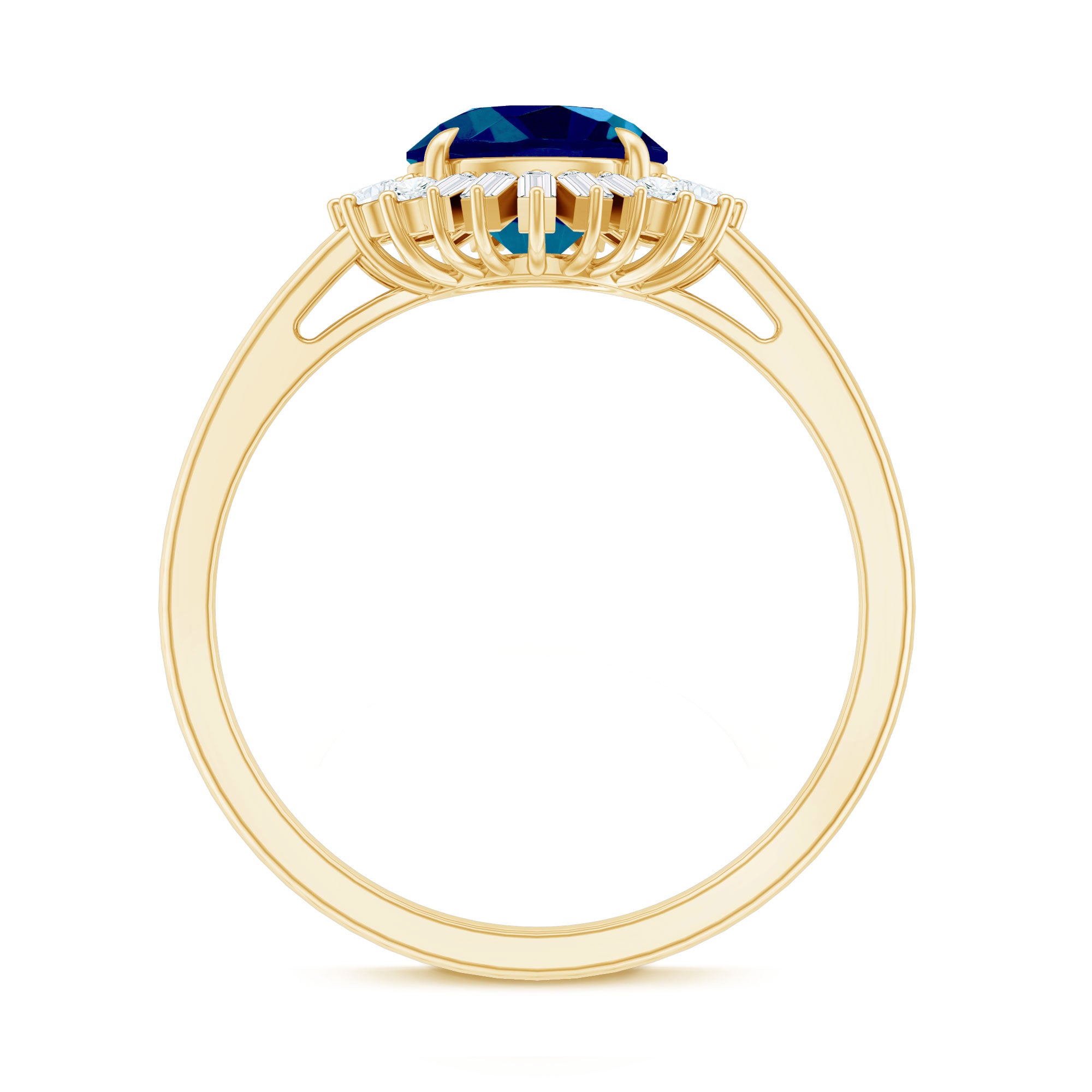 A unique and edgy take to the classic Solitaire style, the Center Stone of London Blue Topaz here is adorned by a shimmering row of Diamond/Moissanite all around. The Halo doesn’t just lend more character to the Blue Topaz Ring, but also deceives your eyes by making your Topaz appear slightly bigger in size. It is the go-to style for those who fancy a London Blue Topaz and Diamond Ring.