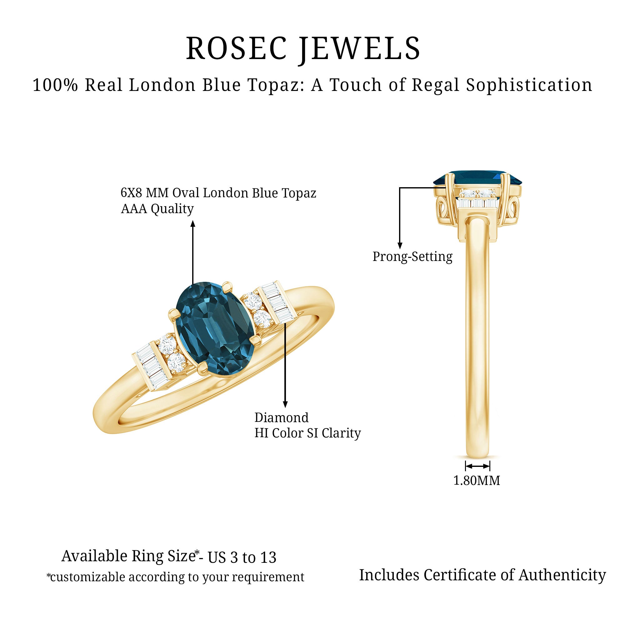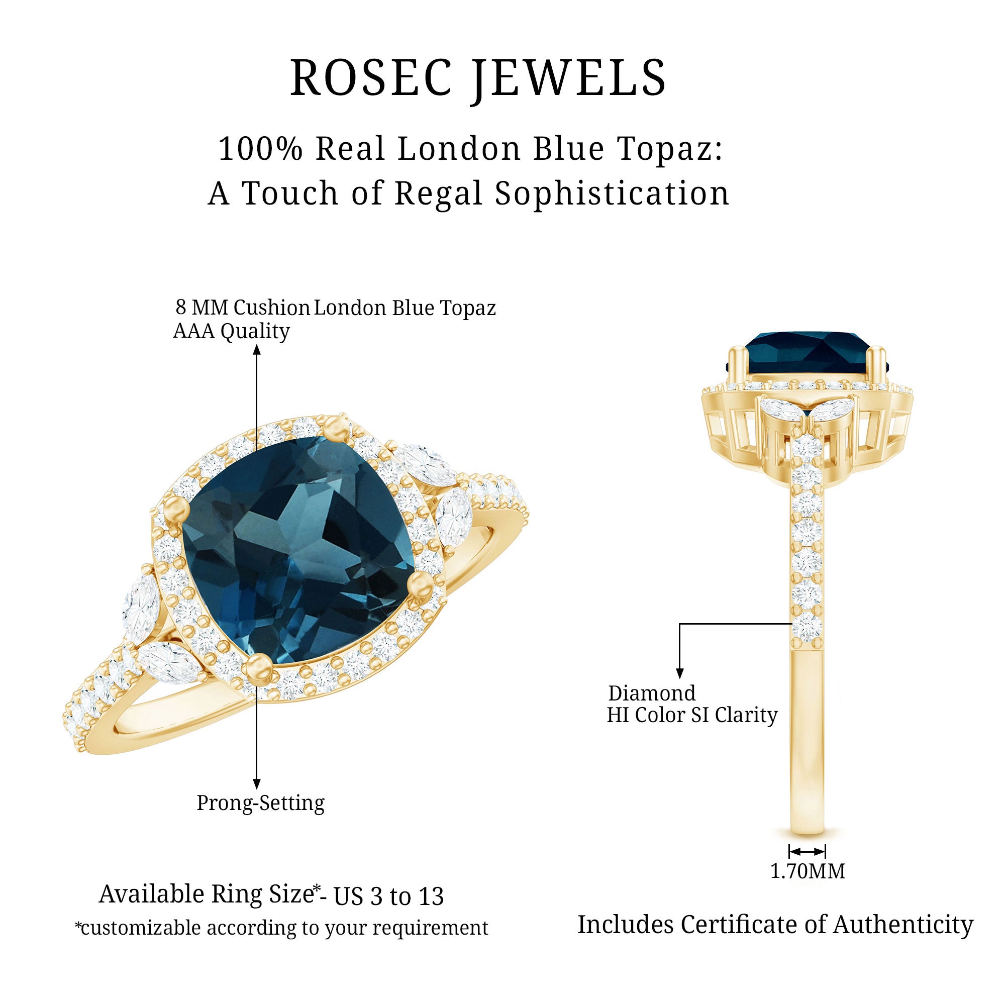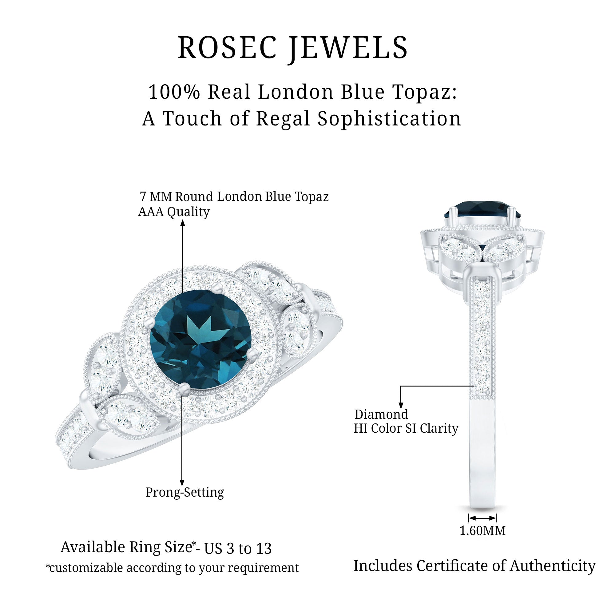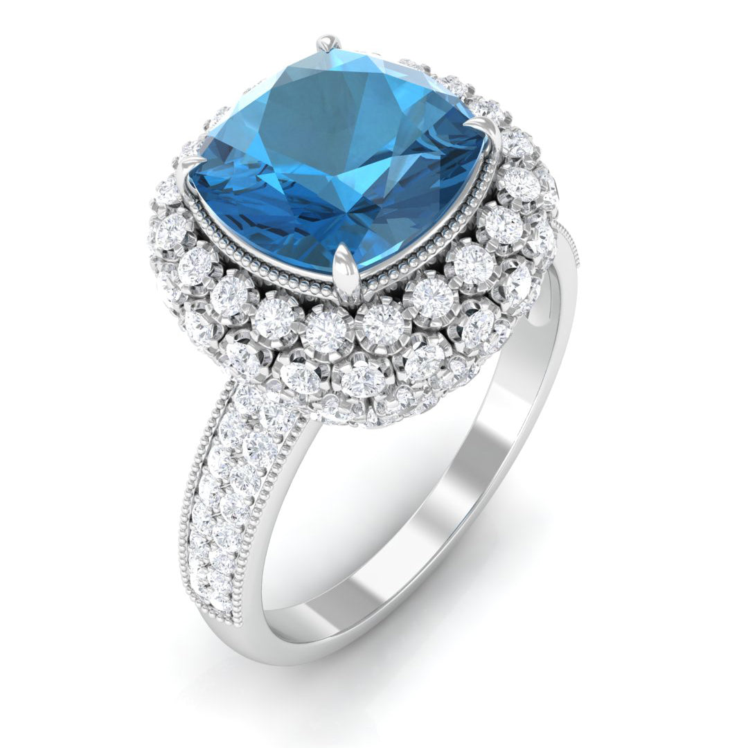 Turning back time, a Vintage London Blue Topaz Ring boasts iconic designs from Edwardian, Victorian, and Art-Deco Eras. It is ornately crafted with Milgrain, filigree, and other retro engravings along with abstract patterns that ooze an old-world vibe. A Vintage-inspired London Blue Topaz Engagement Ring is preferred by those that like an emblem of love that connects with a historic story.