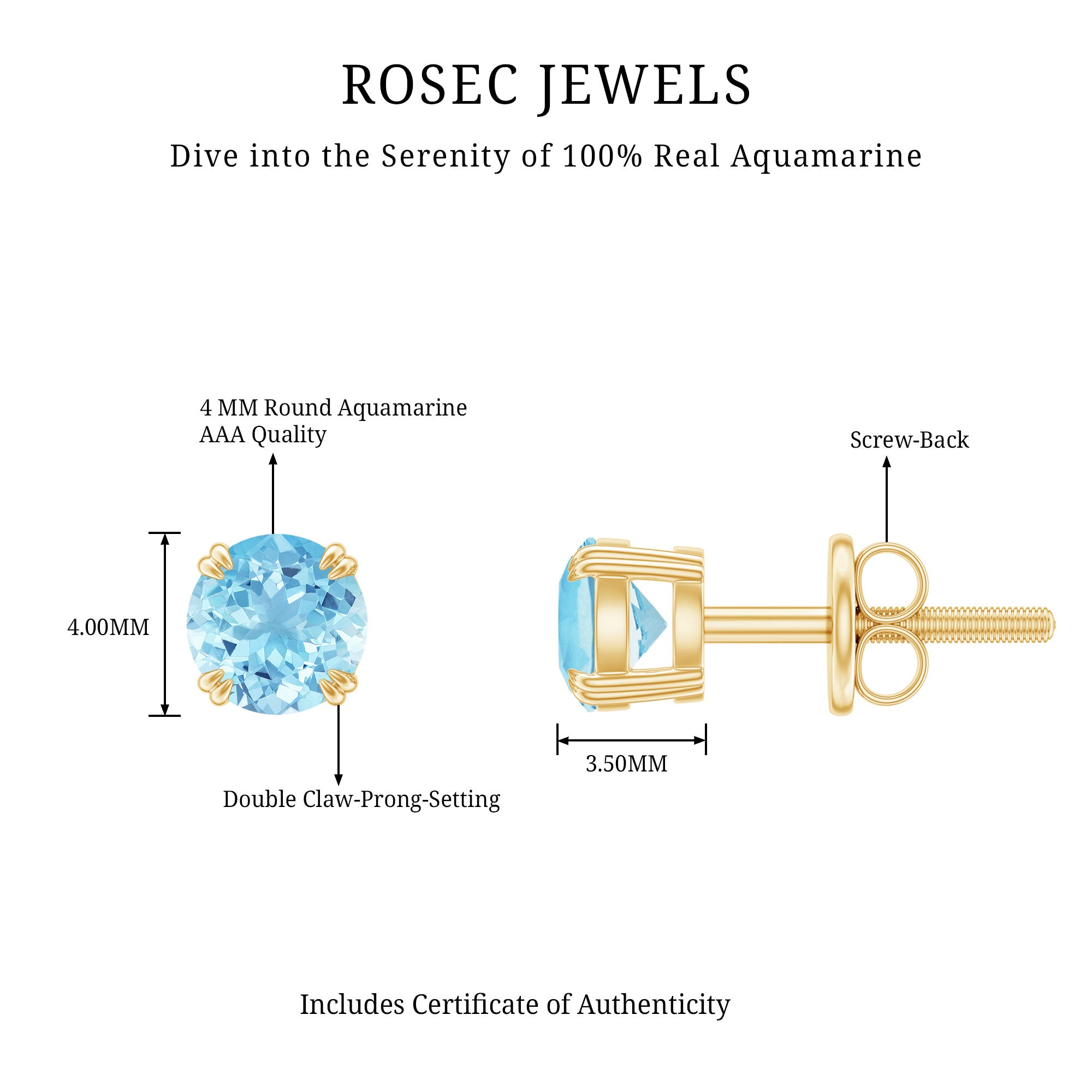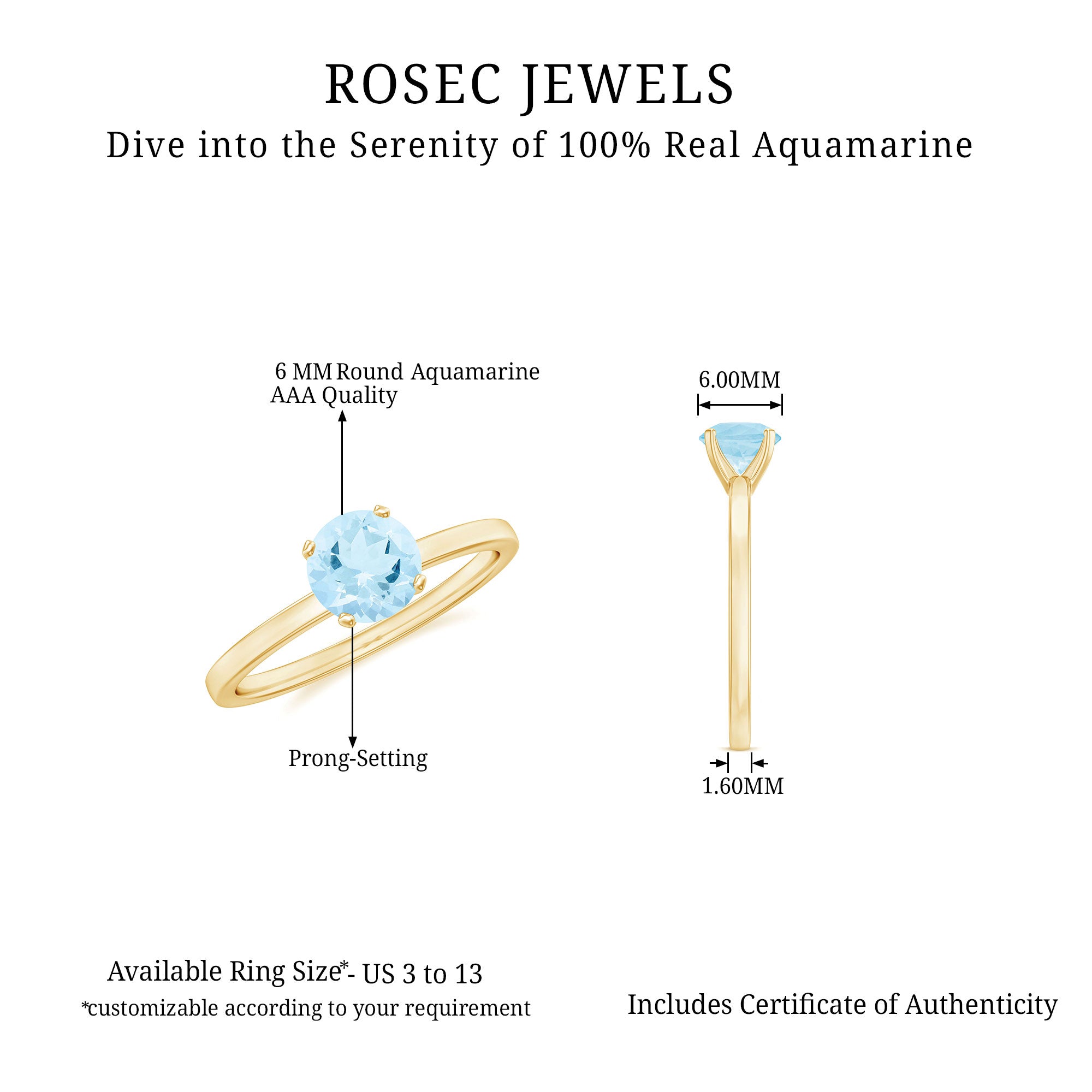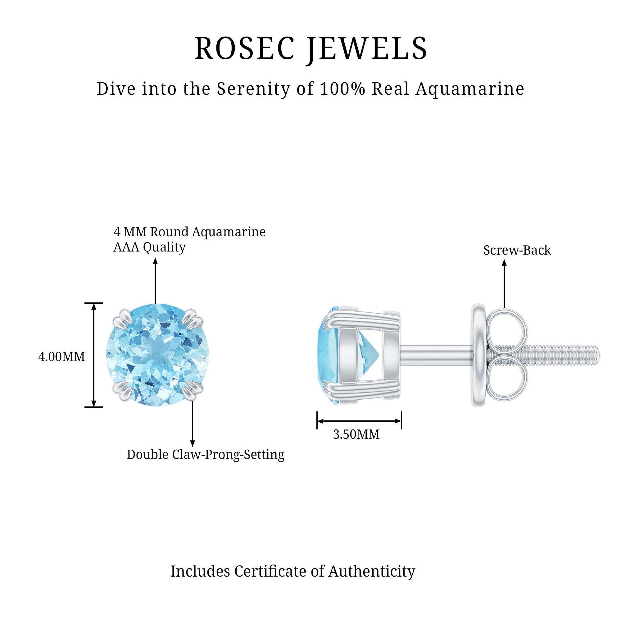 - Carat: The carat weight of Aquamarine jewelry typically ranges between 0.25 to 4 CT.