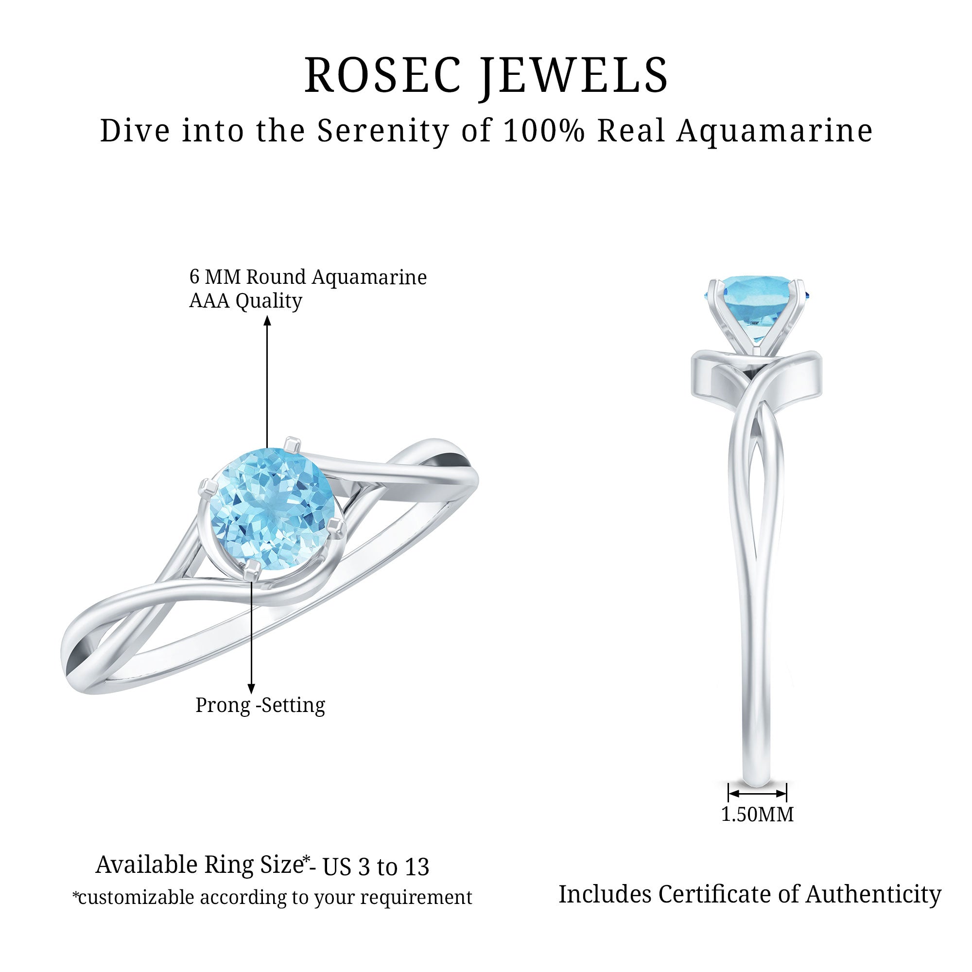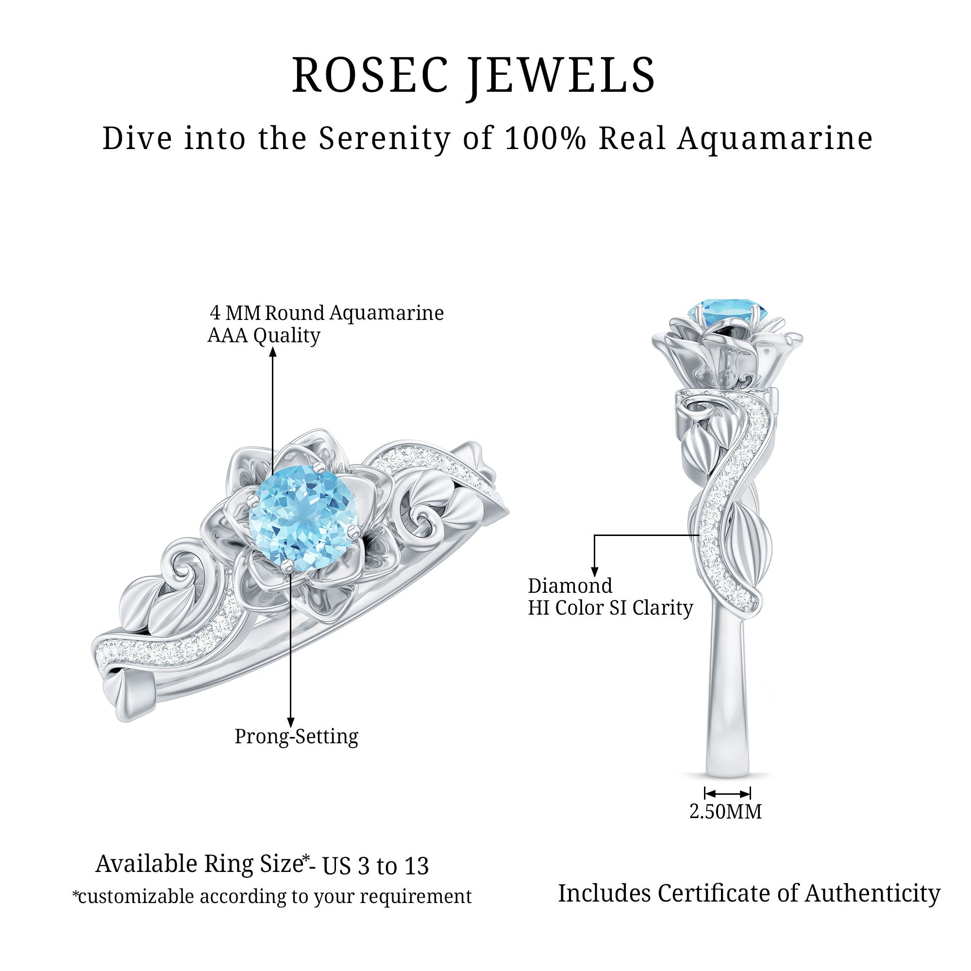 - Rings: The Aquamarine rings in our collection range from a classic Solitaire Ring, Elaborate Engagement Rings with side stones, Romantic Promise Rings, Captivating Cluster Rings, Serene Floral Rings to Vintage Bridal Ring Sets.