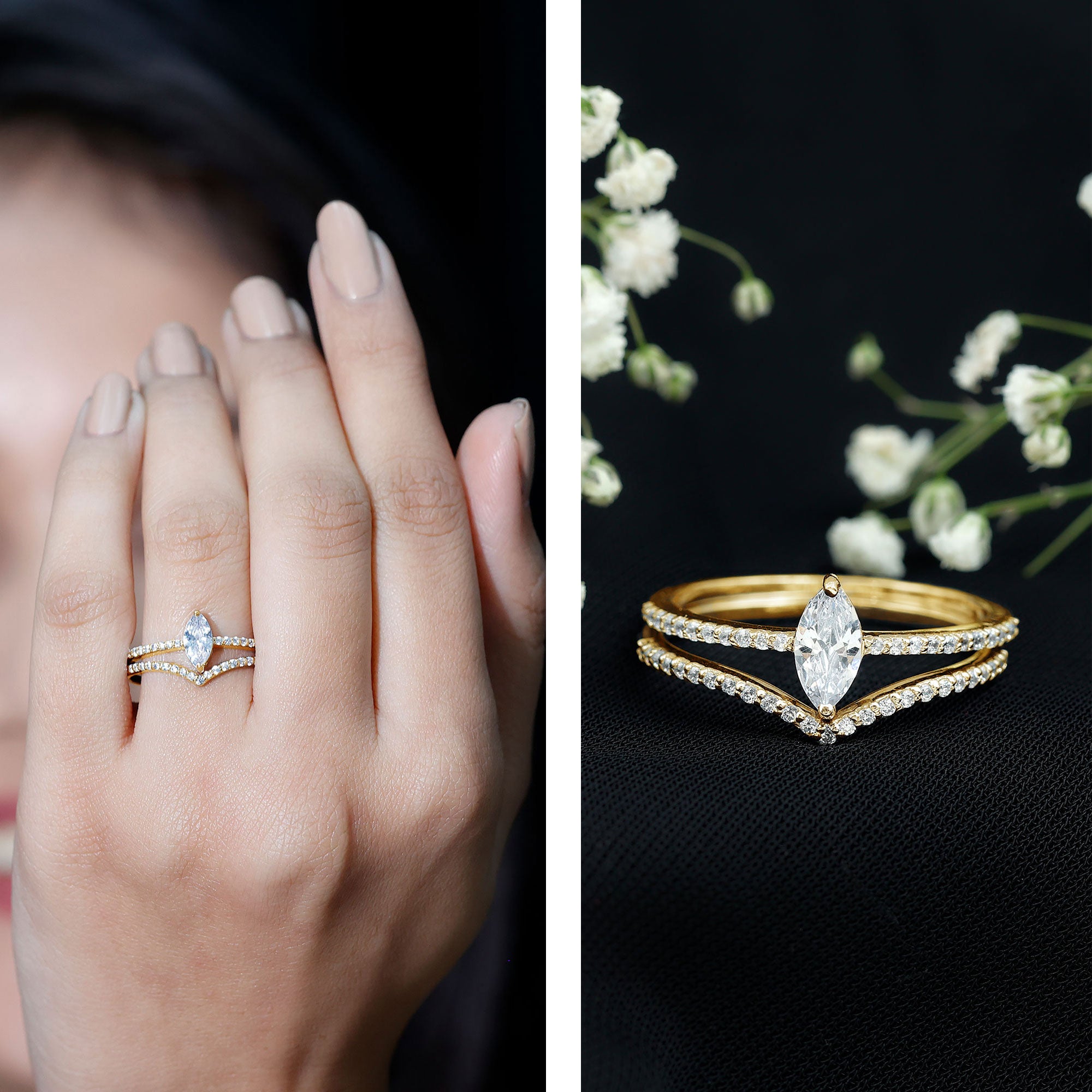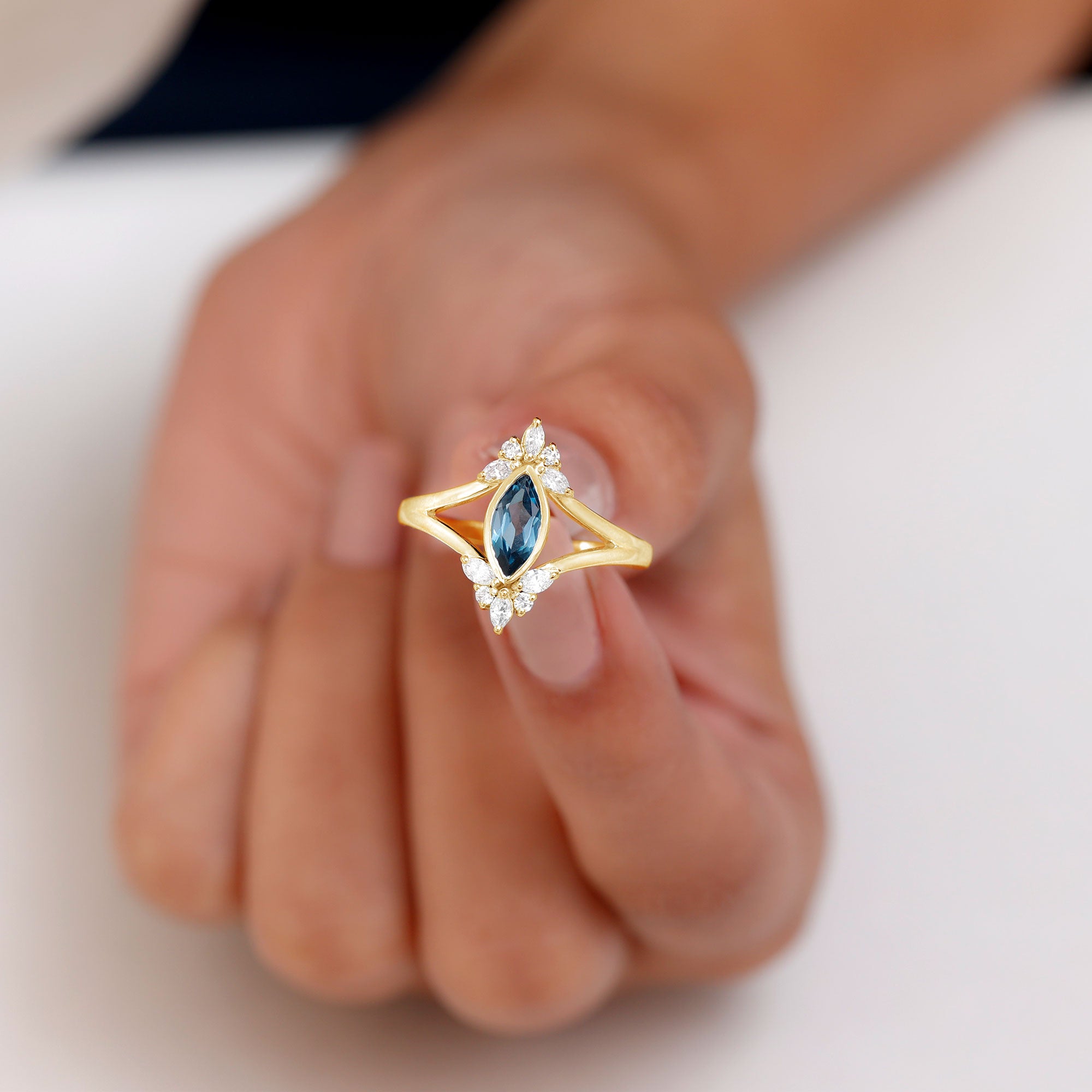 Marquise gemstone rings offer an elongated look to the fingers, with their slimming and lengthening effect. Whether you opt it for a shorter or big finger, they complement all hand types beautifully.