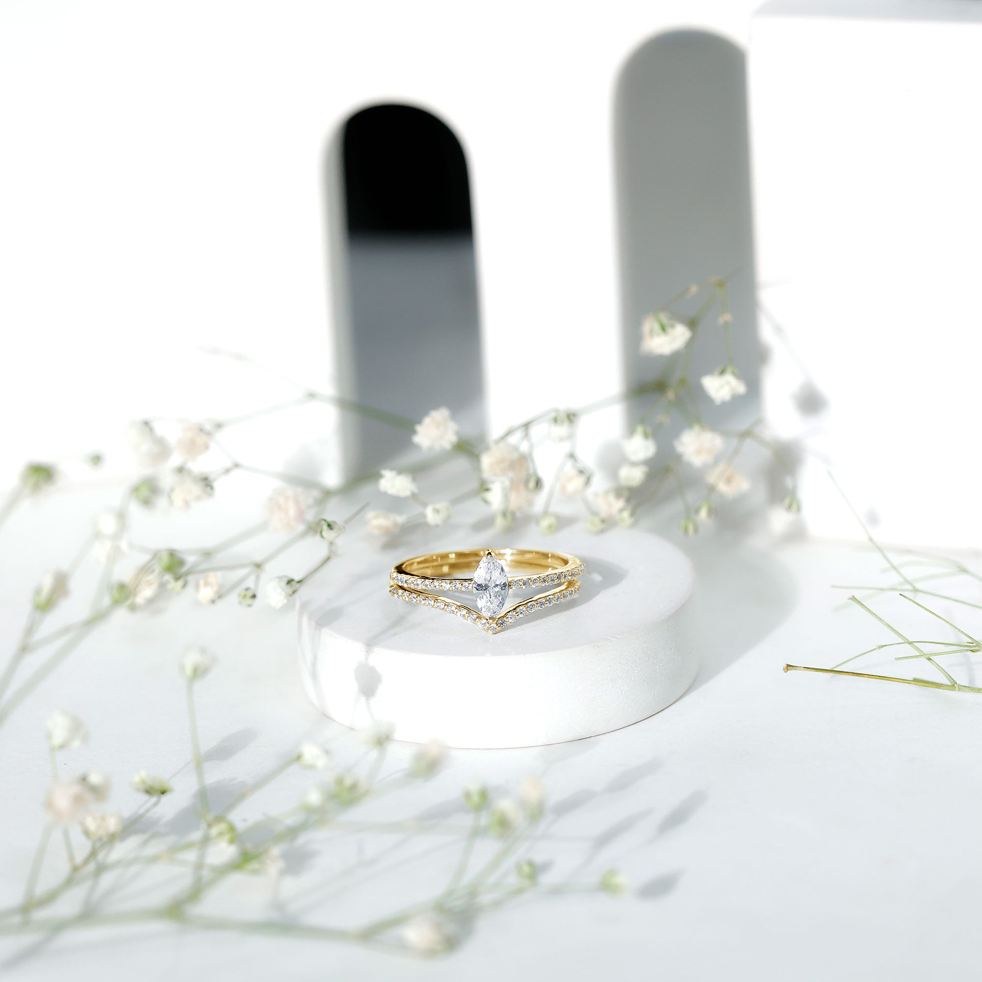 What ring can pair well with a marquise-cut engagement ring?