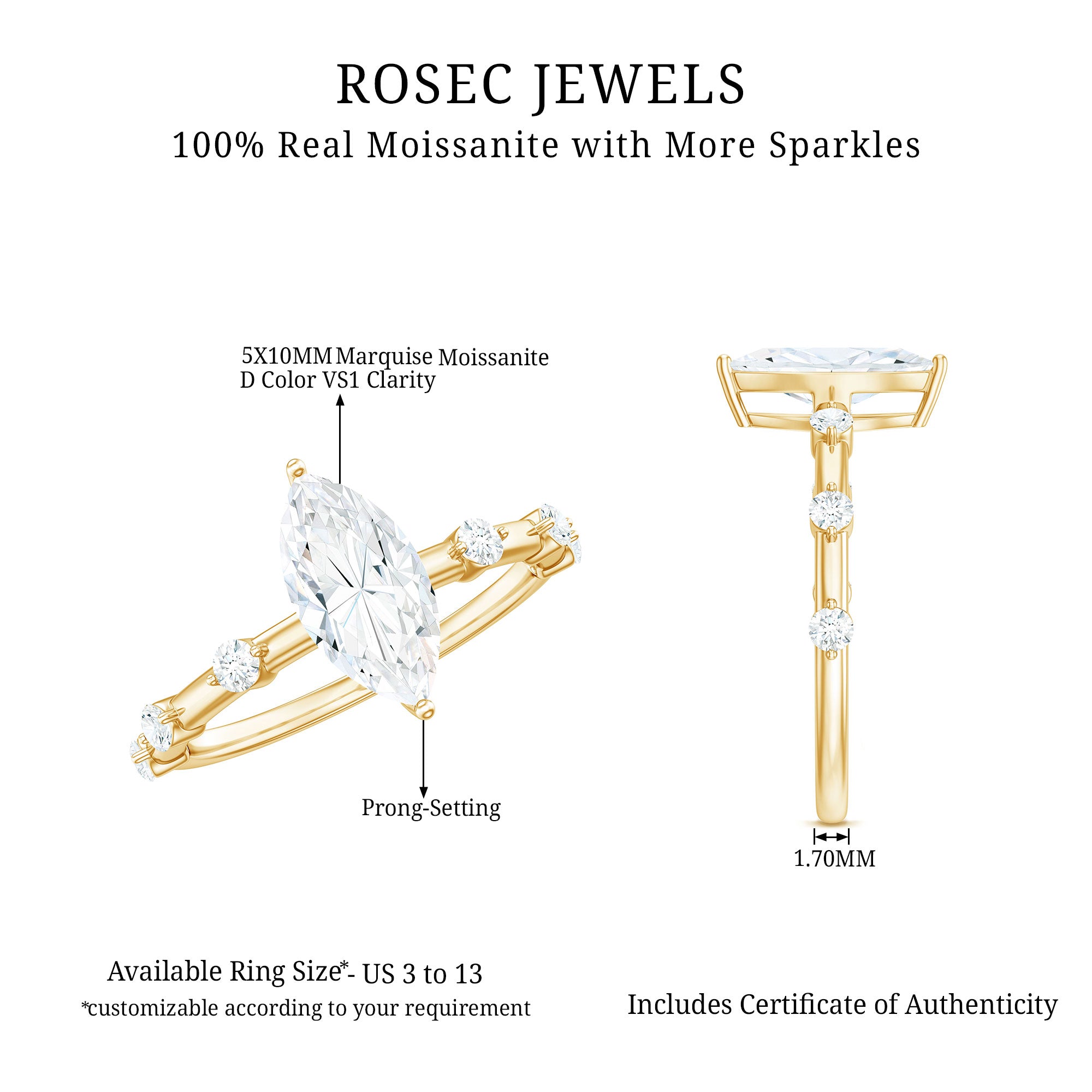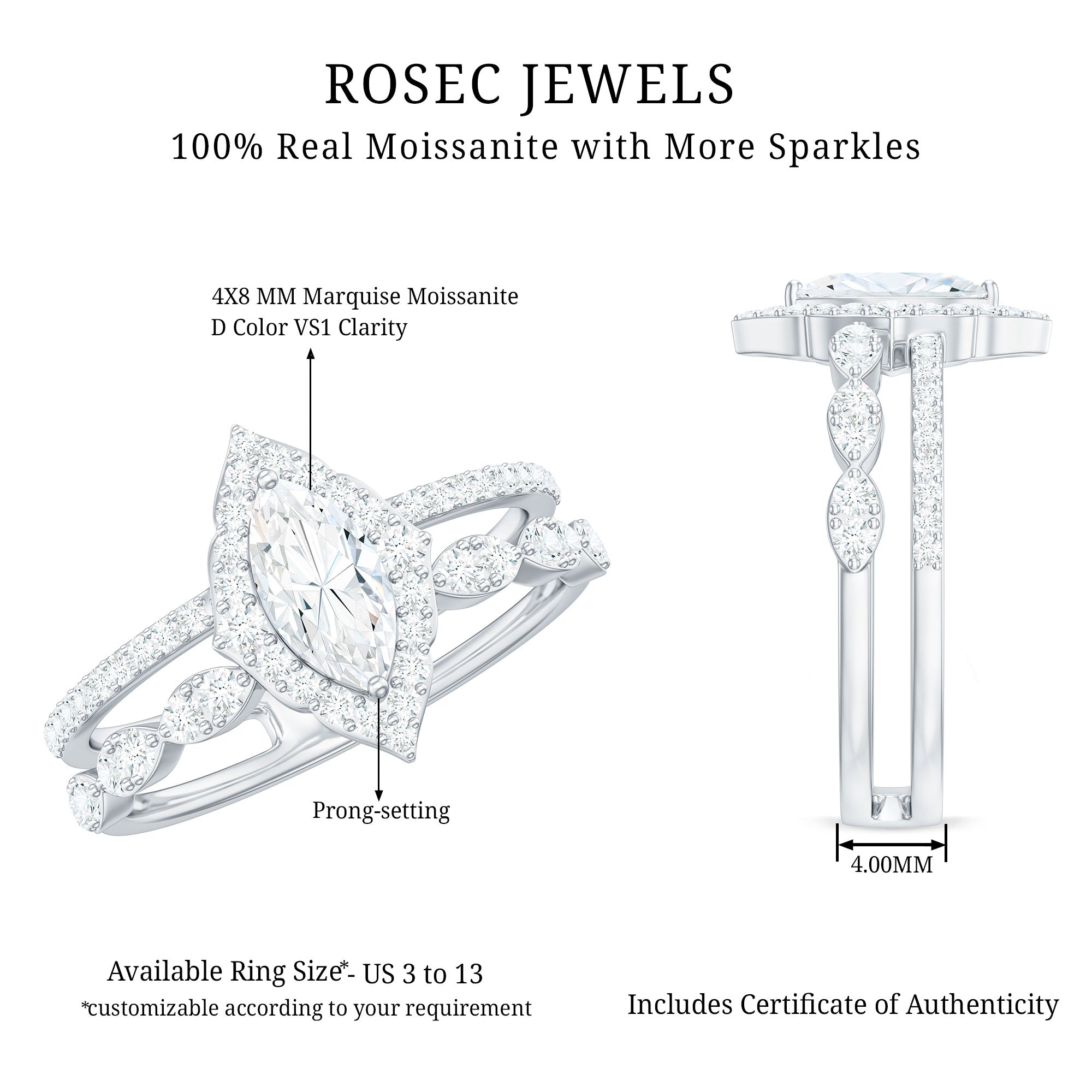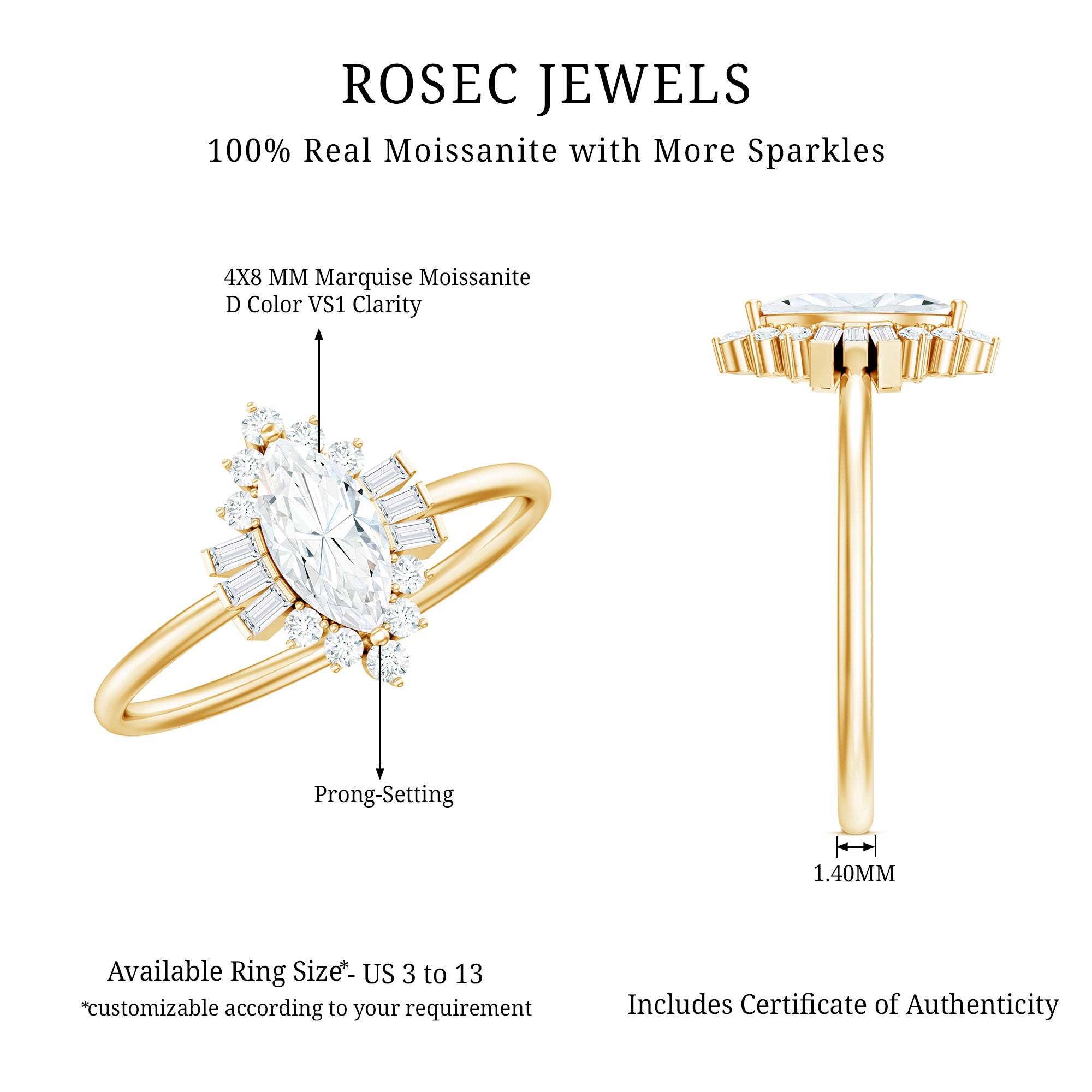 Like every other gemstone engagement ring, 4C’s (Cut, clarity, carat weight and color) should be evaluated before buying any marquise gemstone engagement ring.