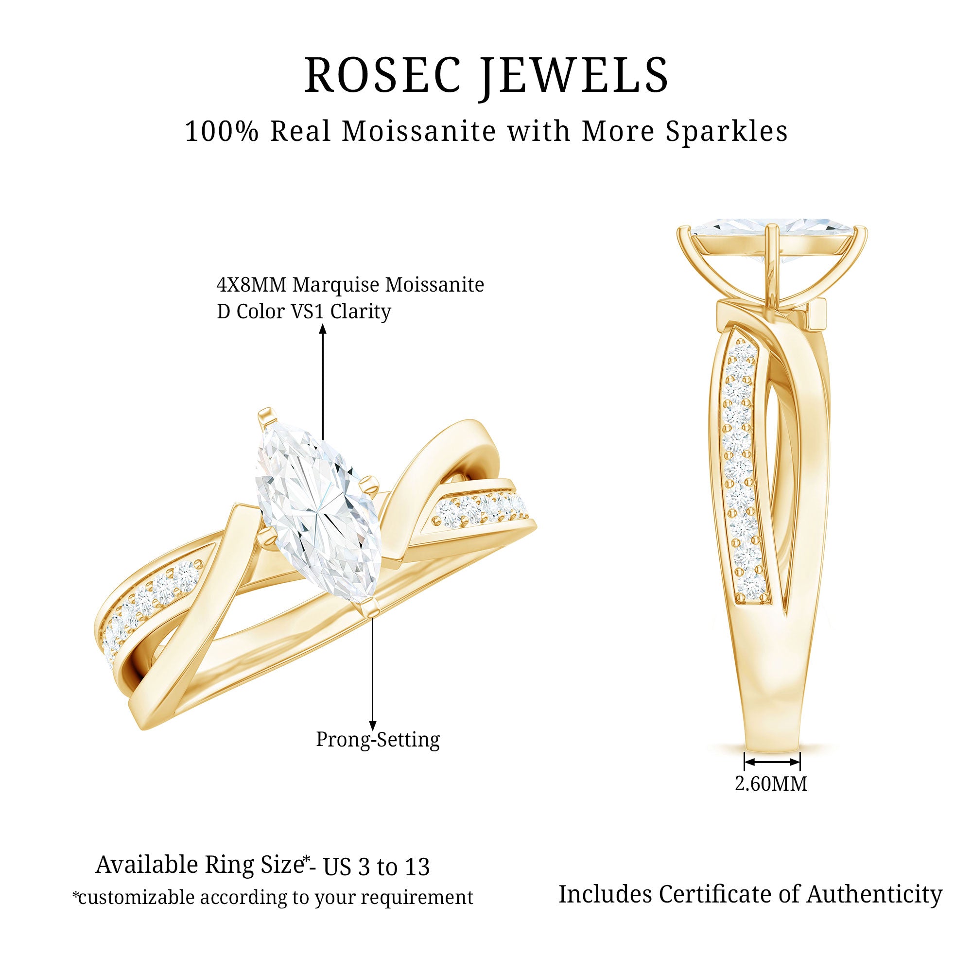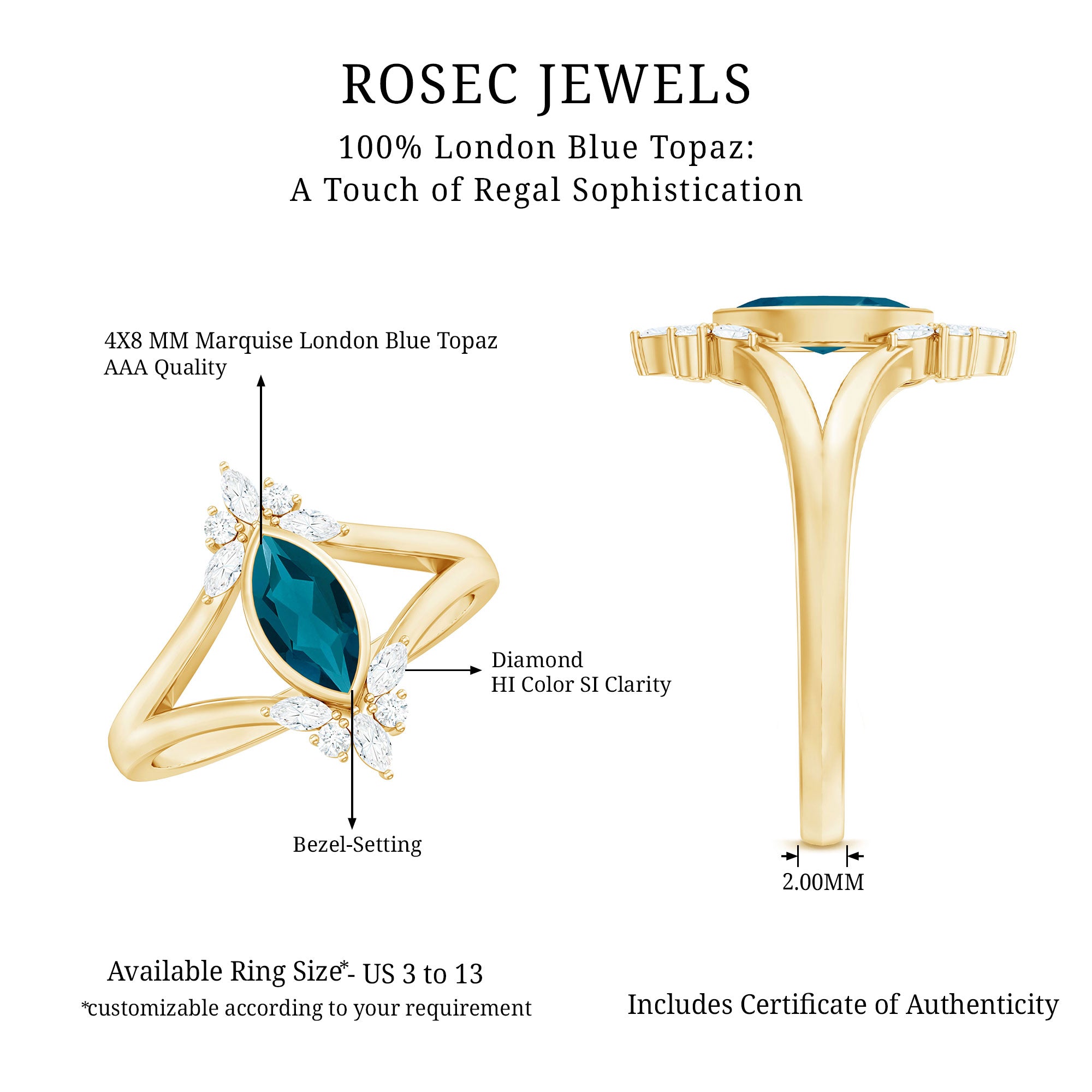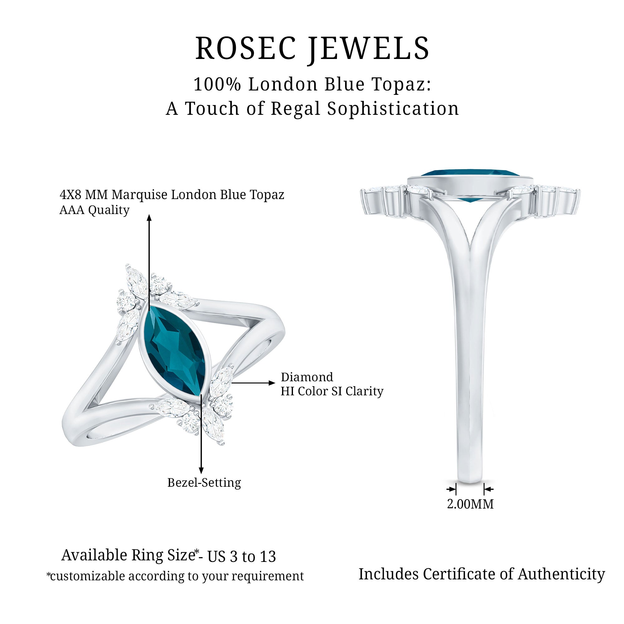 Like every other gemstone engagement ring, 4C’s (Cut, clarity, carat weight and color) should be evaluated before buying any marquise gemstone engagement ring.