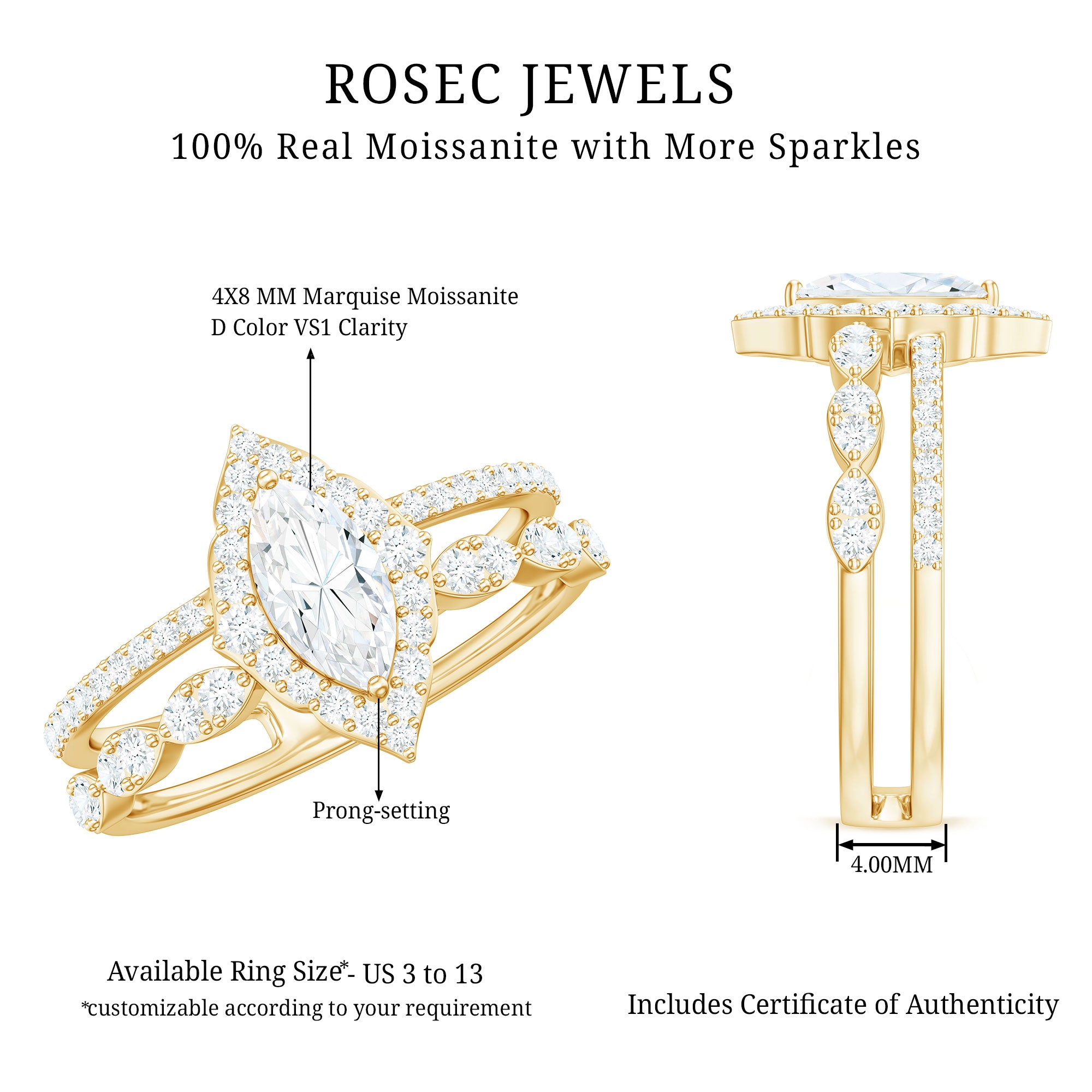 Choose a trusted jeweler with proven expertise and a wide catalogue of designs. Ensure they provide authentication certificates for both the gemstones and the metals used in your marquise halo engagement ring.