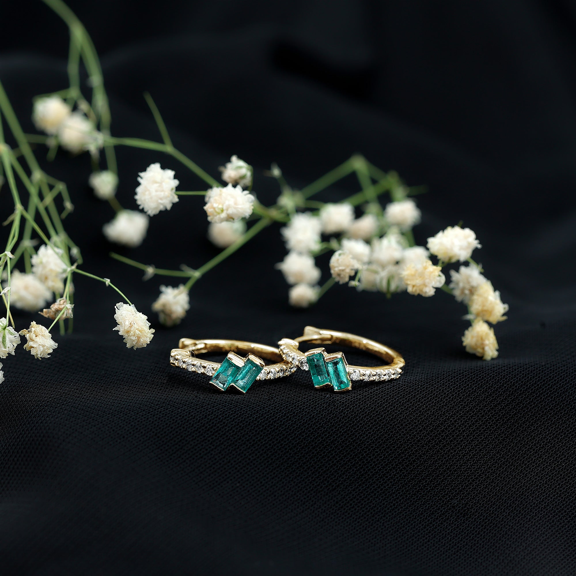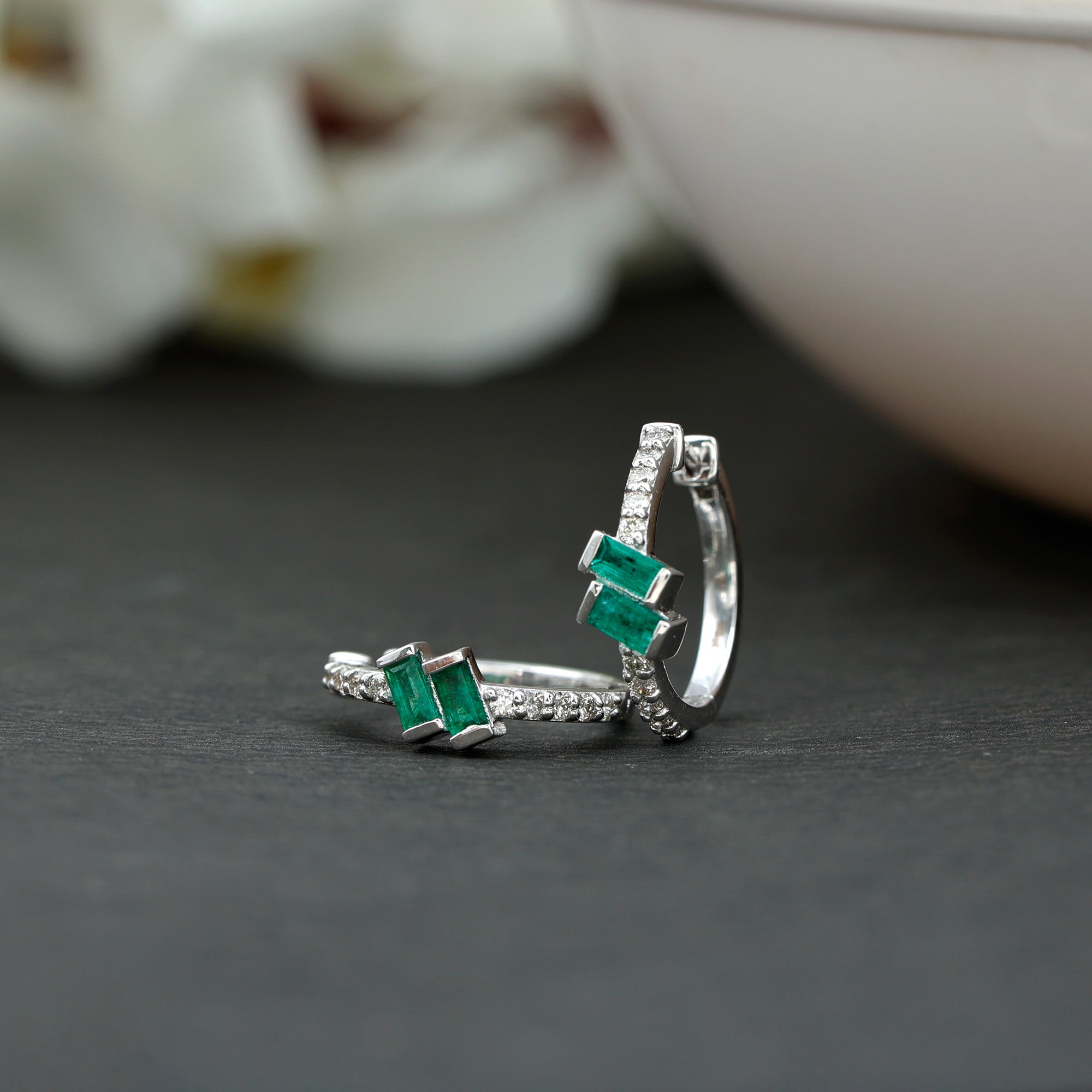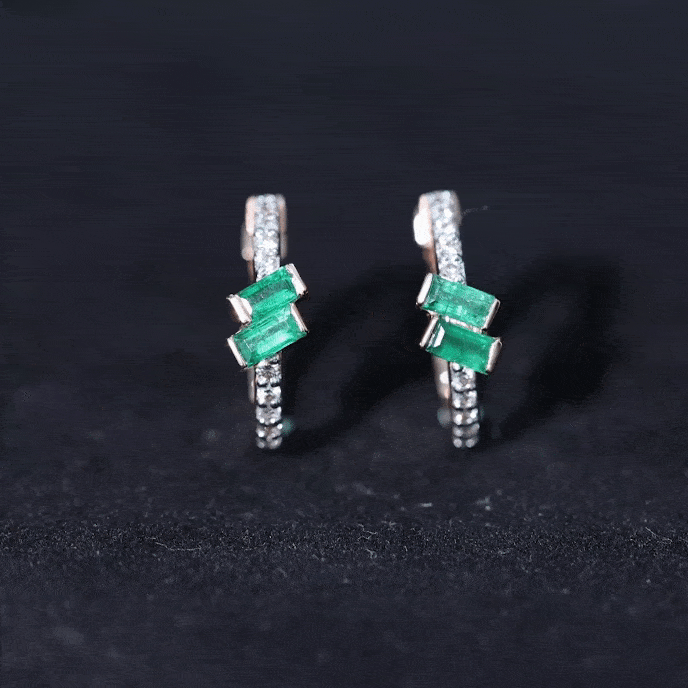Emerald earrings are enchanting jewelry that have been valued for their rich green beauty for centuries. Our exquisite collection of emerald earrings ranges from sophisticated solitaire stud earrings, hoop drop earrings, vintage emerald earrings, and stunning two-stone emerald studs. These are versatile option, each design of emerald jewelry can be effortlessly adorn on special occasions such as anniversaries, weddings, Valentine's Day, birthdays, and cocktail parties.