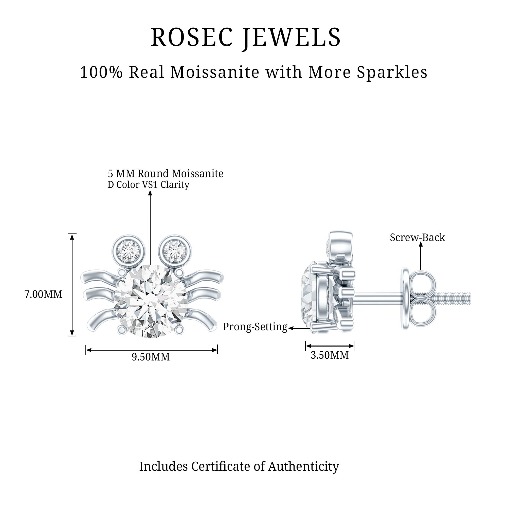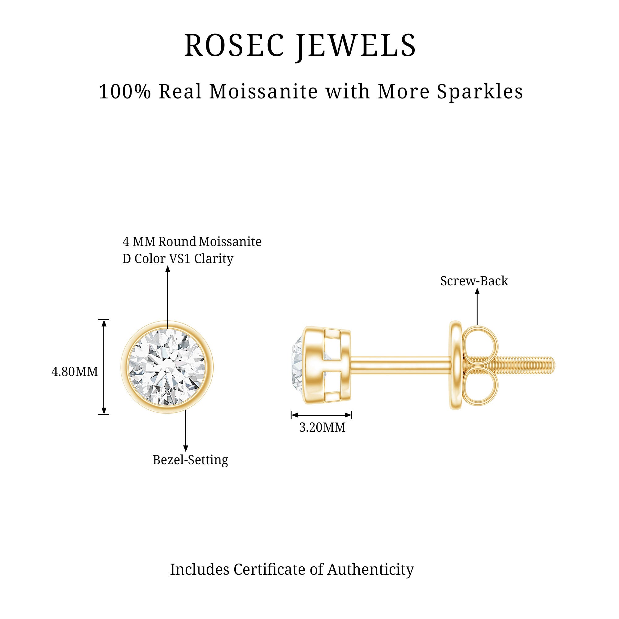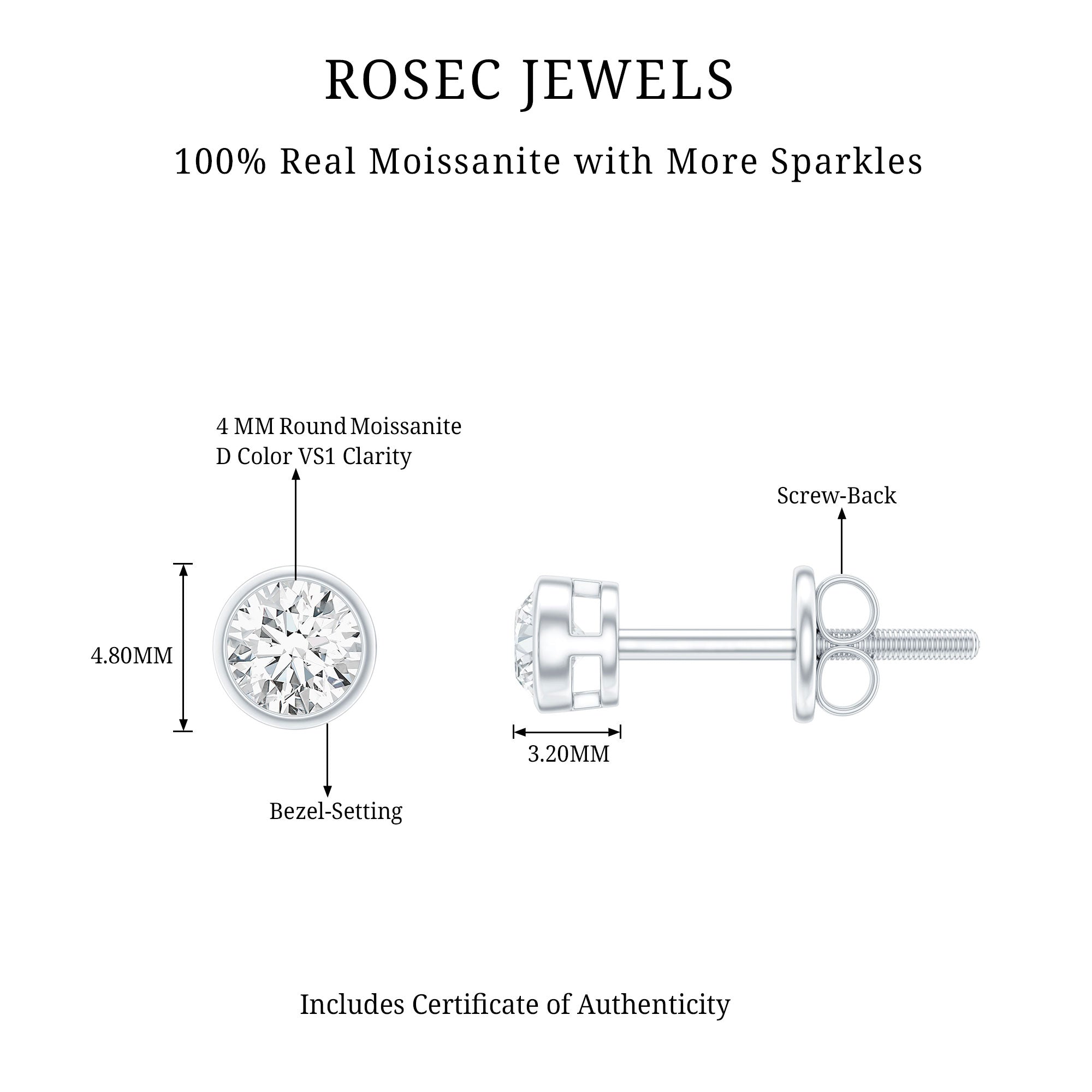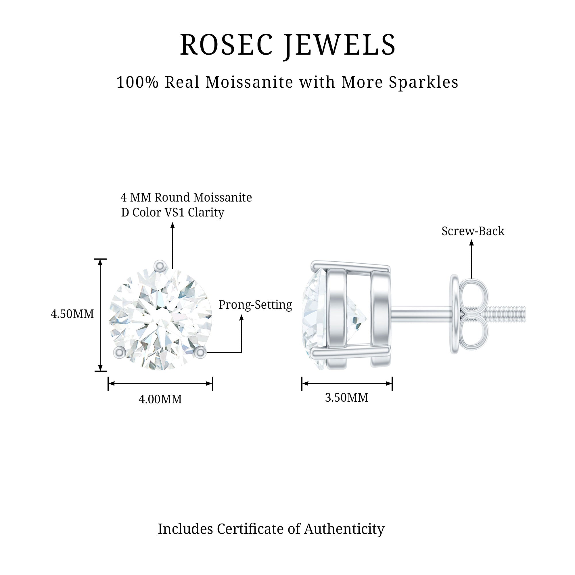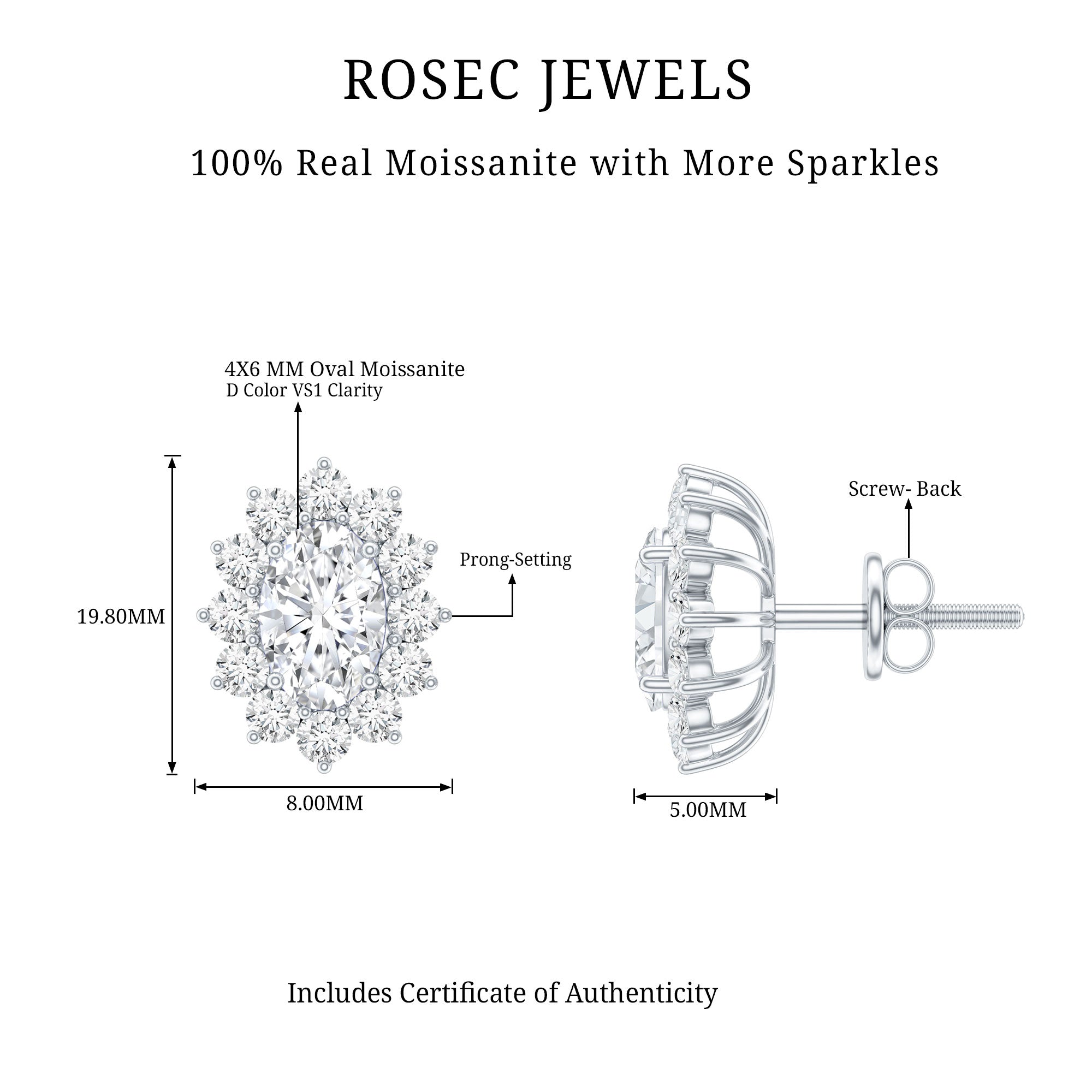Our D color VS1 quality moissanite gems are of the highest quality, carefully selected for their amazing clarity and brilliance. Each pair of our high-quality moissanite earrings is crafted to ensure maximum fire and sparkle, providing a stunning look like the beauty of diamonds, but at a fraction of the cost.