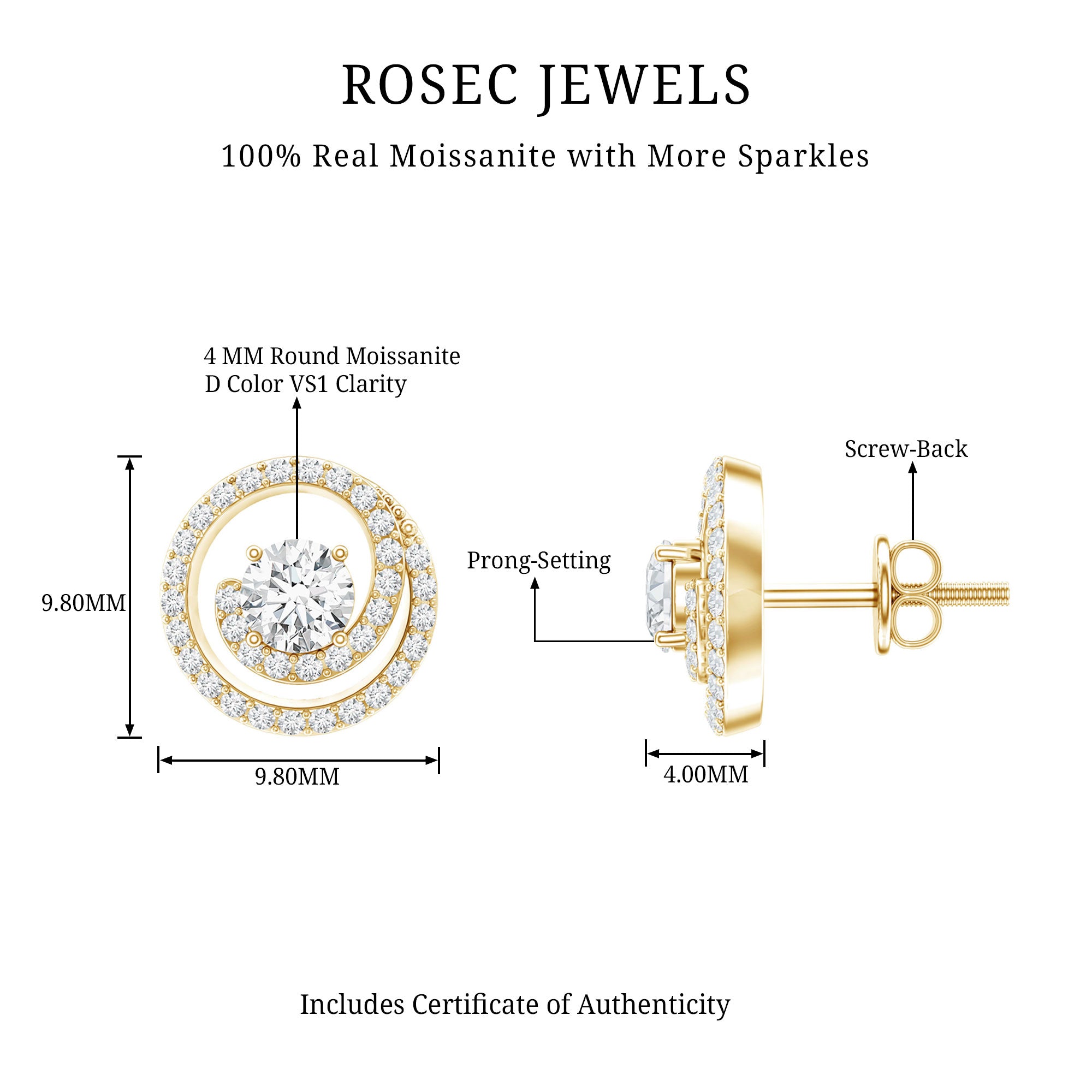 Excited to purchase a stunning pair of moissanite stud earrings? Wait, we’ve got many styles of moissanite diamond earrings. Available in a wide variety of hoops, studs, or drop earrings are perfect to complement your attire, allowing you to look fabulous and stand apart from the crowd.