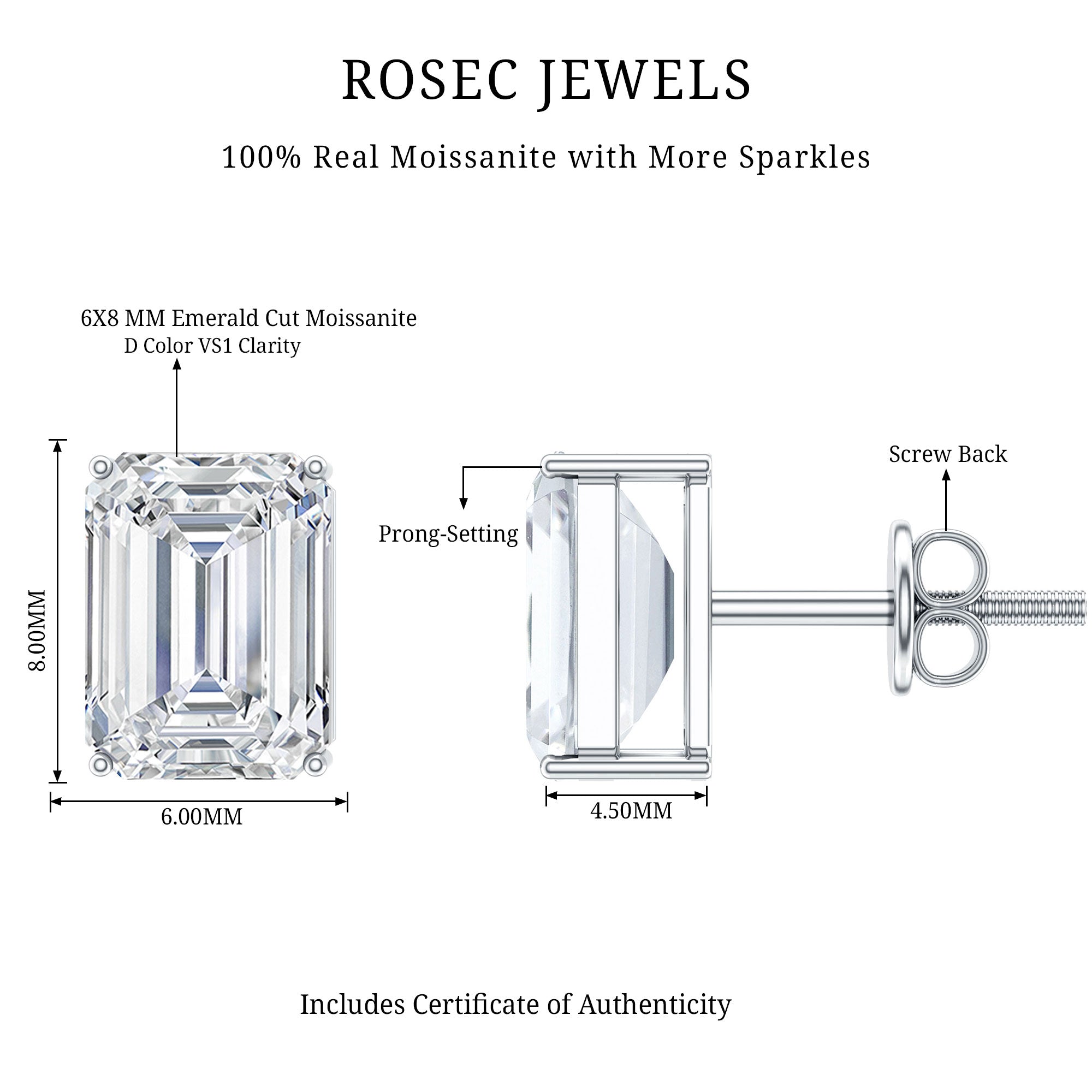 Our D color VS1 quality moissanite gems are of the highest quality, carefully selected for their amazing clarity and brilliance. Each pair of our high-quality moissanite earrings is crafted to ensure maximum fire and sparkle, providing a stunning look like the beauty of diamonds, but at a fraction of the cost.