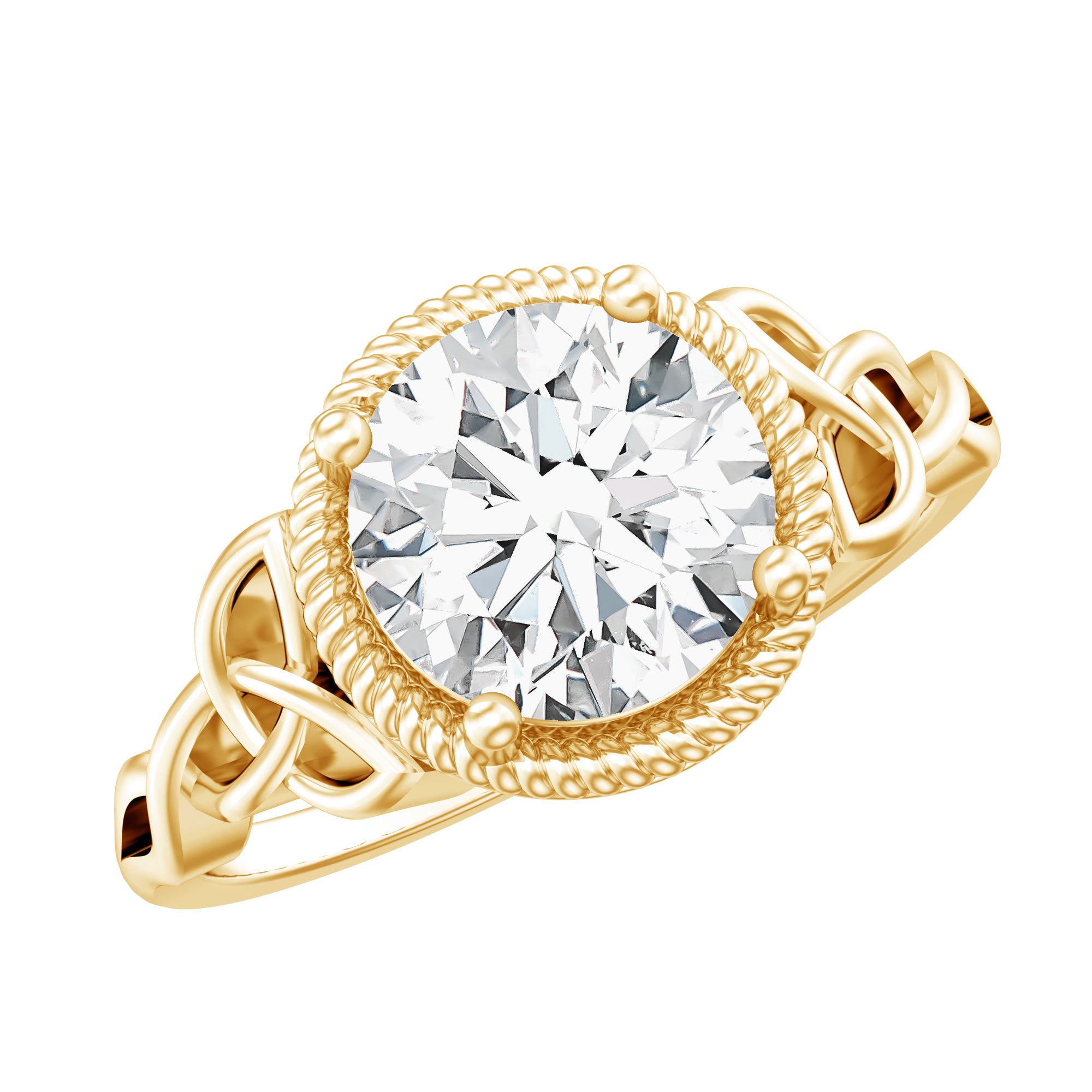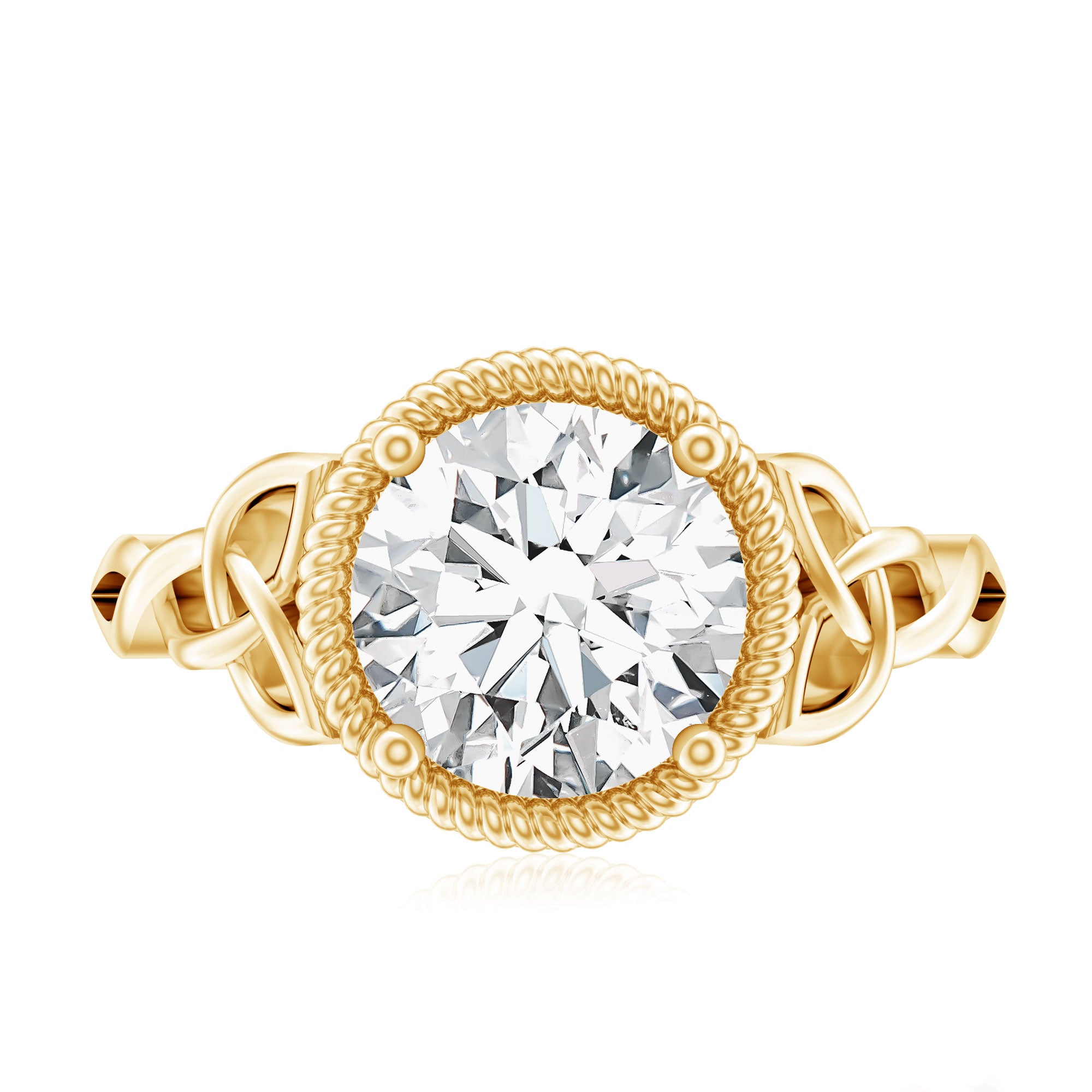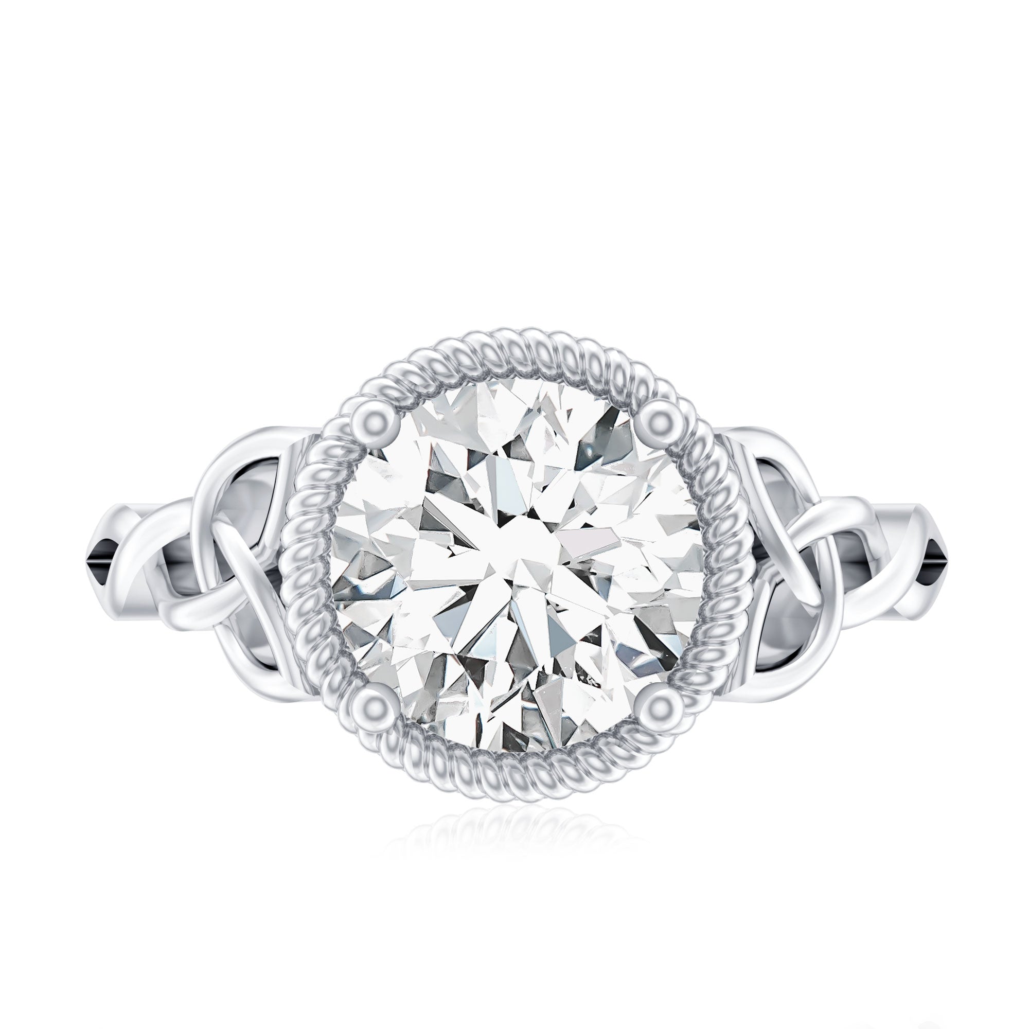 Prized as one of the most meaningful and Unique Moissanite Engagement Rings, a Knot Style ring emphasizes the beauty of the Centerpiece of Moissanite with loops of metal (on the sides) that are intertwined and woven together in an endless pattern. The endless knots here make this betrothal ring a romantic pick by epitomizing eternal love.