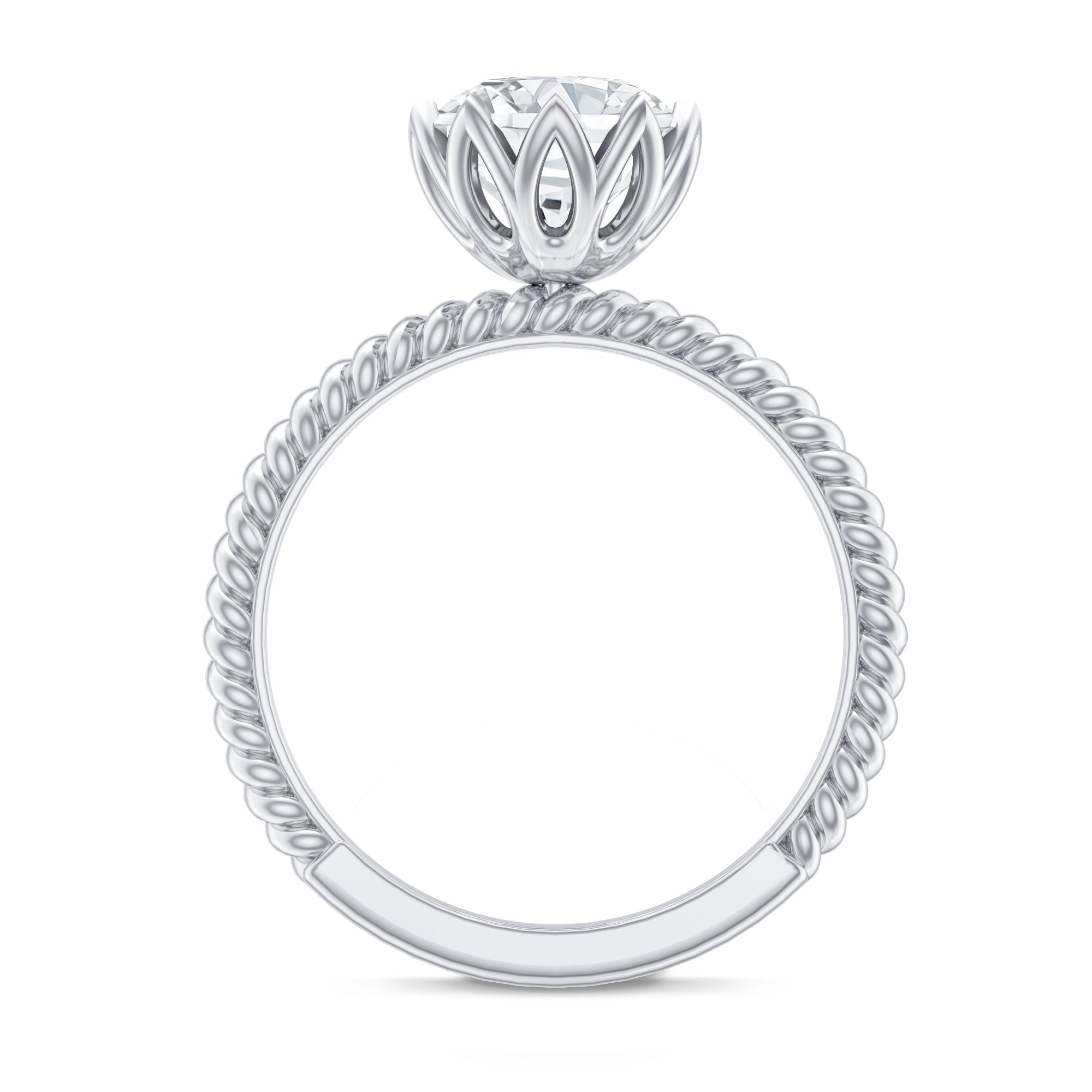 Prized as one of the most meaningful and Unique Moissanite Engagement Rings, a Knot Style ring emphasizes the beauty of the Centerpiece of Moissanite with loops of metal (on the sides) that are intertwined and woven together in an endless pattern. The endless knots here make this betrothal ring a romantic pick by epitomizing eternal love.