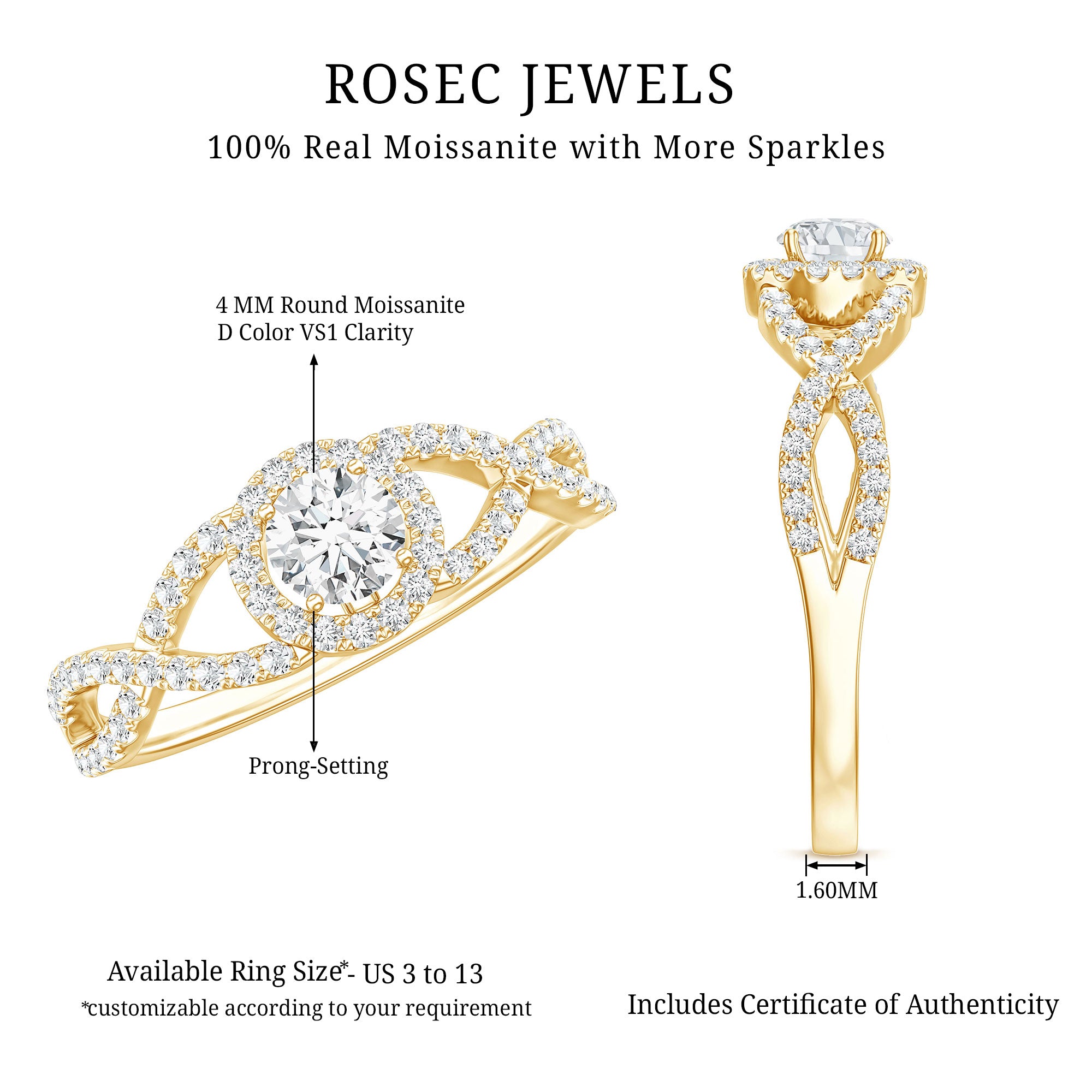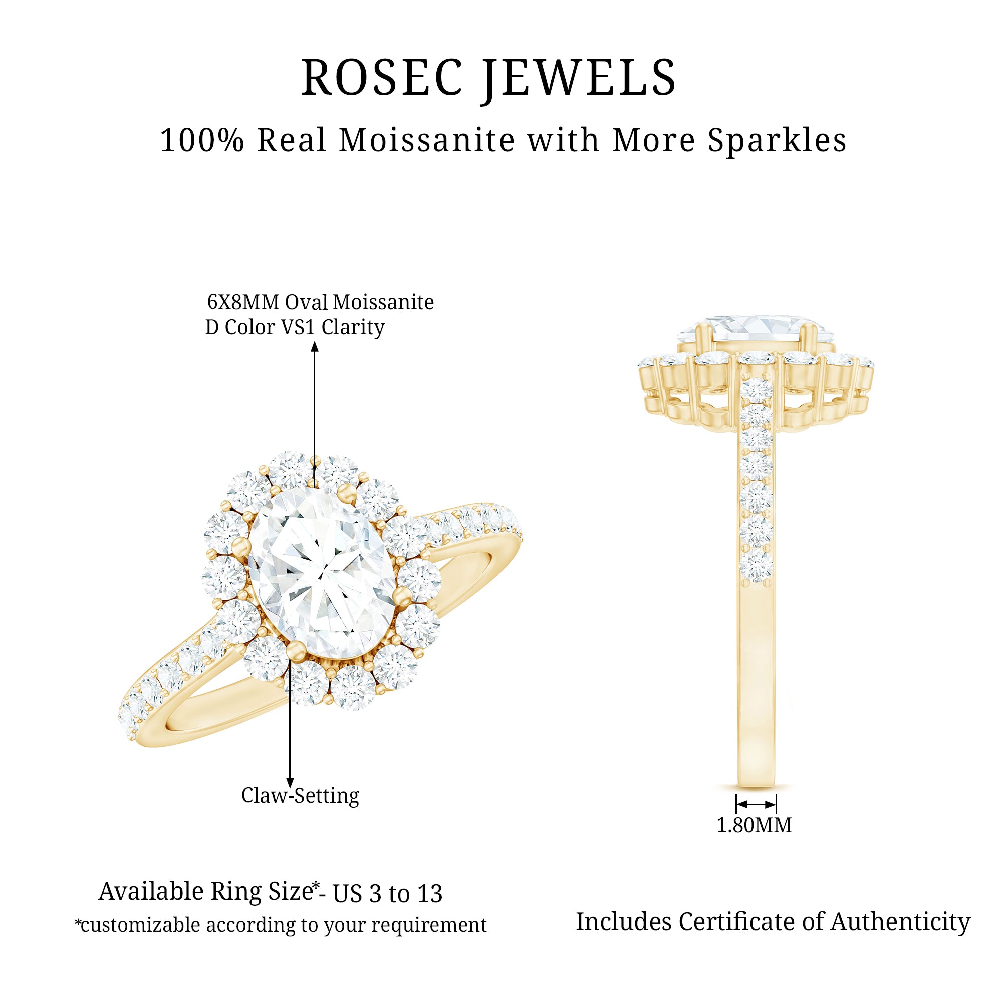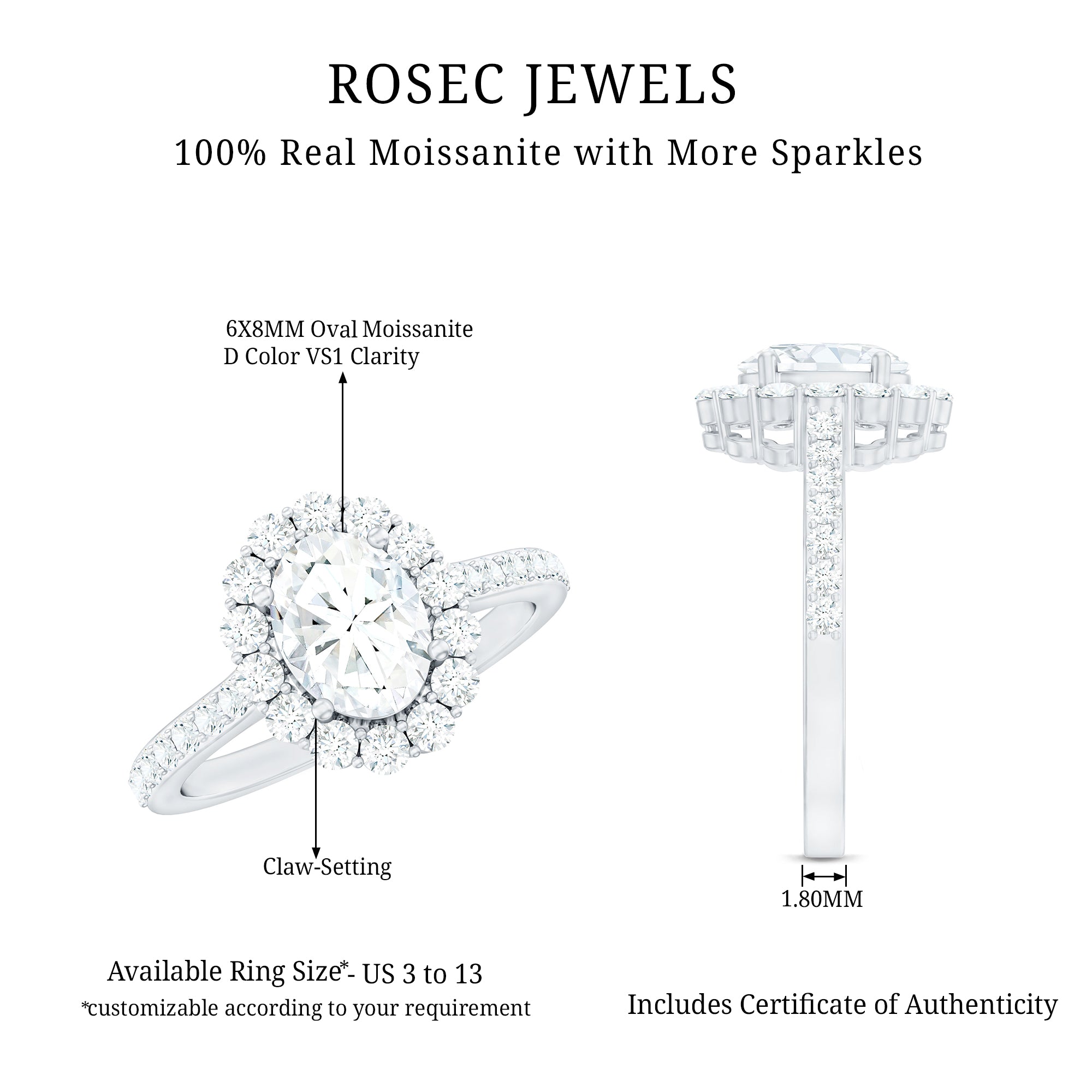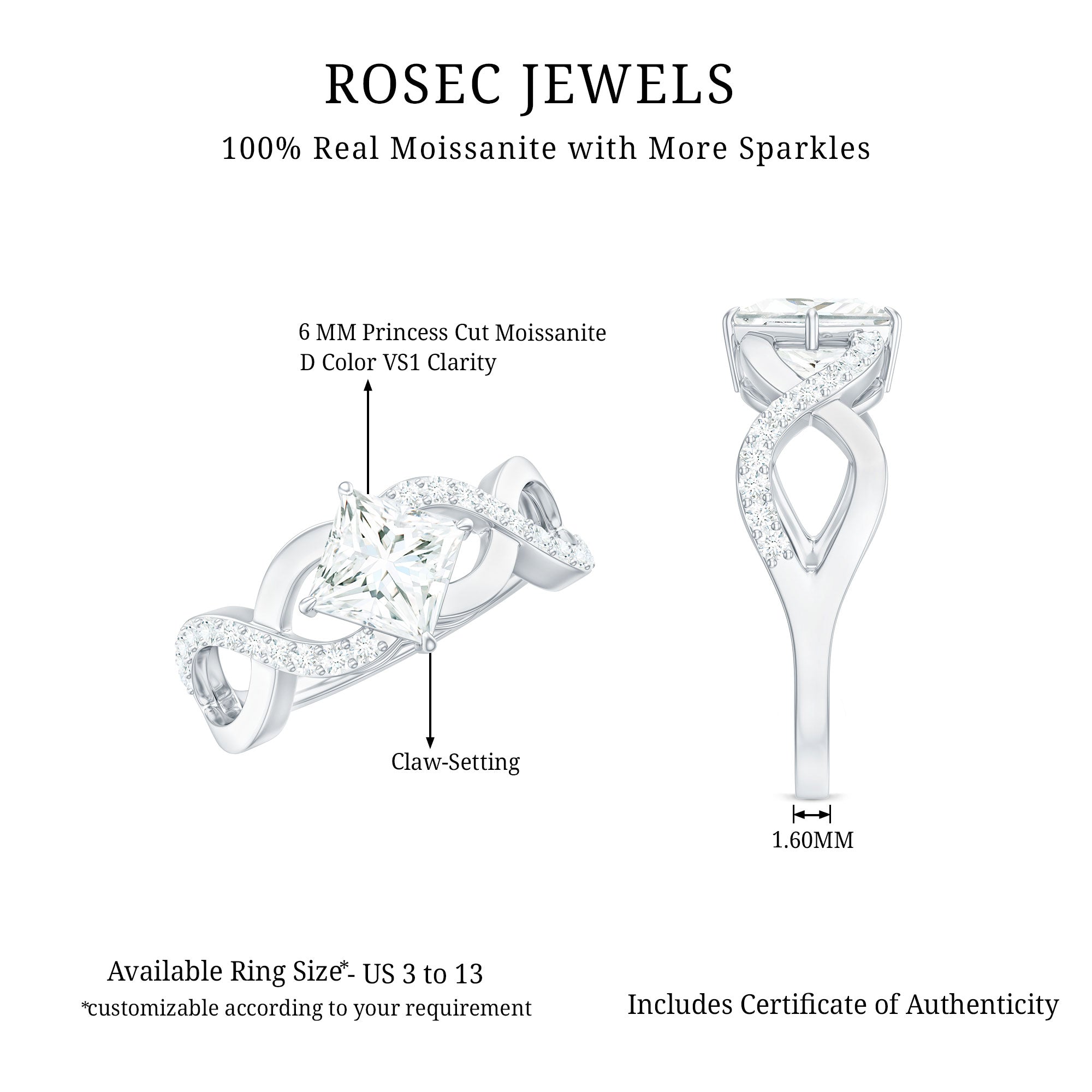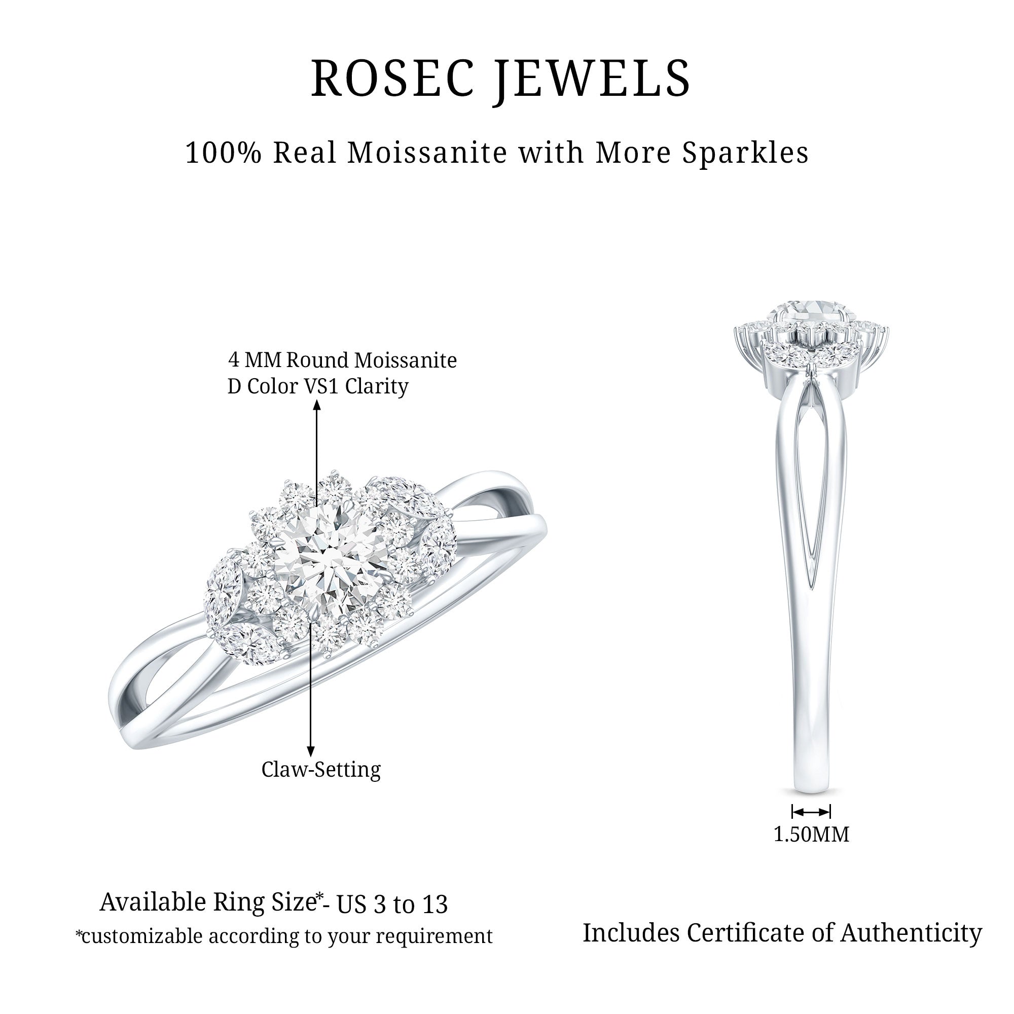 - Classic proposal ring: solitaire moissanite engagement rings.