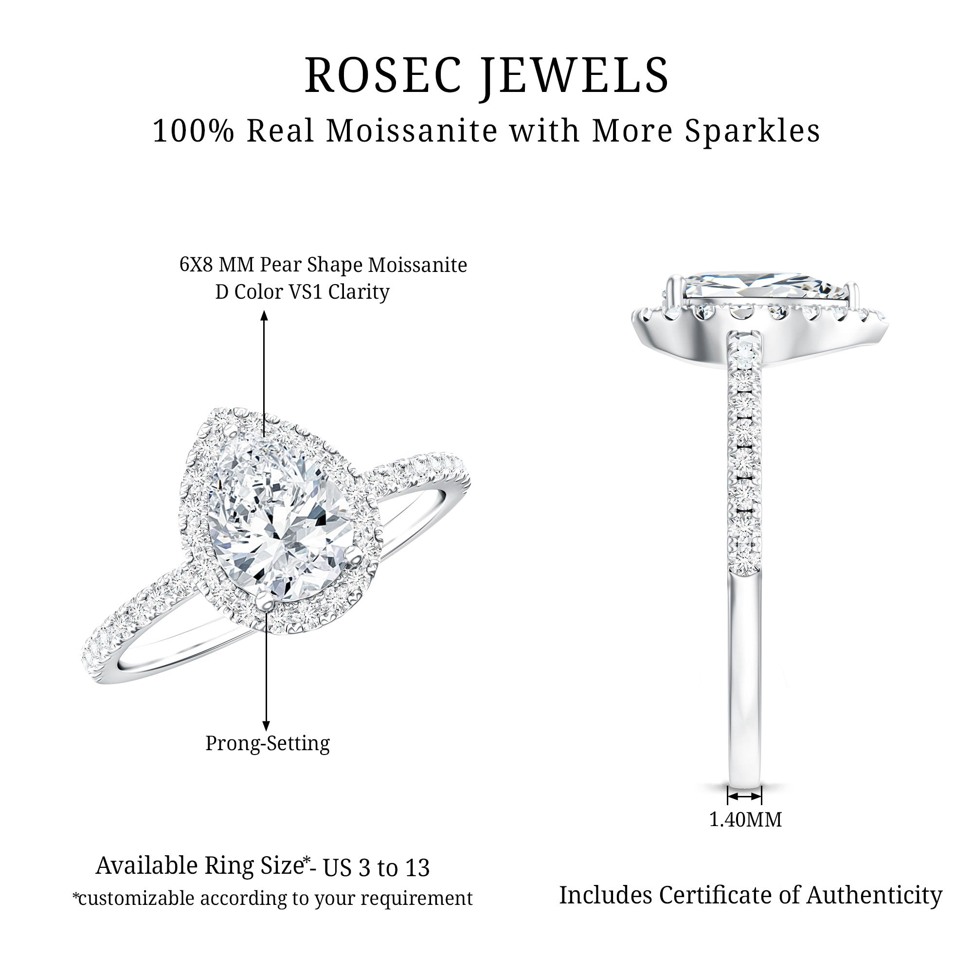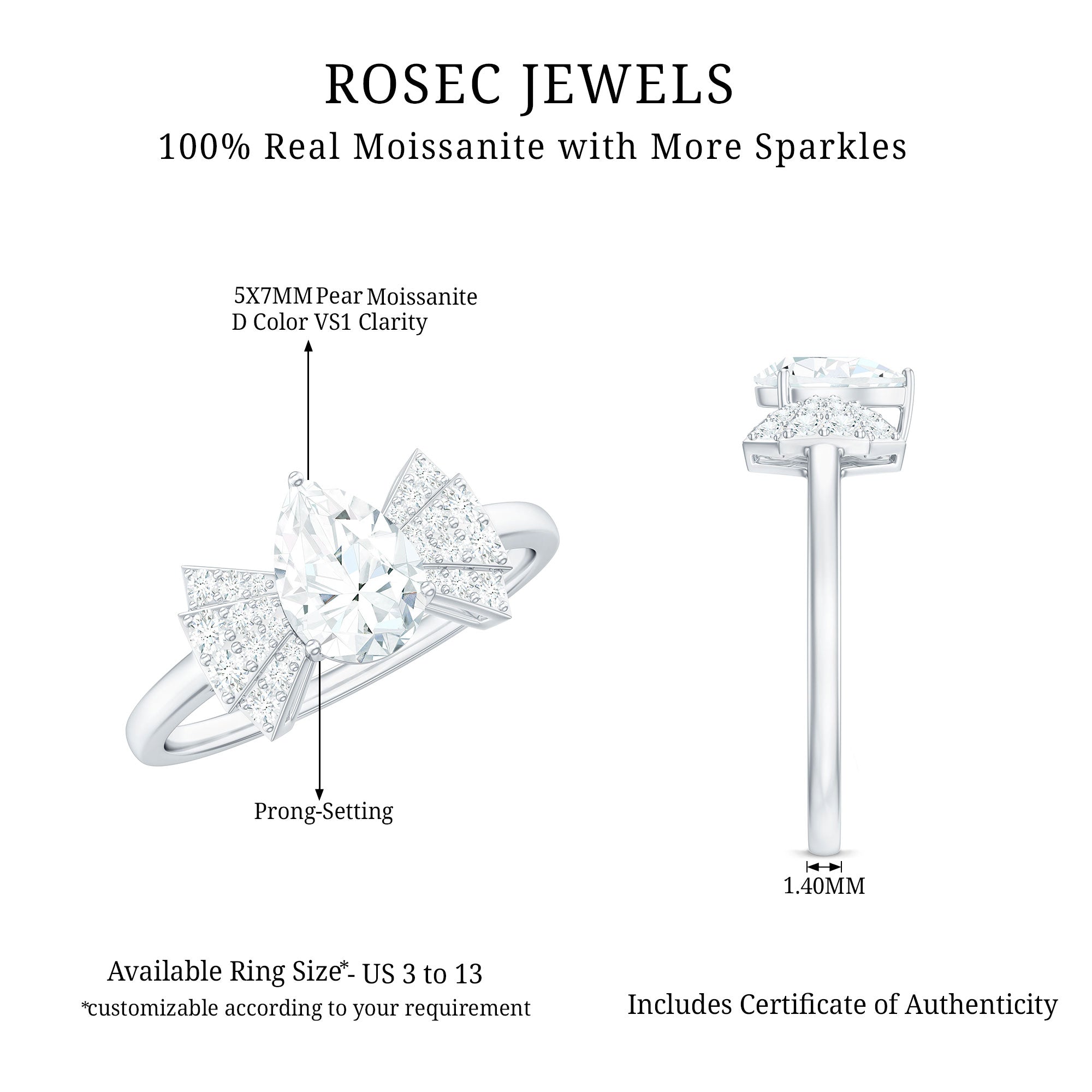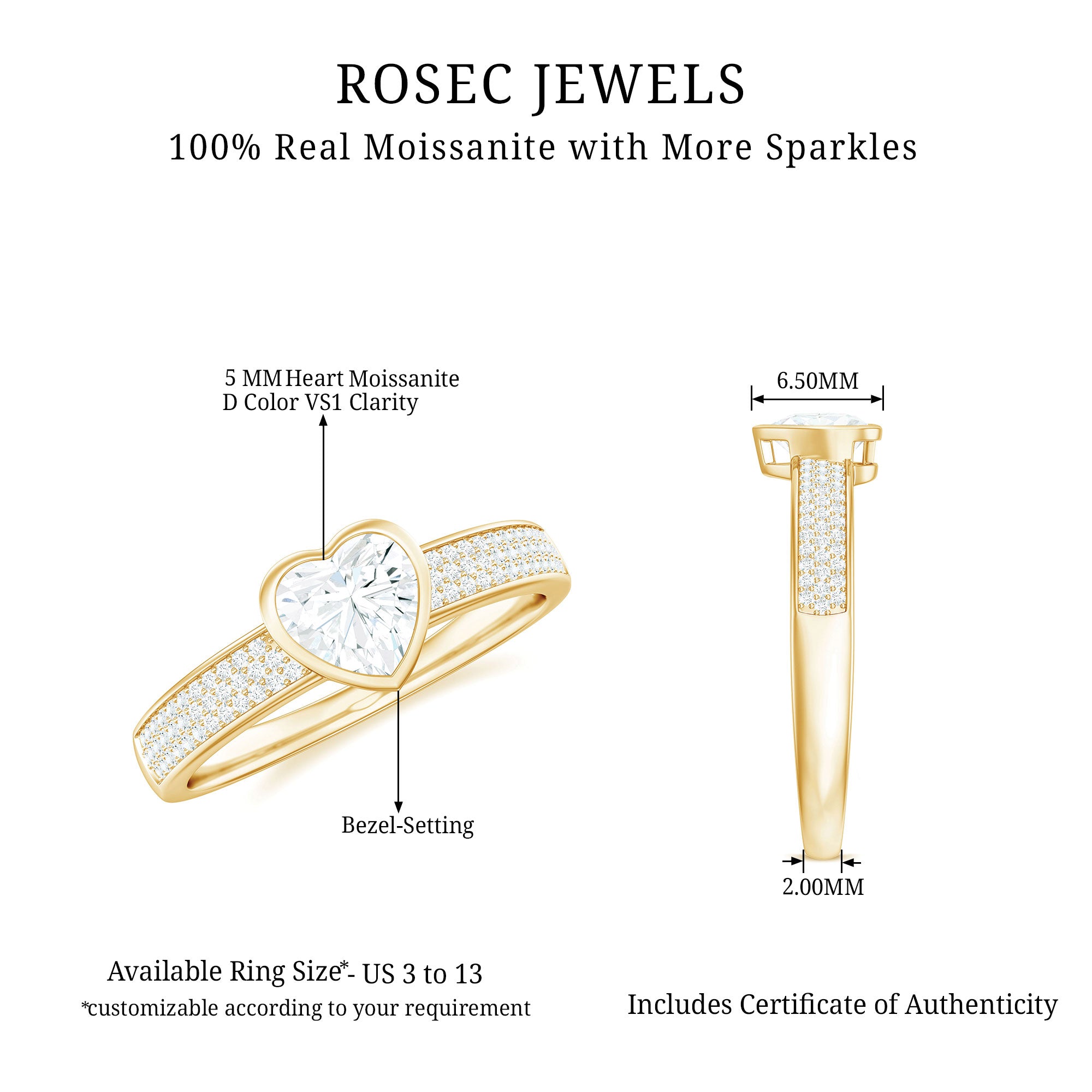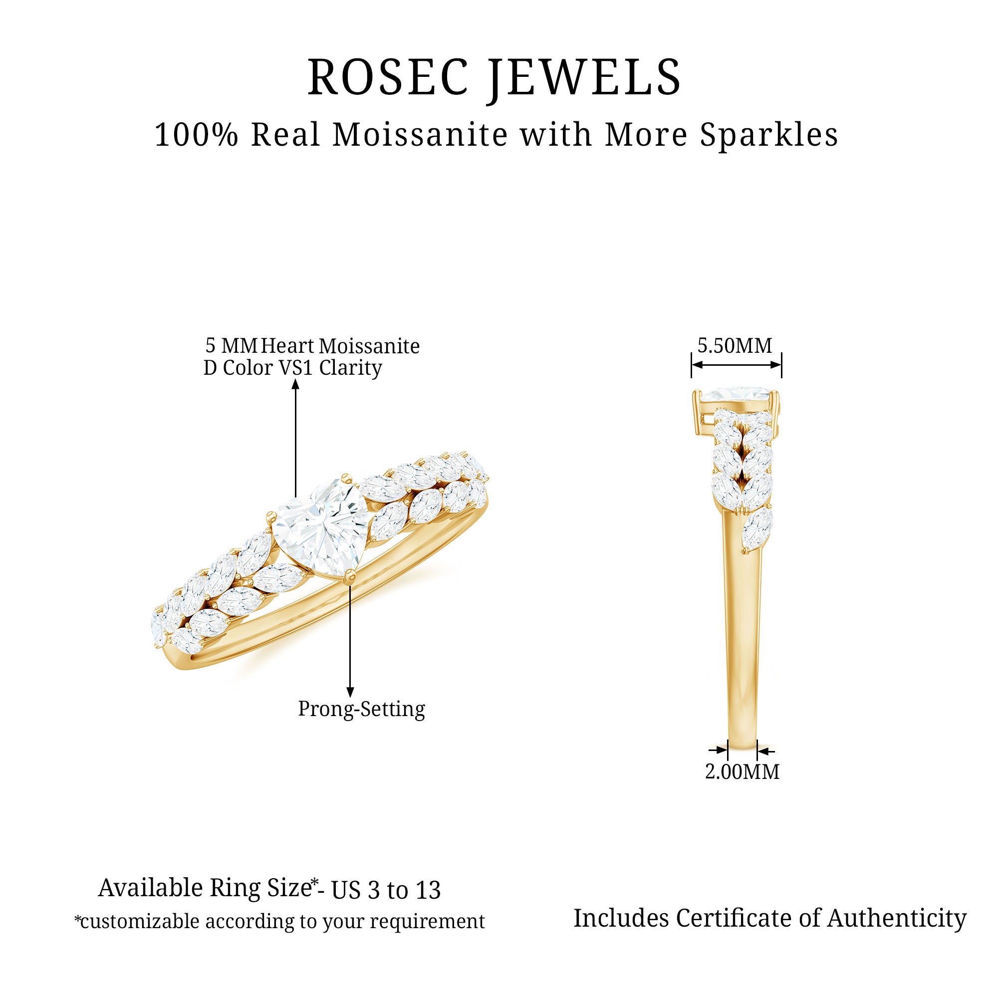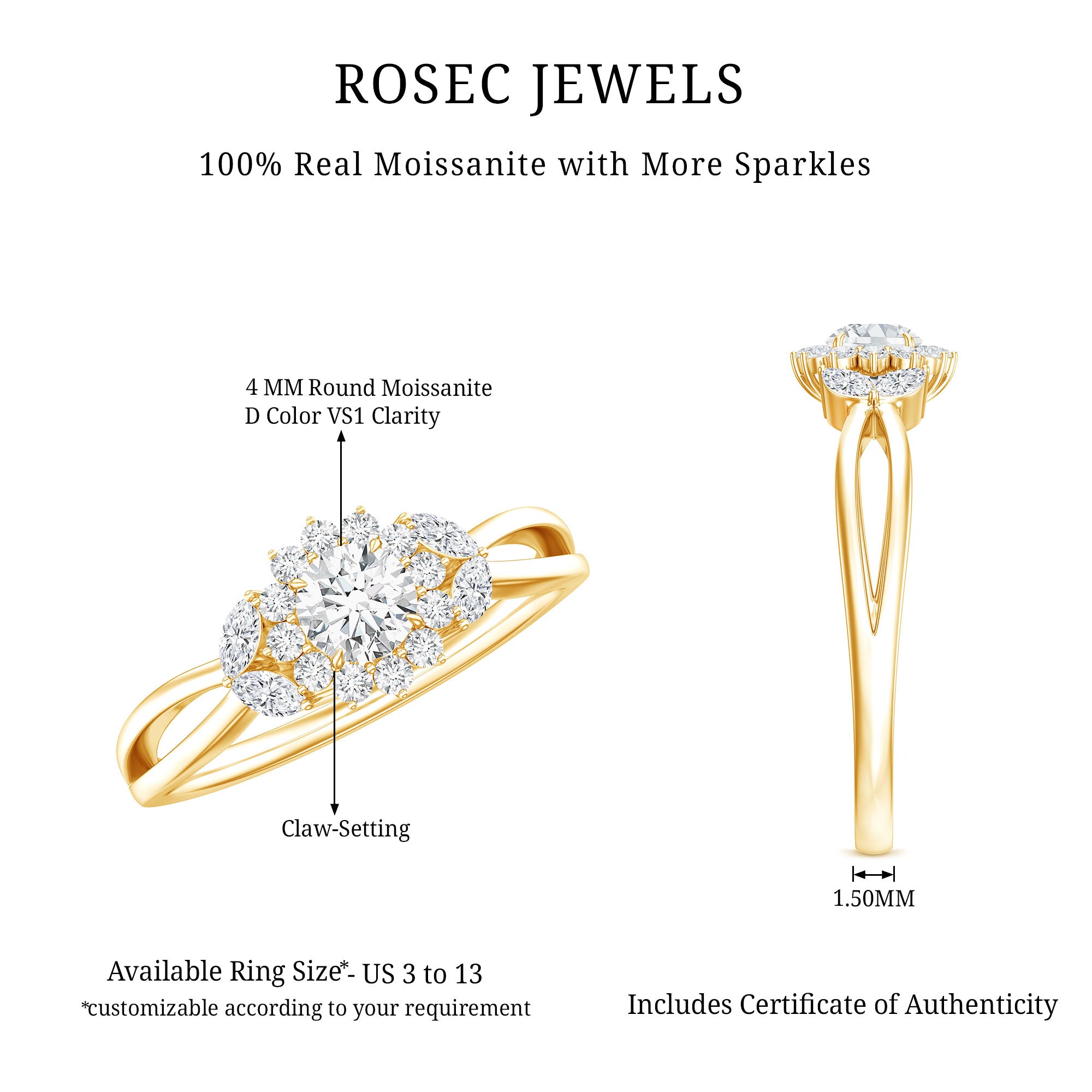 - Durable for everyday wear: With a hardness of 9.25 on the Mohs scale, moissanite is well suited for engagement rings.