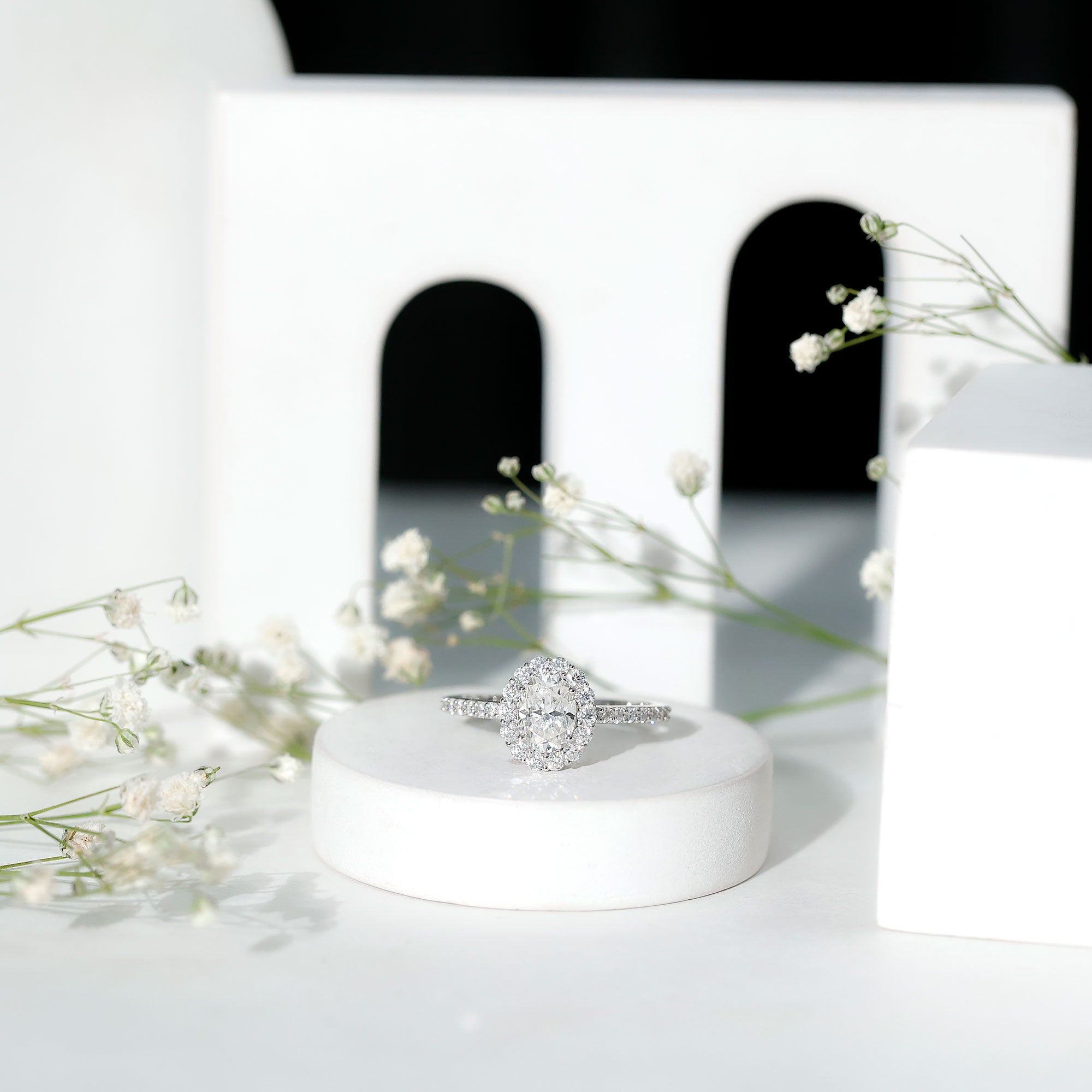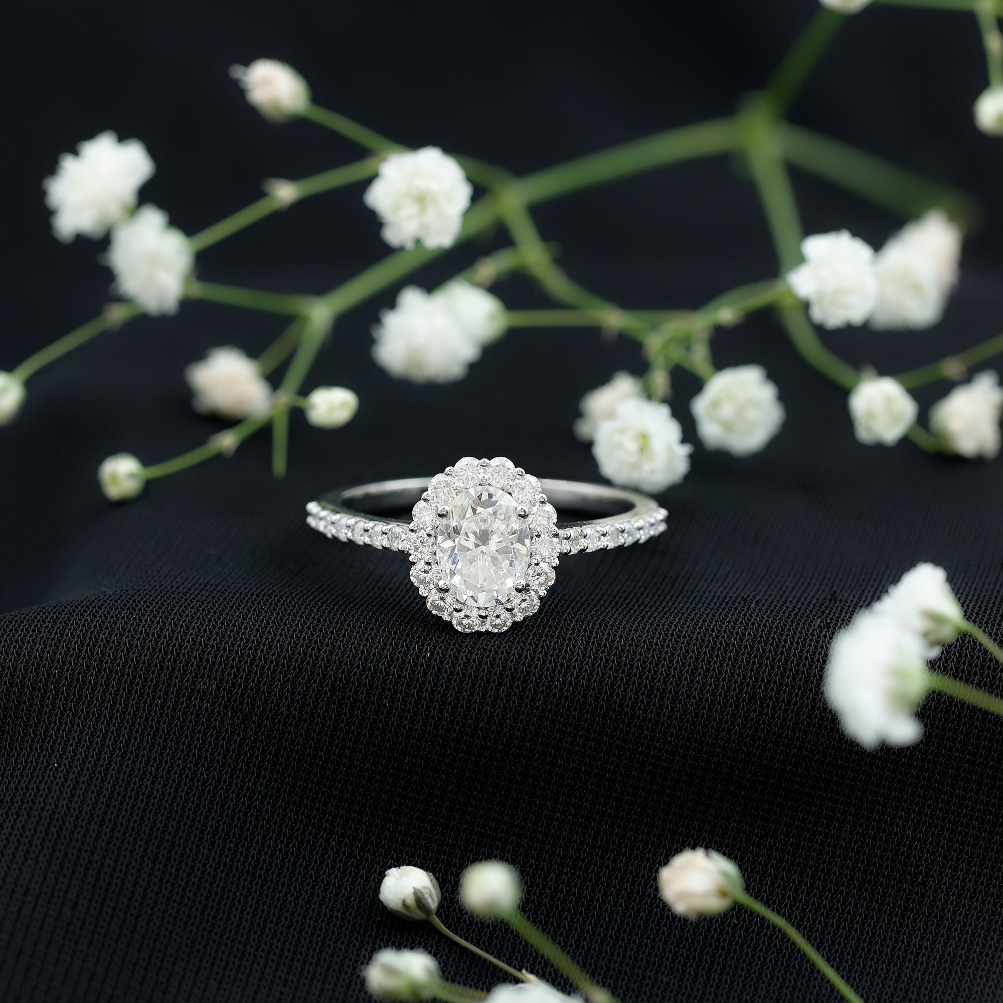 - Maximum sparkle: halo engagement ring settings.