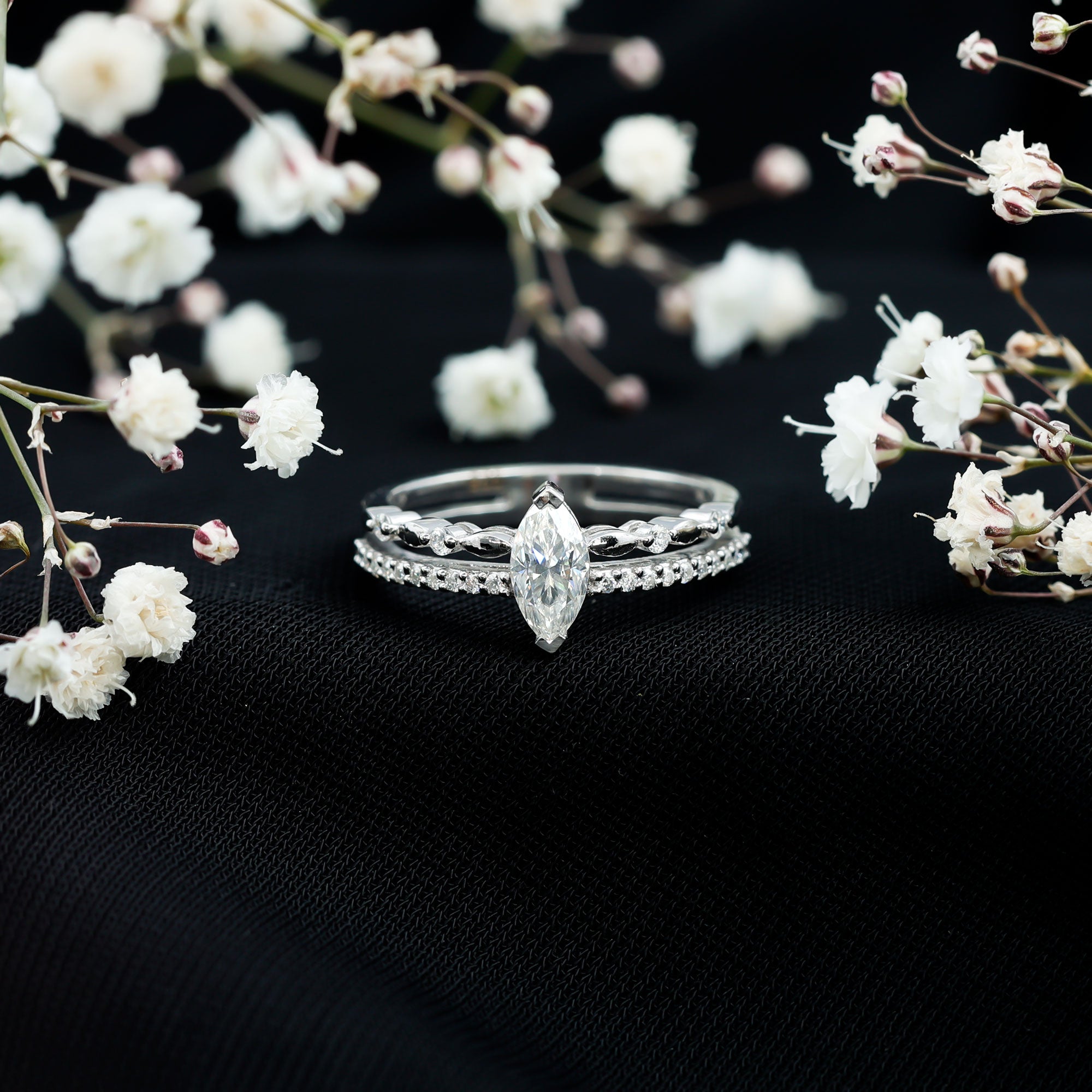 Moissanite and diamond engagement rings share a similar luxurious appearance, but moissanite is known for producing even more fire and colorful sparkle in certain lighting conditions. Many couples choose moissanite because it offers exceptional brilliance while remaining significantly more affordable than traditional diamonds.