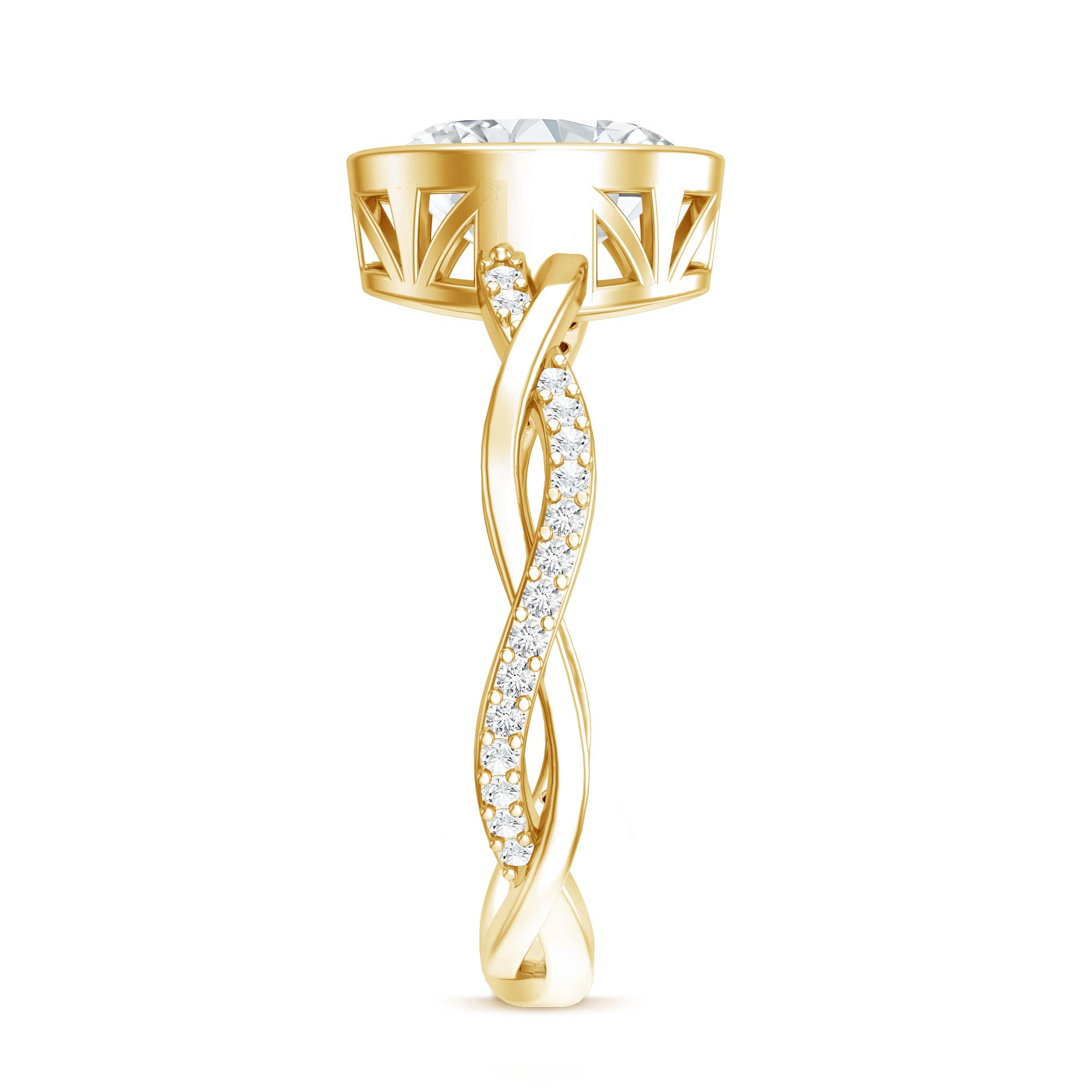 Prized as one of the most meaningful and Unique Moissanite Engagement Rings, a Knot Style ring emphasizes the beauty of the Centerpiece of Moissanite with loops of metal (on the sides) that are intertwined and woven together in an endless pattern. The endless knots here make this betrothal ring a romantic pick by epitomizing eternal love.