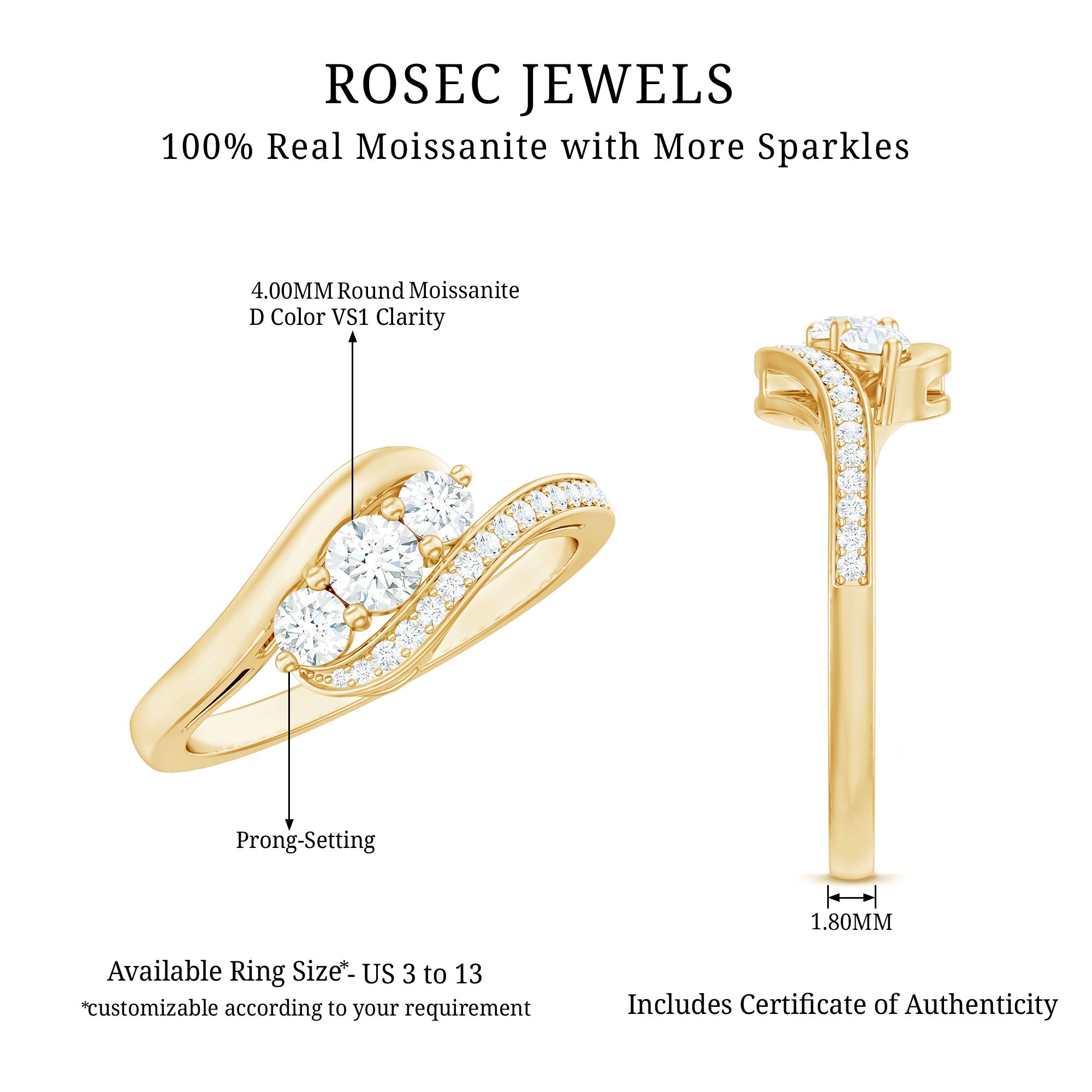 - Exceptional brilliance: Moissanite reflects light with remarkable fire and sparkle.