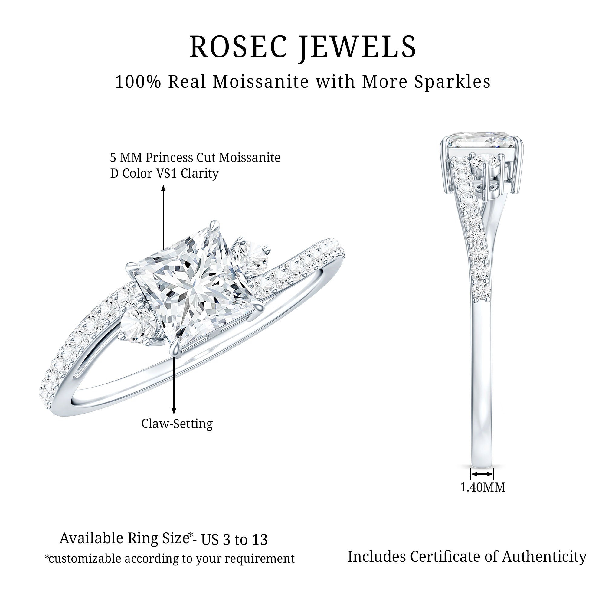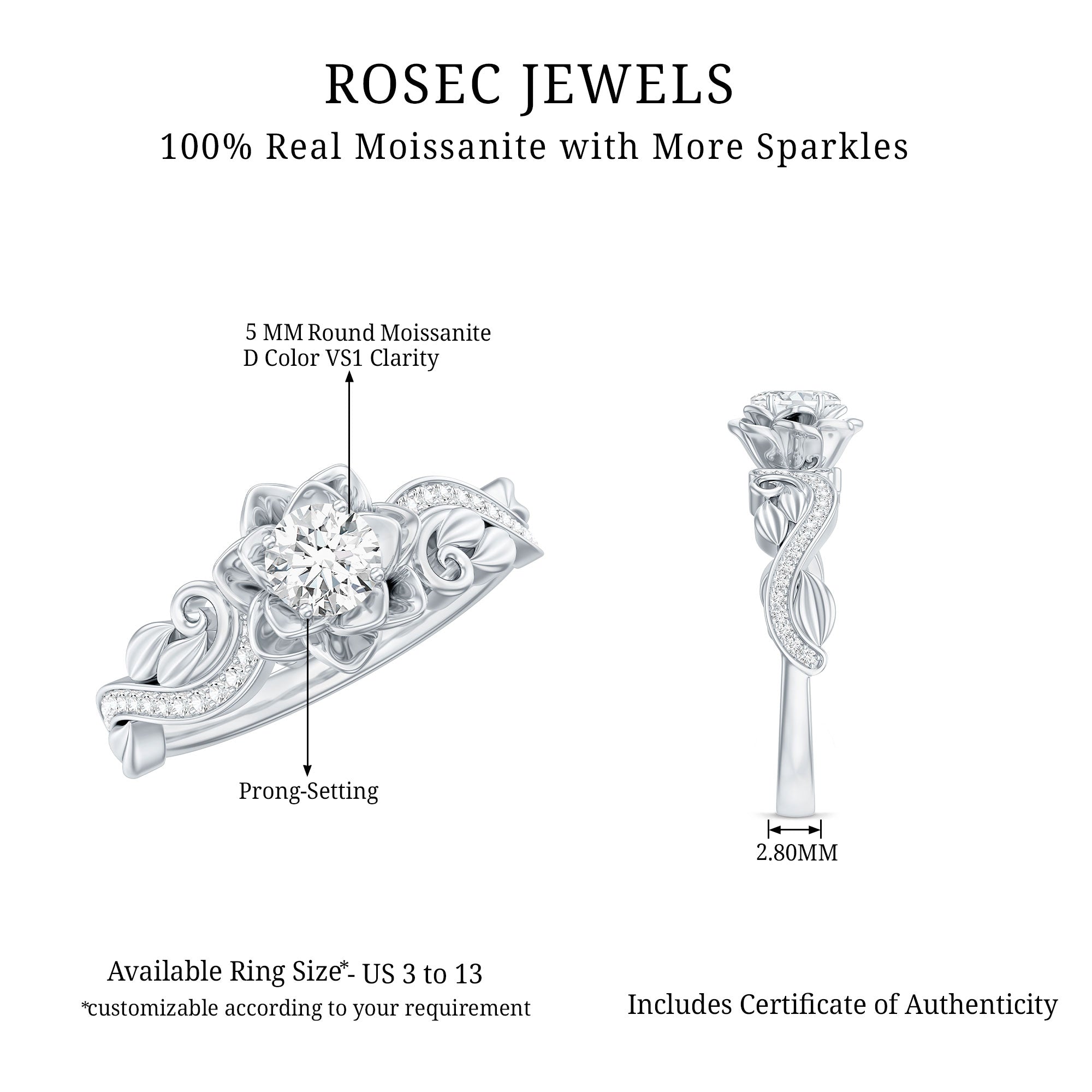 - Classic proposal ring: solitaire moissanite engagement rings.