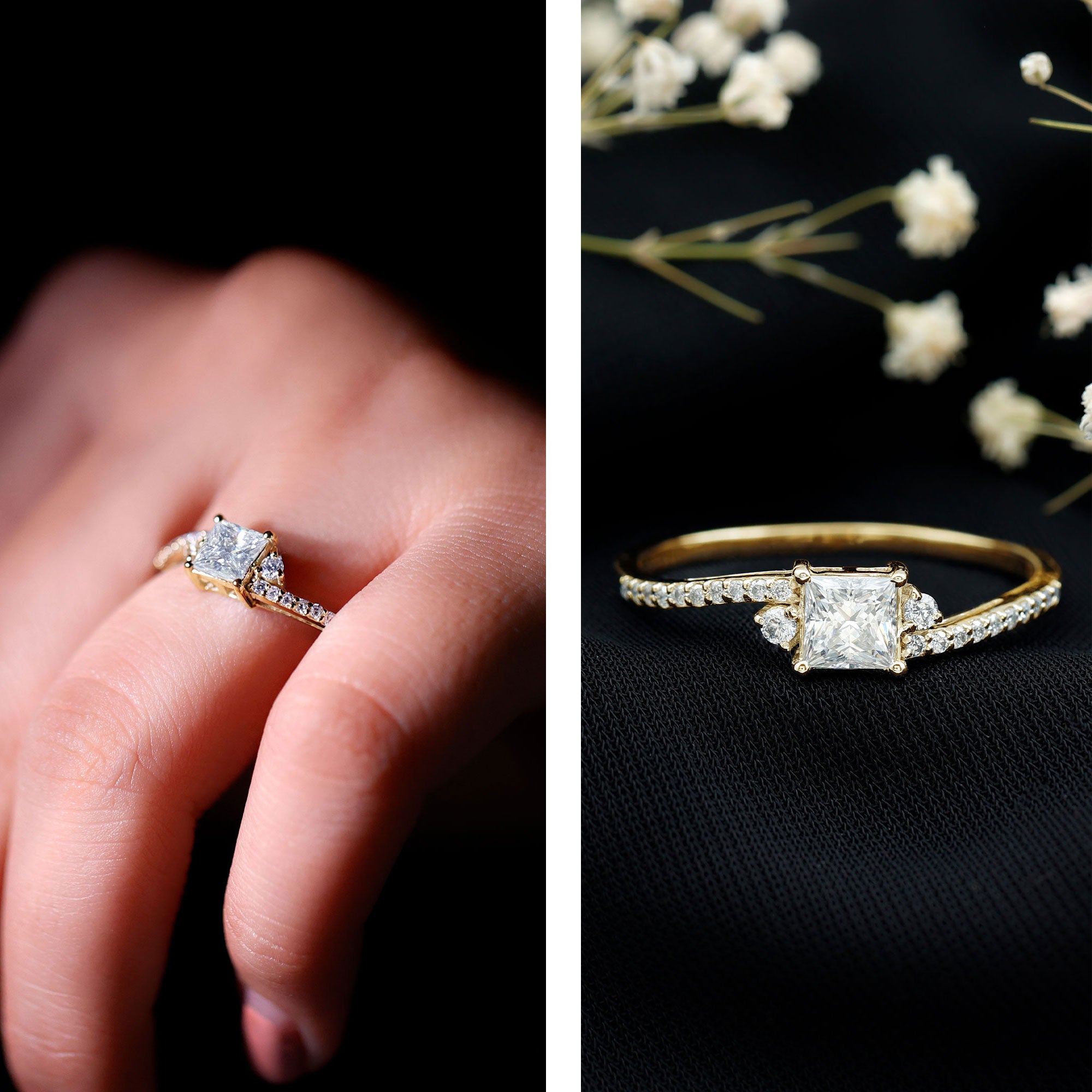 Pro tip: If you wish to best complement the beauty of your proposal ring while also making a bridal statement, you might love getting your hands on a Moissanite Engagement Ring Set. It features a matching engagement ring and wedding band that are meant to be worn together.