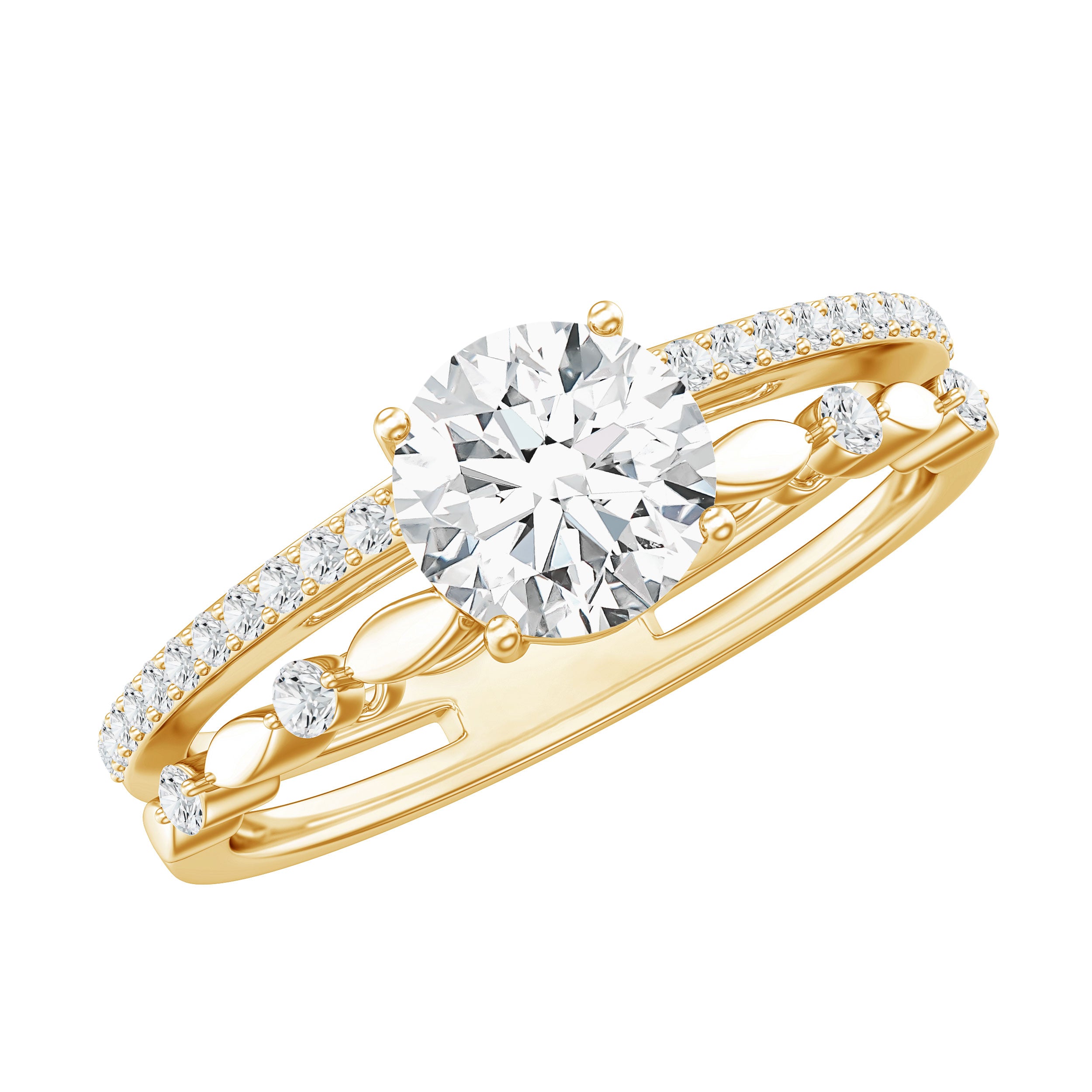 Meant to speak to old-school couples, Vintage Moissanite Engagement Rings feature ornate designs that are symbolic of the Art Deco, Edwardian, and Victorian Eras. Under this selection, you’re most likely to come across antique designs that incorporate milgrain and filigree detailing, ancient floral motifs, and abstract geometric patterns that complement the beauty of Moissanite. Besides that, be it a Floral or Art Deco Moissanite Engagement Ring, it speaks to the wearer by lending an heirloom feel to your emblem of love.