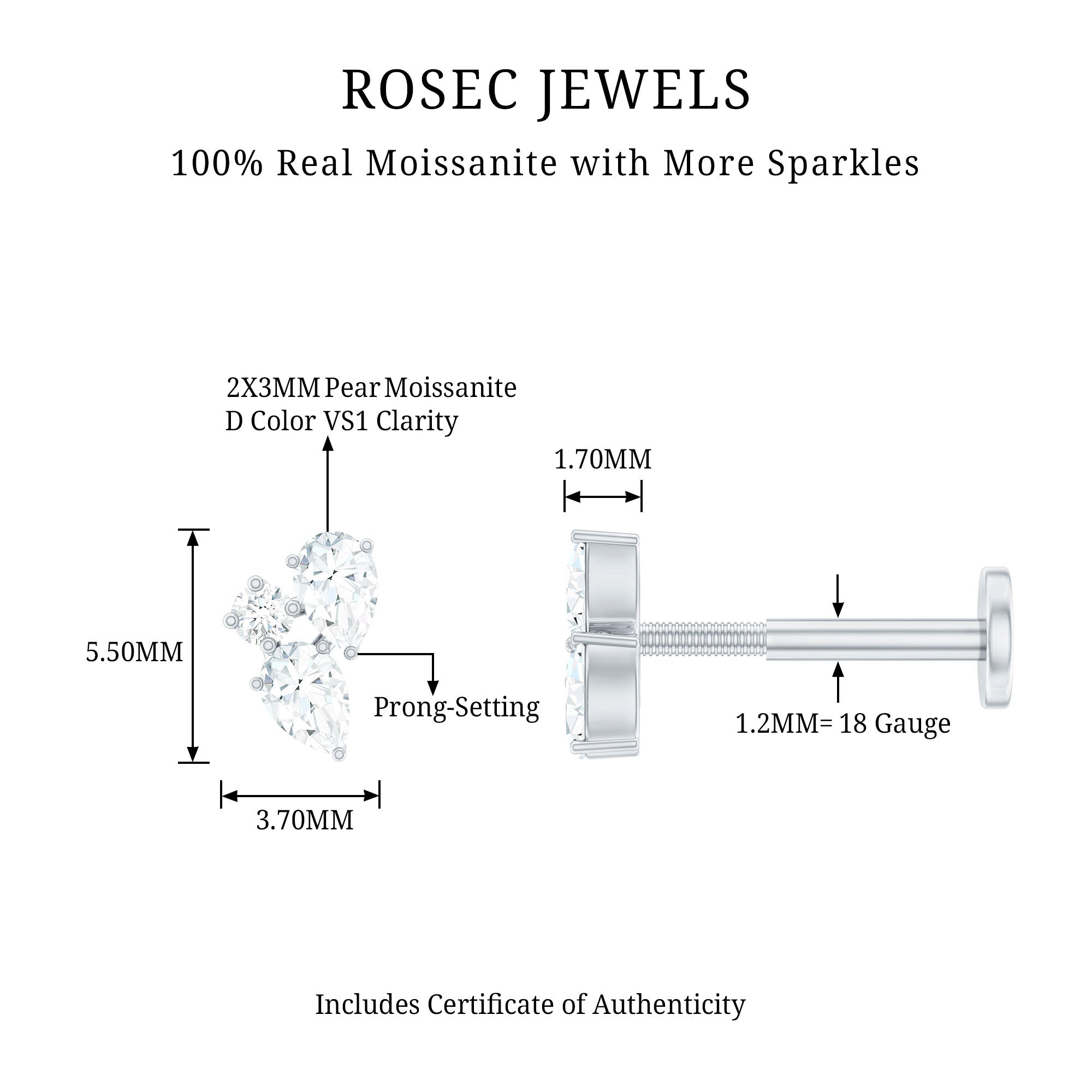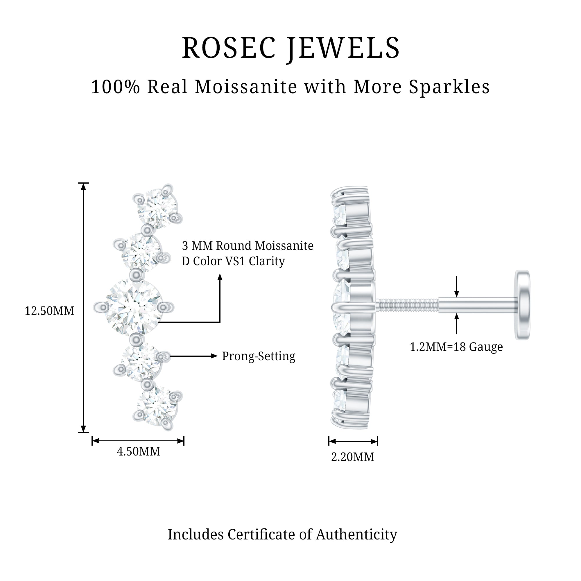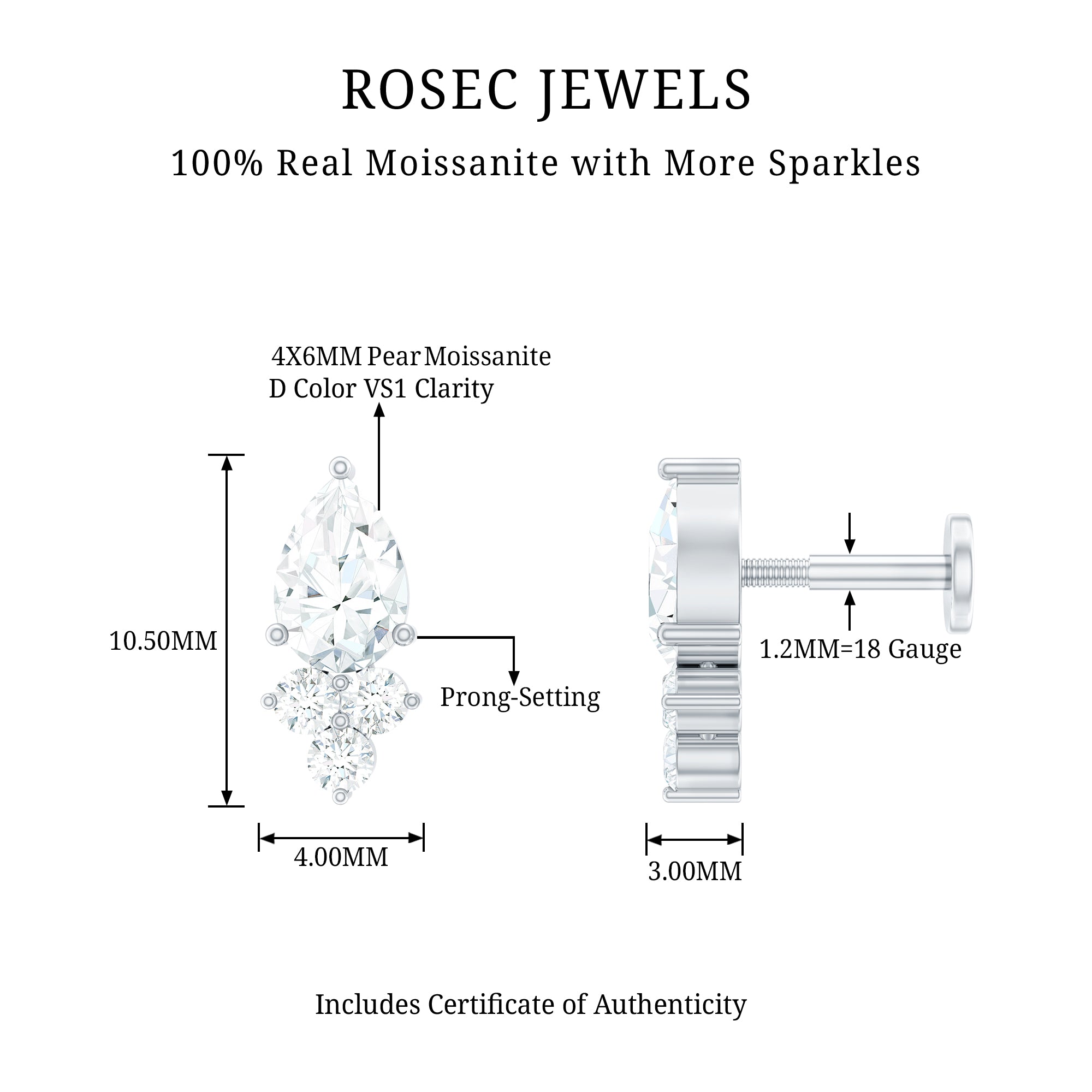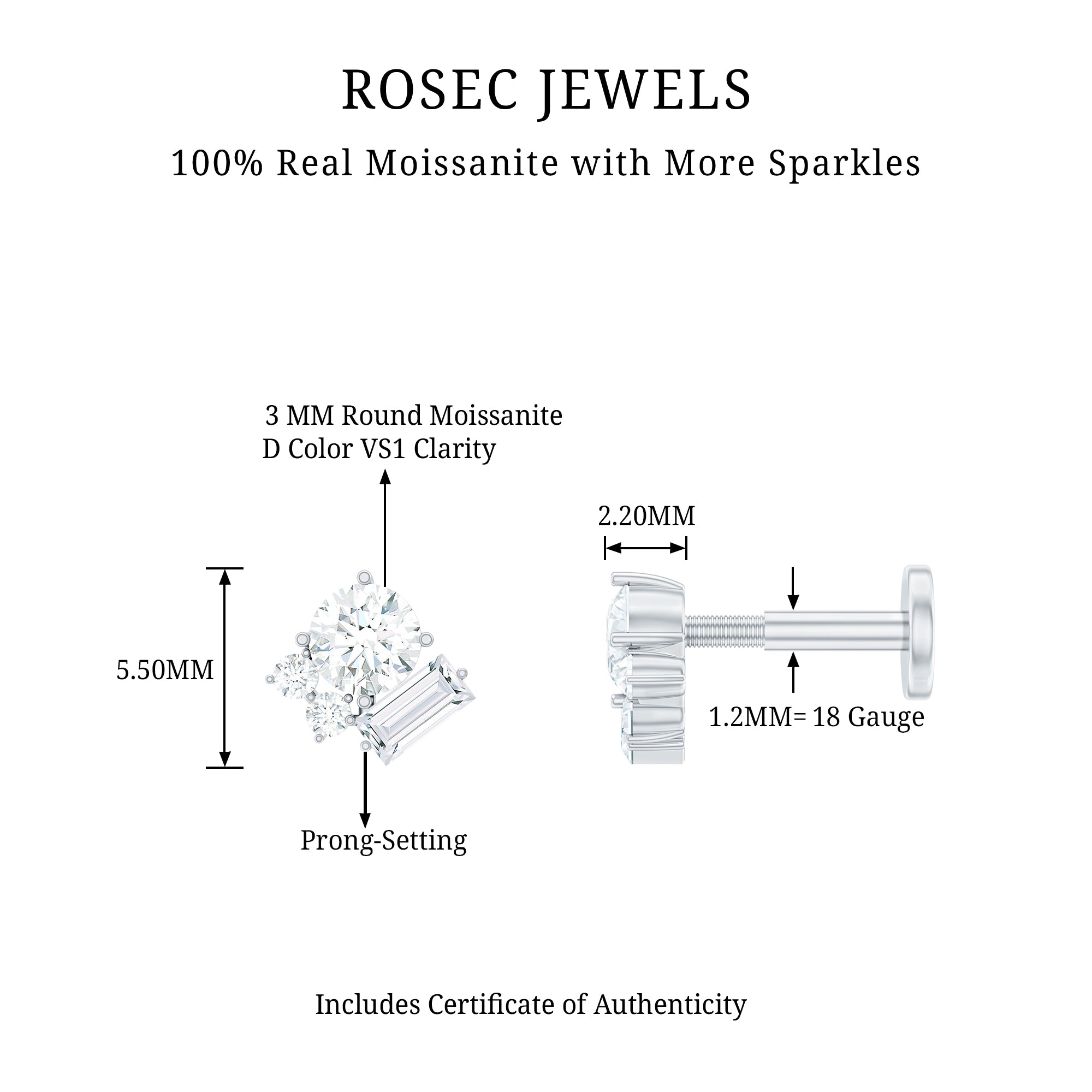 Moissanite Ear Piercing Jewelry