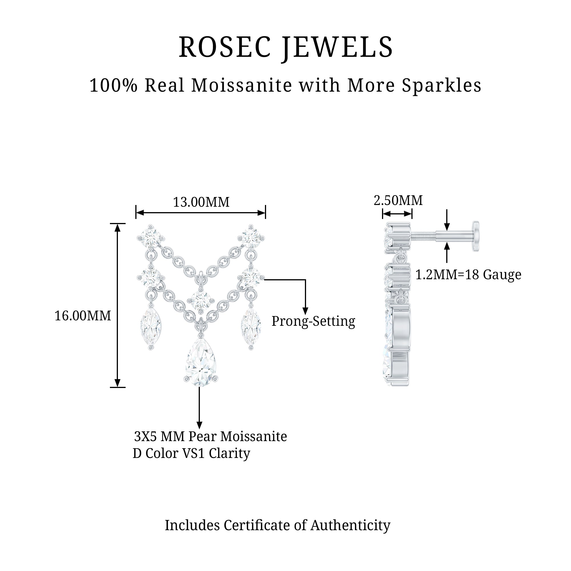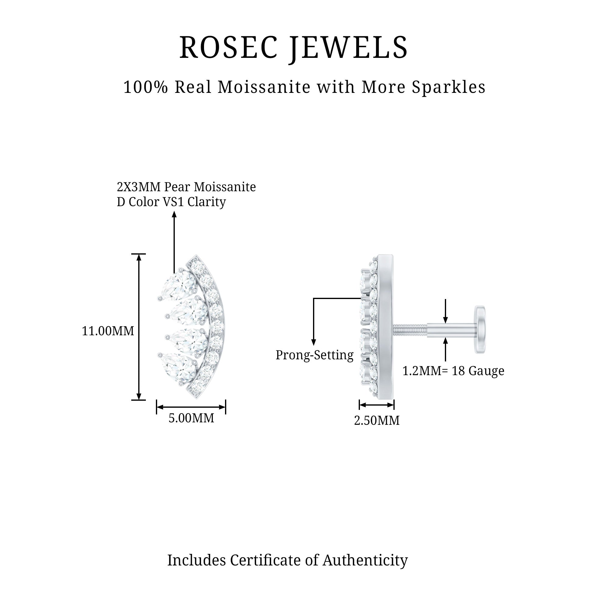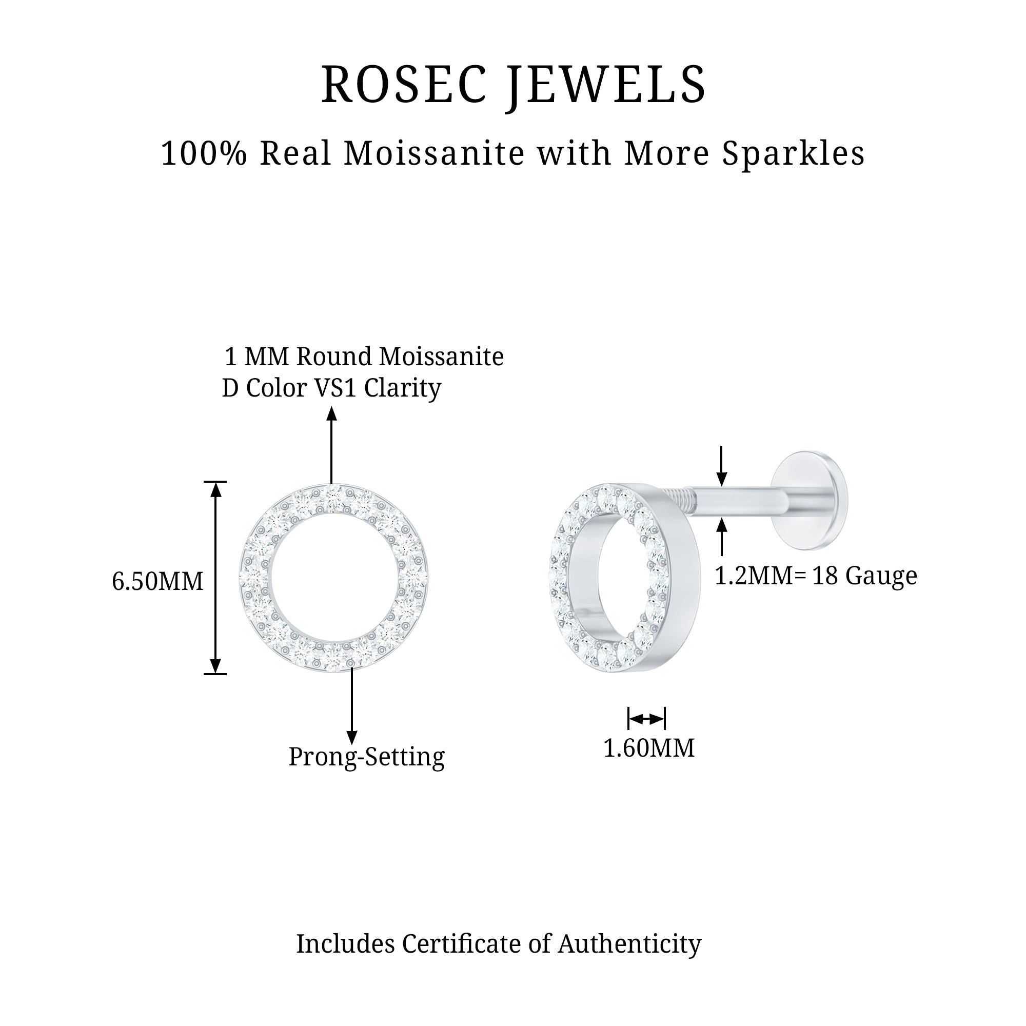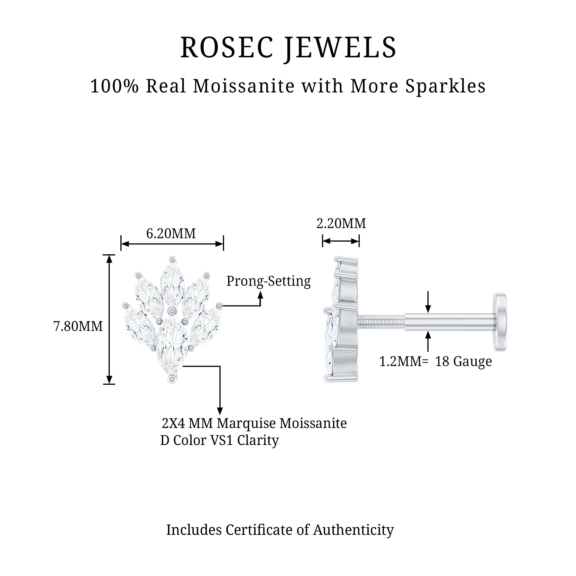Moissanite Ear Piercing Jewelry