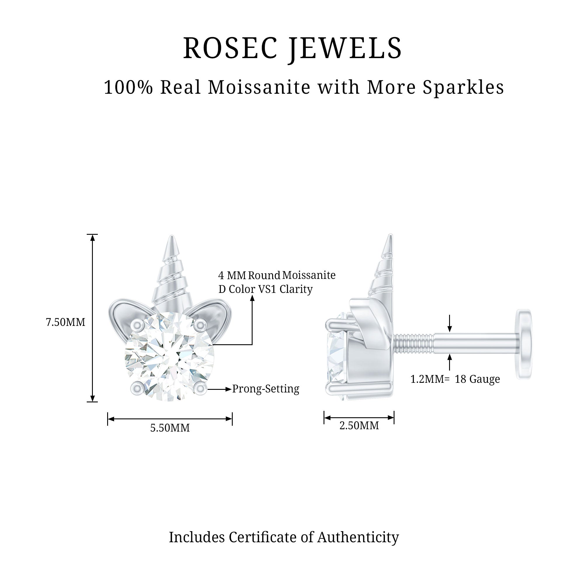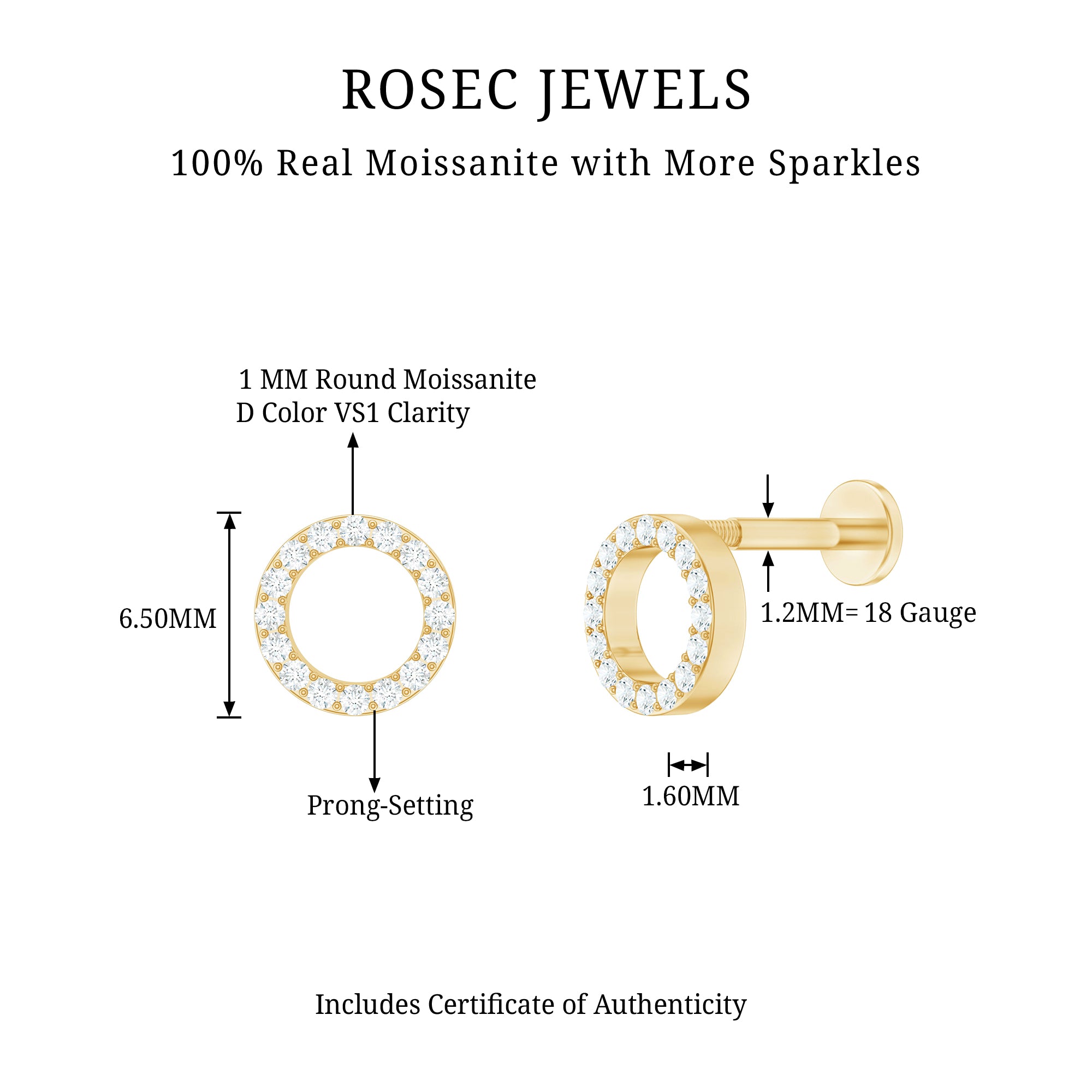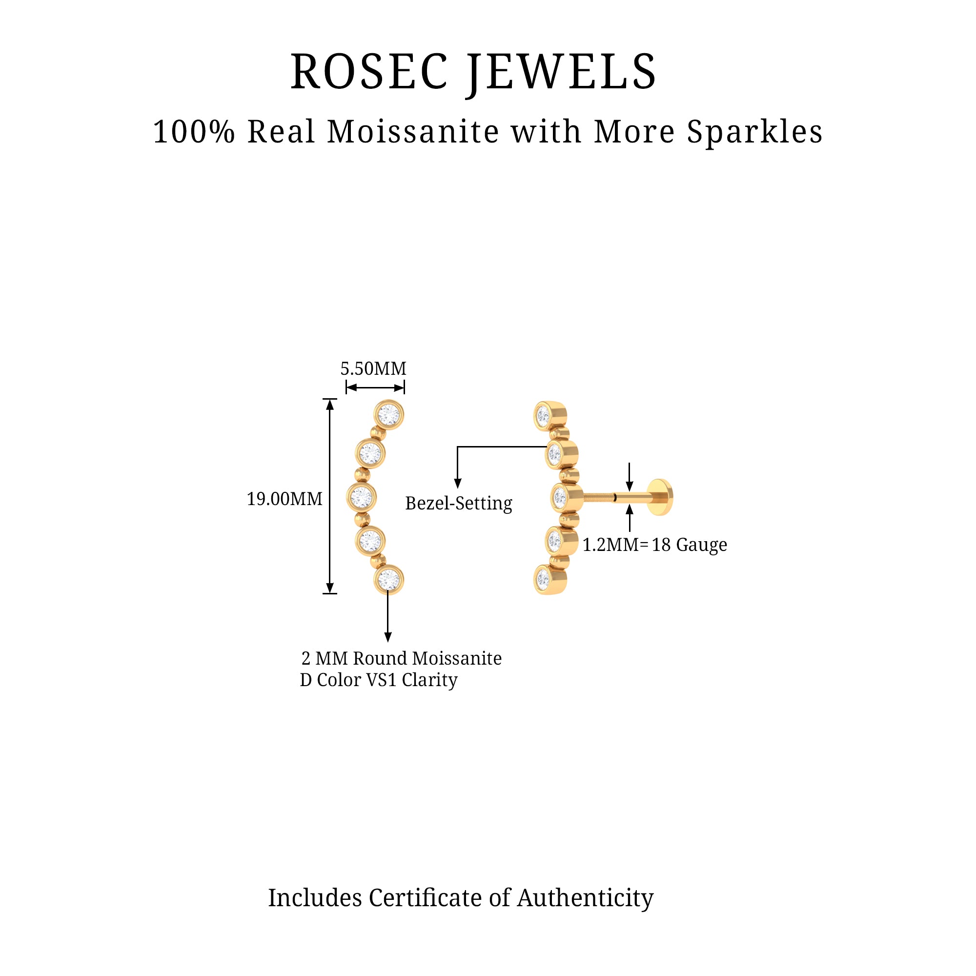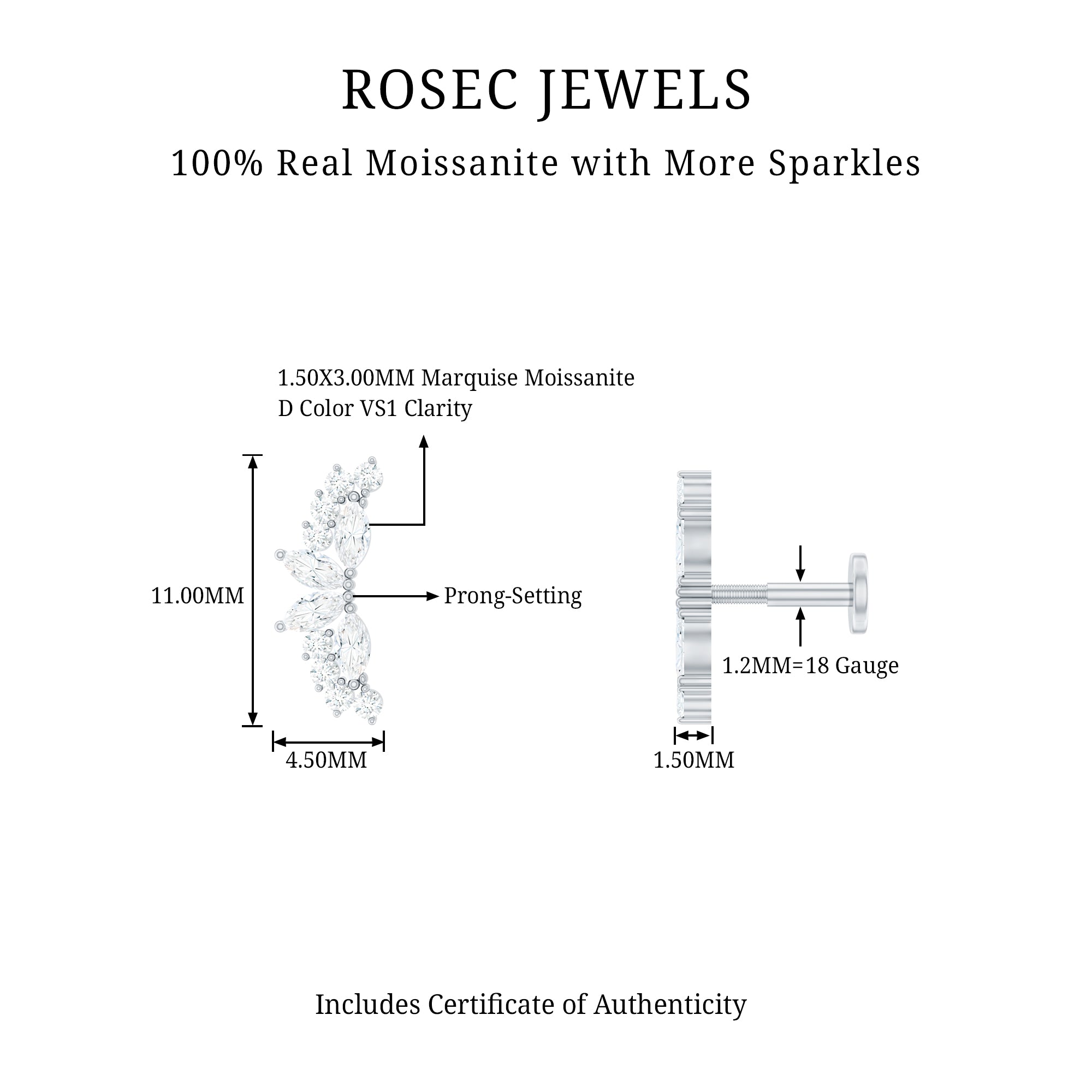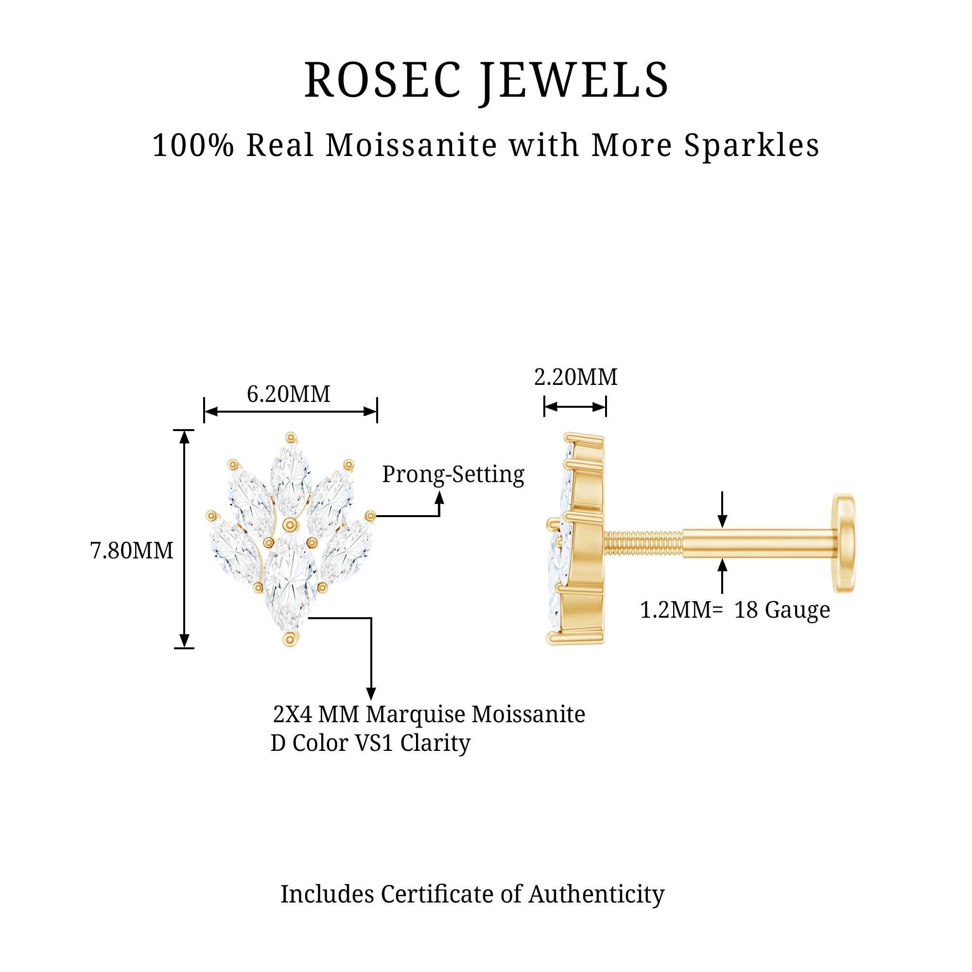 Moissanite Ear Piercing Jewelry