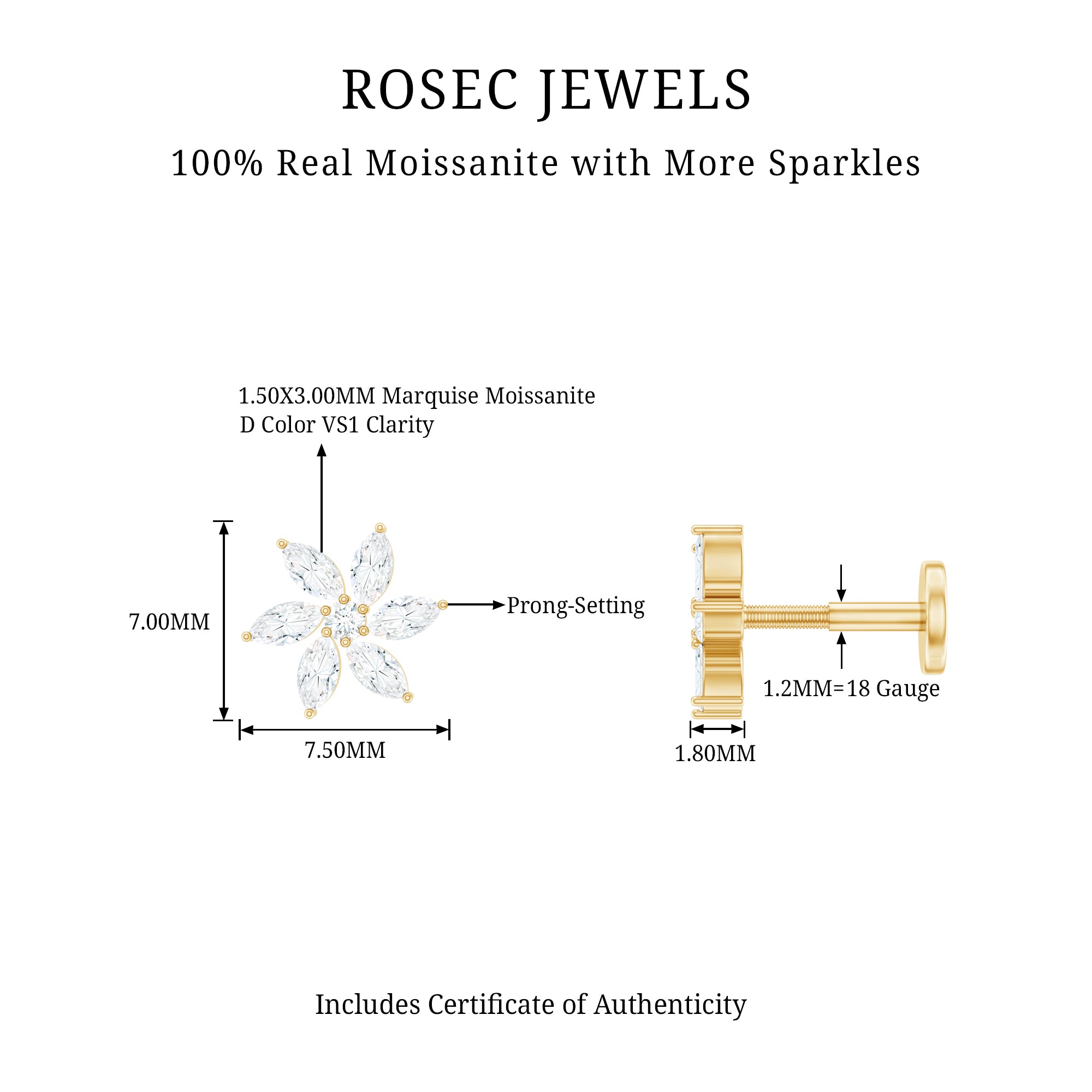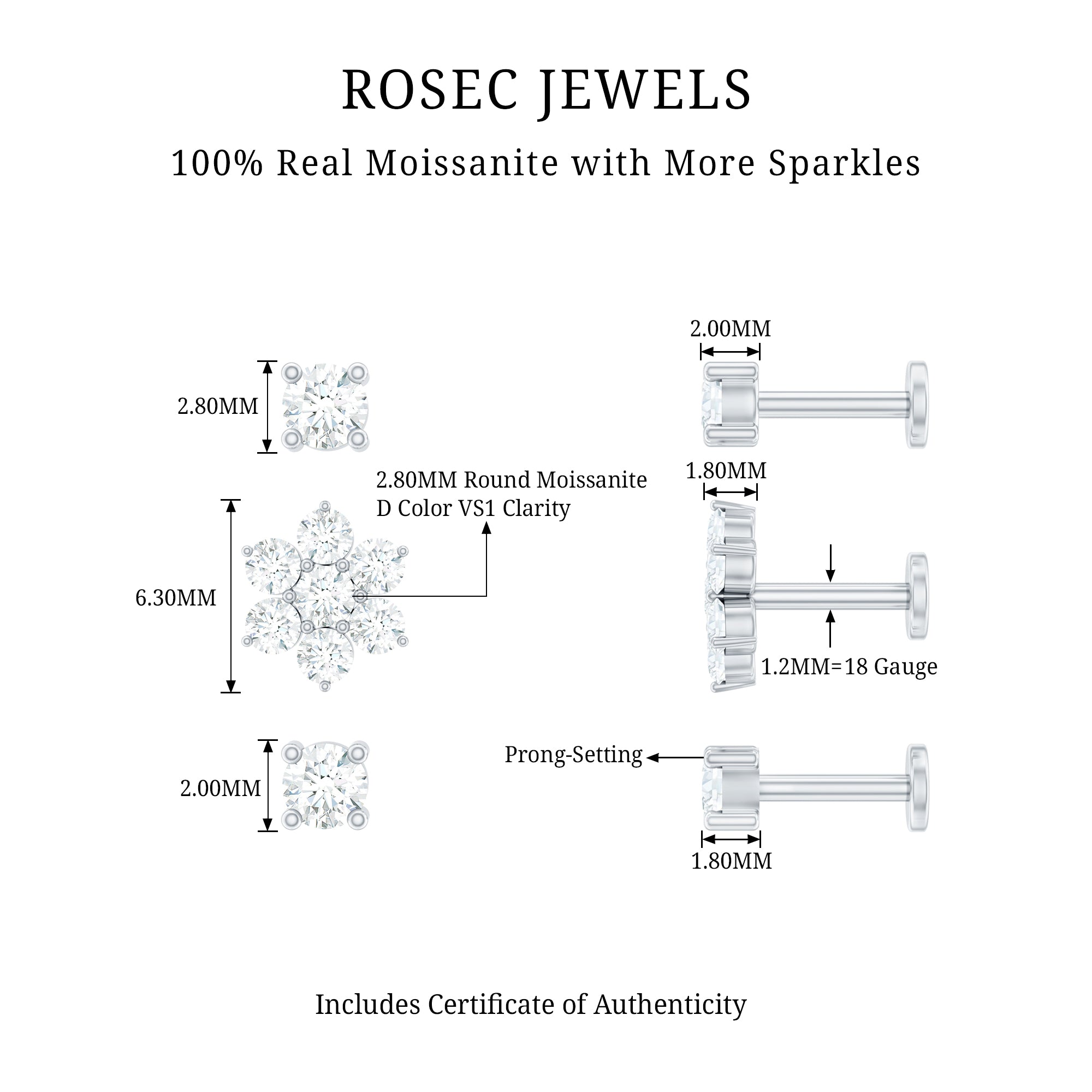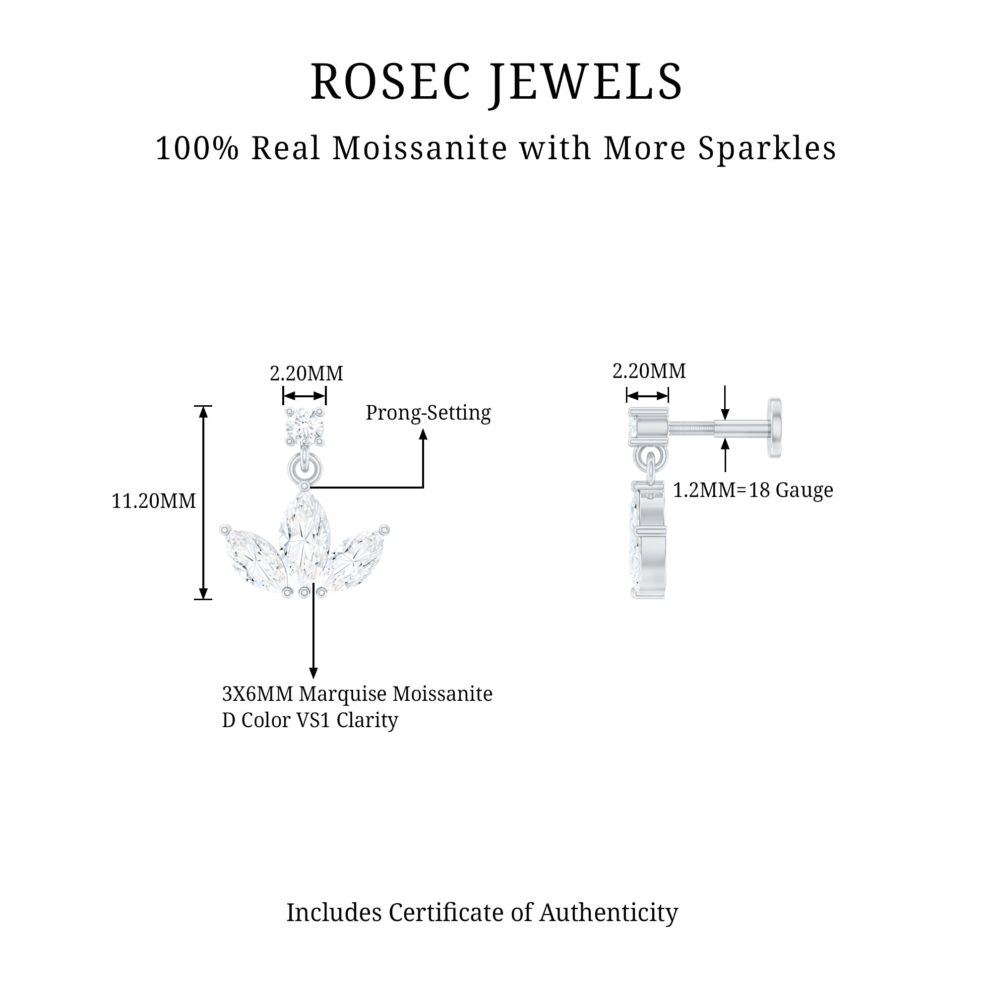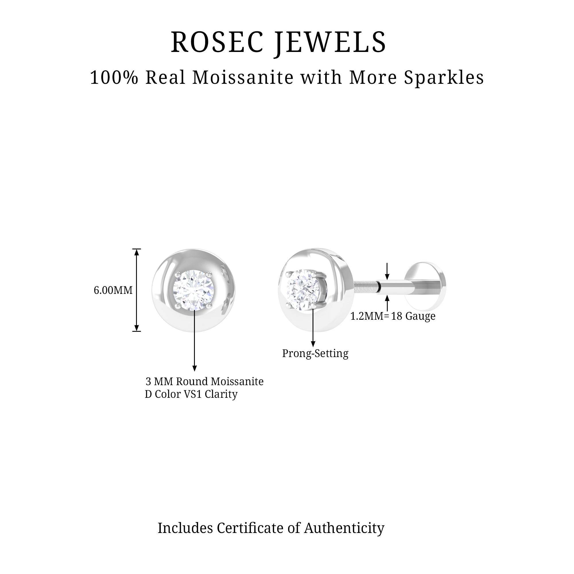 Moissanite Ear Piercing Jewelry