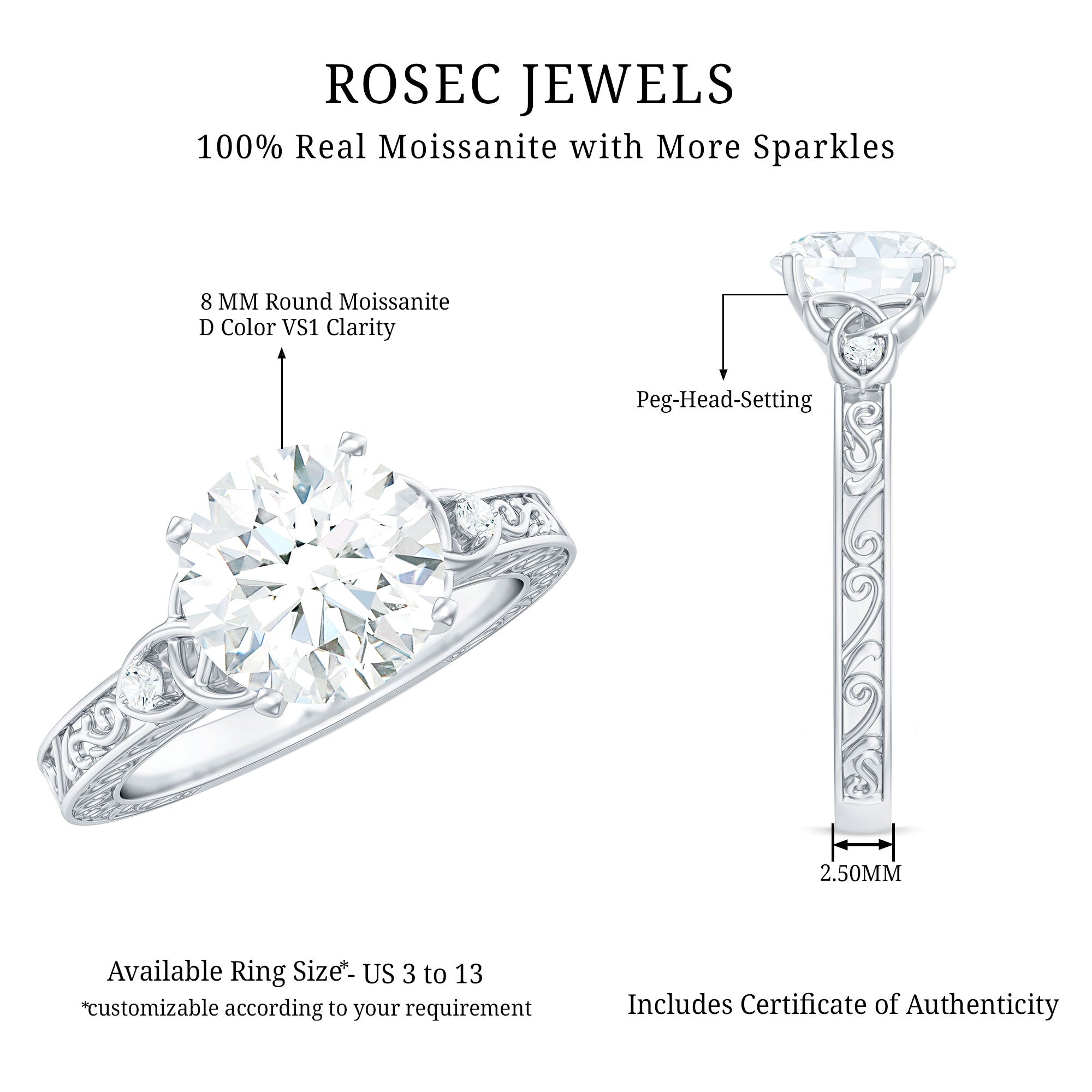 4. Vintage and Antique Styles: Vintage-inspired moissanite rings draw inspiration from different historical periods, and combine intricate designs, filigree work, and milgrain details. These rings exude a sense of timeless charm and sophistication.